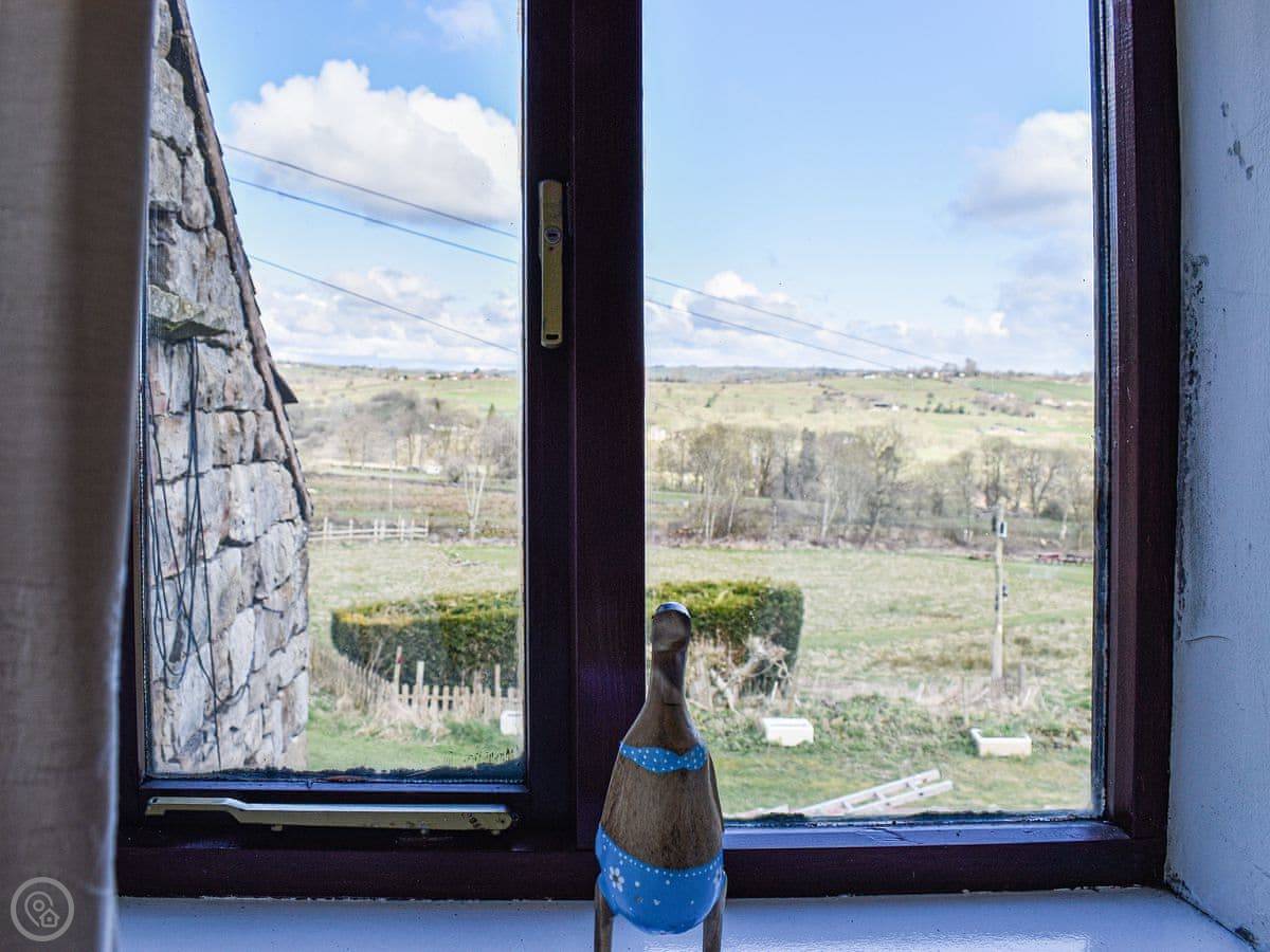 Swallow Cottage is one of three cottages here at Broomshaw Farm. It's just off the main road, so it's quiet. The views out of every window are all countryside.