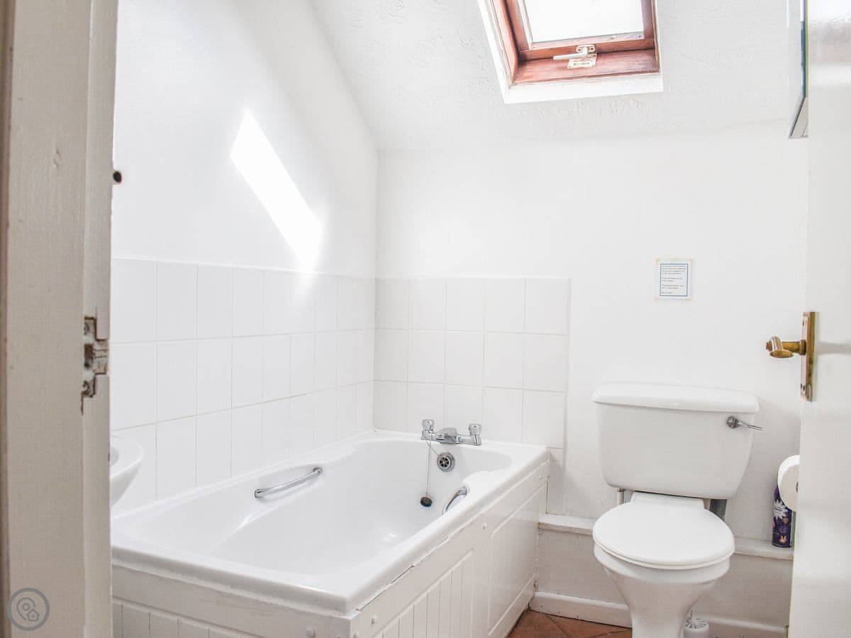 It sleeps six, but in two bedrooms. One's a double. The other has a double bed and a set of bunk beds, so it's a family room. There's one bathroom upstairs.