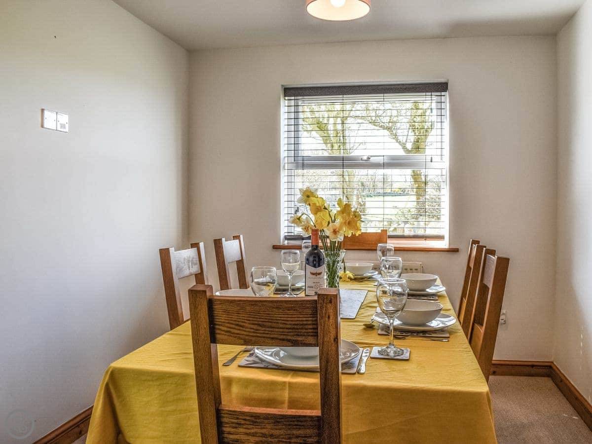 Inside, there's a living room and a separate dining room, which is handy if people want to do different things. The kitchen has a table in it as well. There are two wood burners, one in the living room and one in the dining room. They're good for taking the chill off.