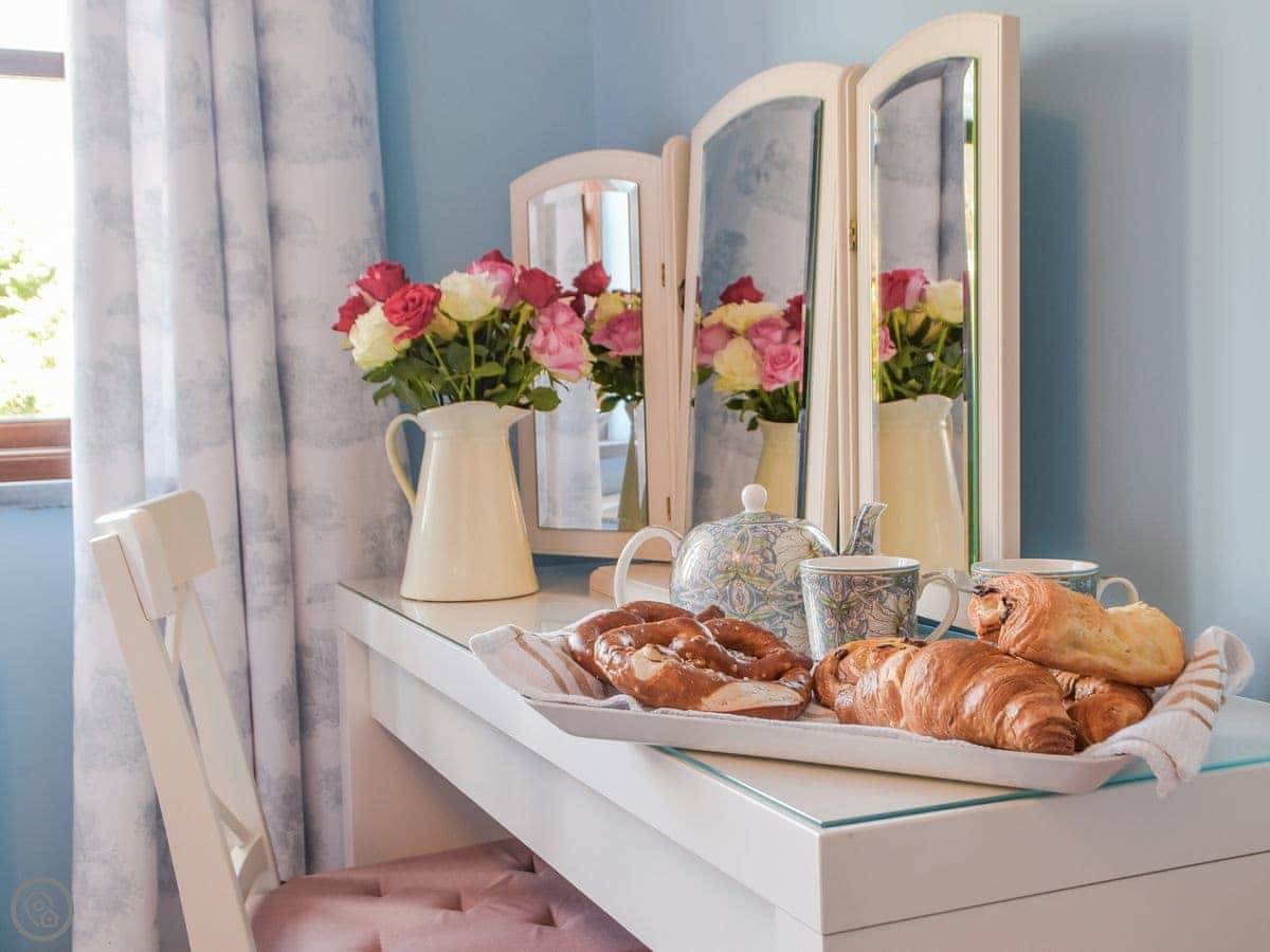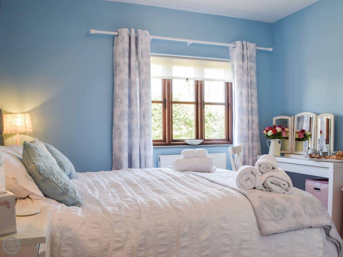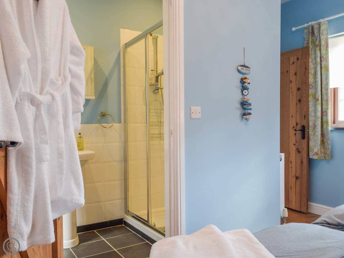 It sleeps four. Two bedrooms, both with their own ensuite shower rooms. It has a 4 Star rating. It’s modern, clean, and comfortable. The doorways are wide and there’s no step into the property, so it’s accessible if you use a wheelchair.