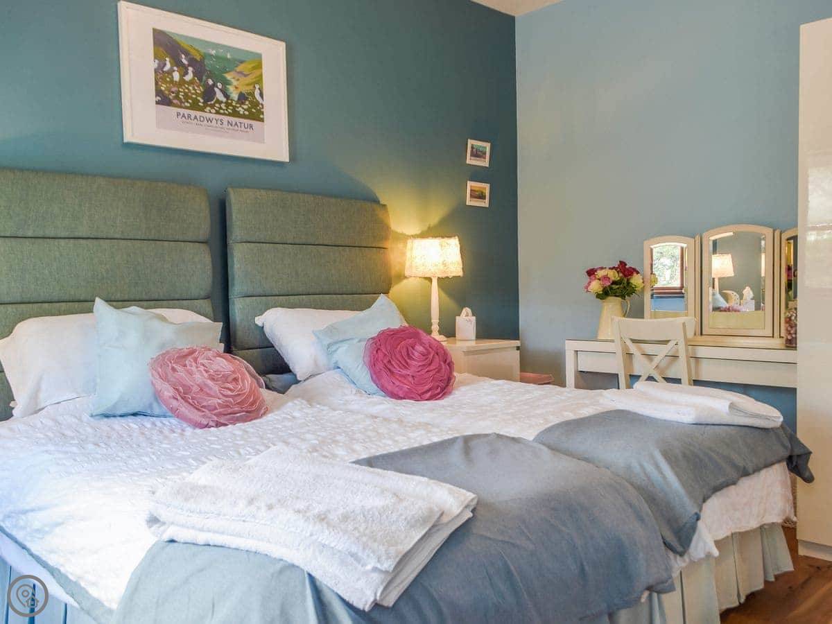 The coast is about two miles away. Newgale Beach is a big sandy beach, good for surfing. St Davids is fifteen minutes by car. It’s a city, but a tiny one. The cathedral is there, and the Bishop’s Palace ruins. Plenty of cafes and pubs.