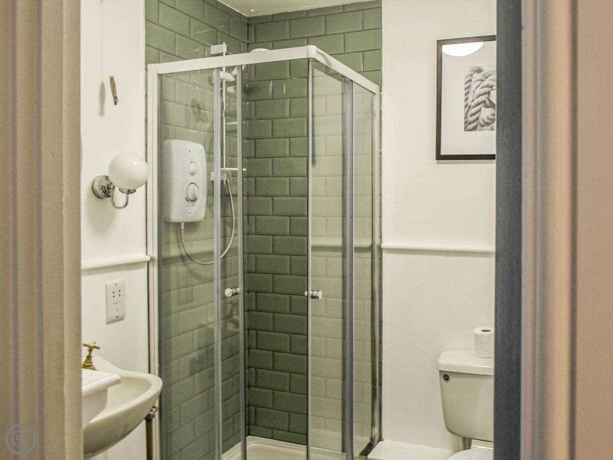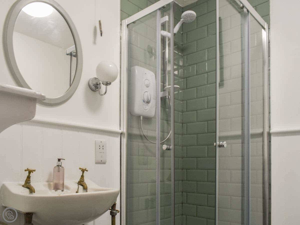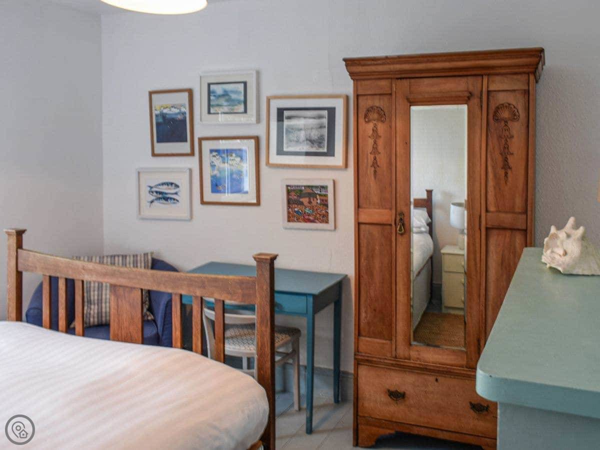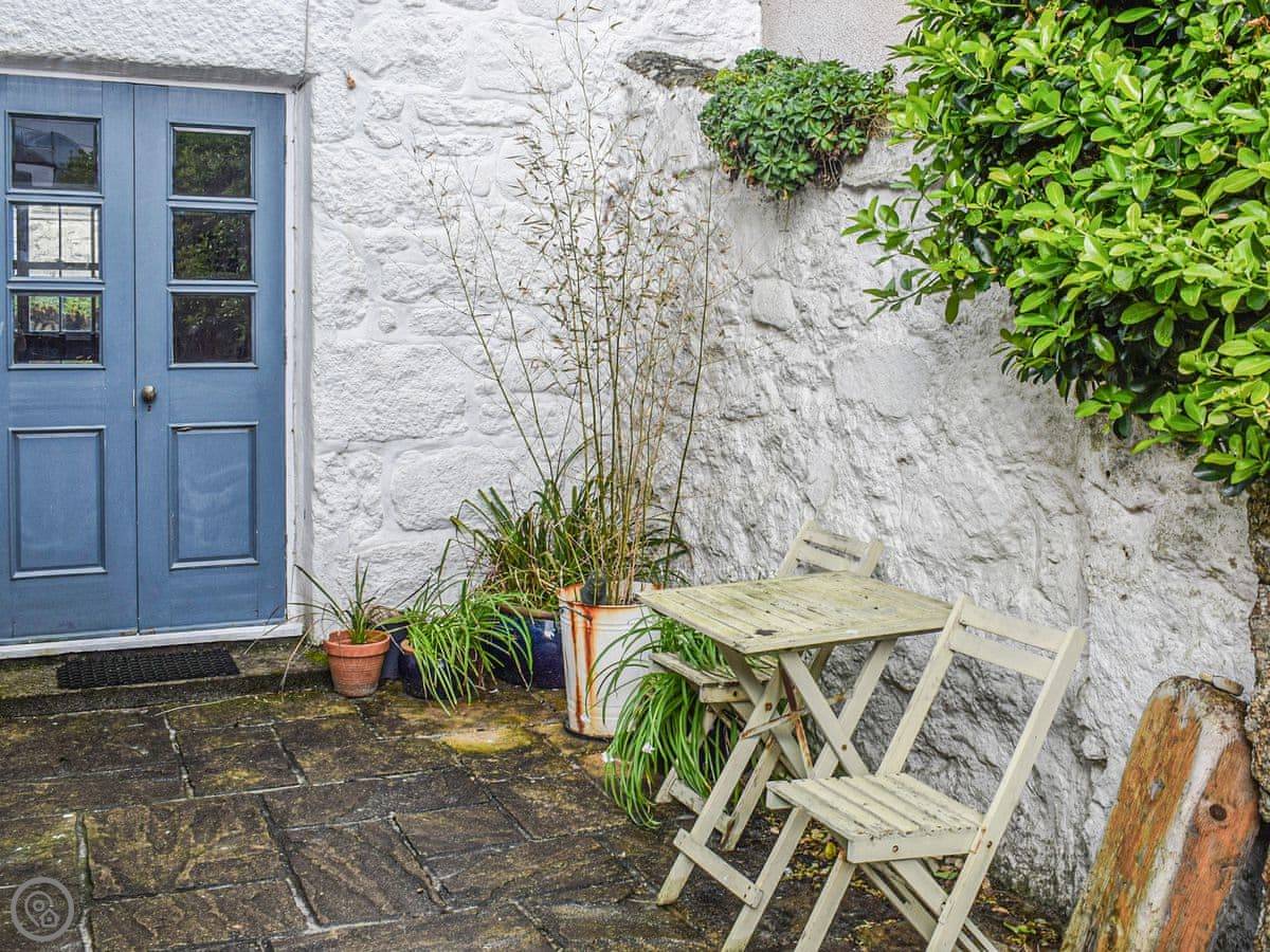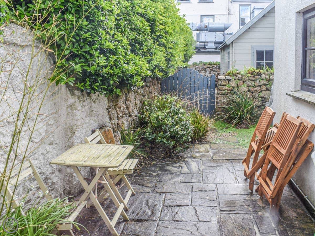 The garden is at the back. It's enclosed. There's a cold water shower out there, which is good for washing off sand or wetsuits. There's a bistro set to sit at.
