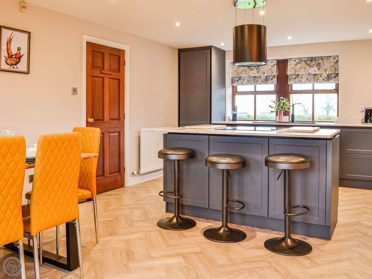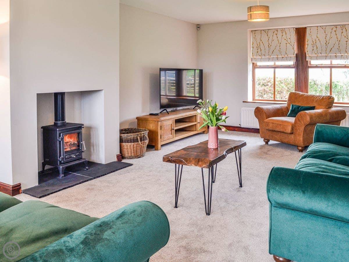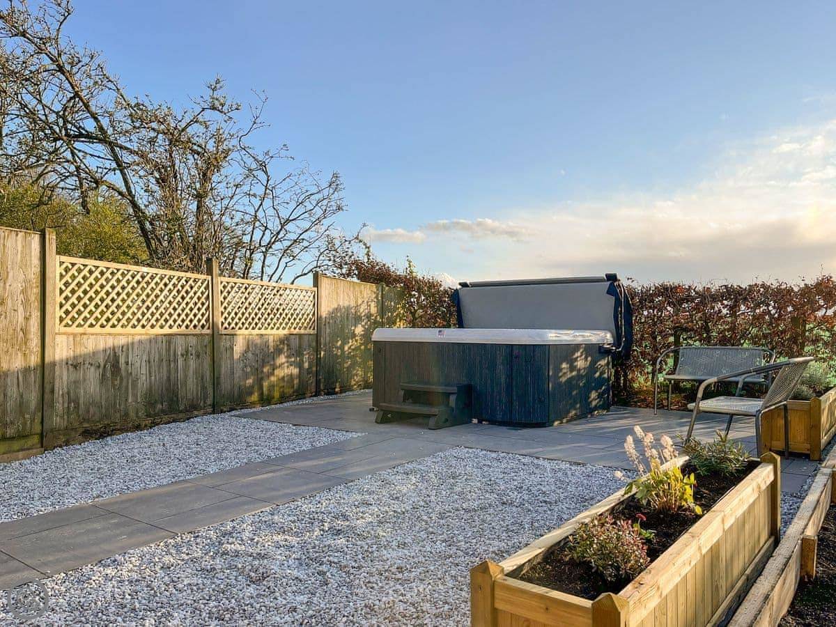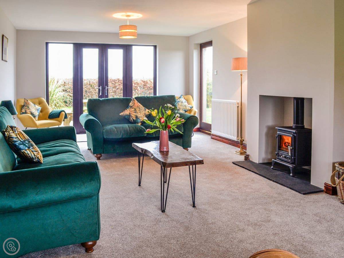 The kitchen is big, with a table for everyone. The sitting room has doors out to the garden and a woodburner for the evening. There's a hot tub in the garden.