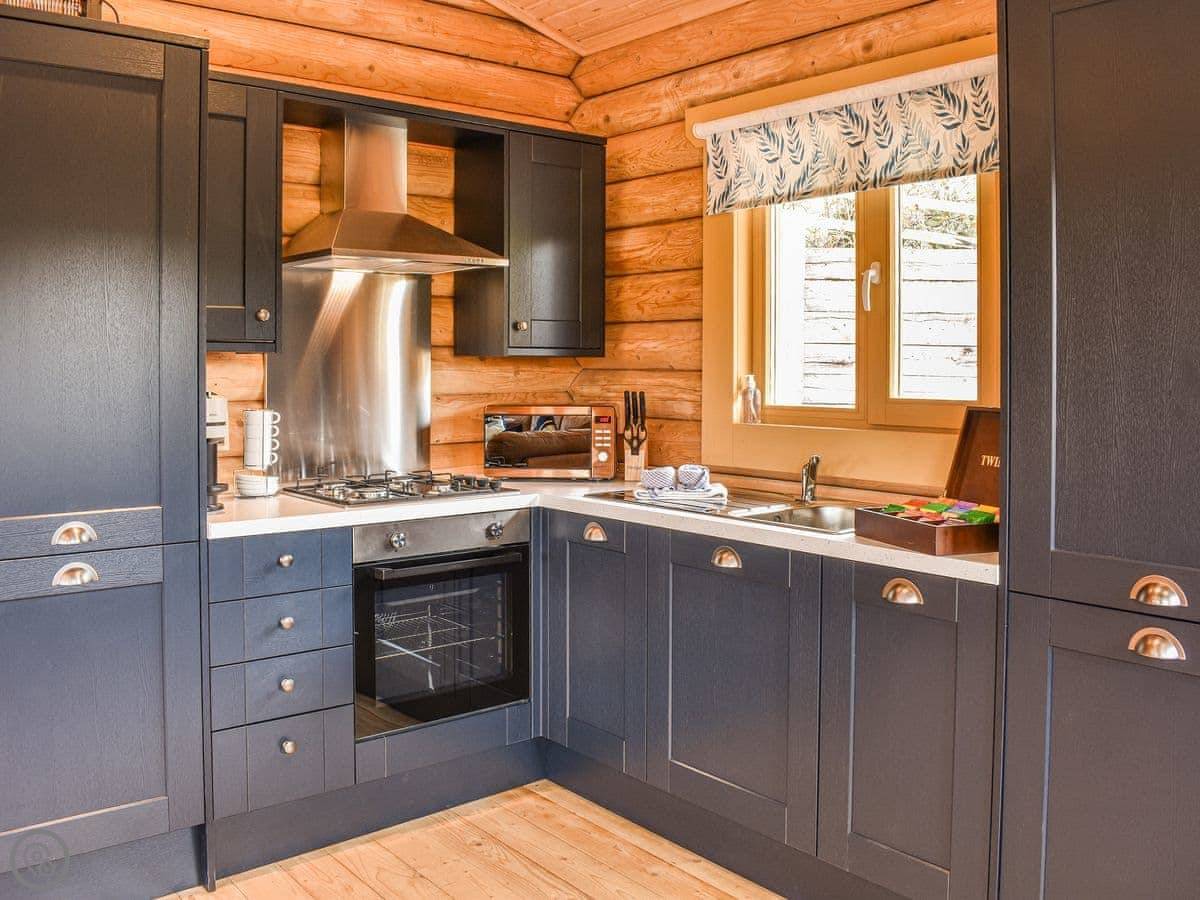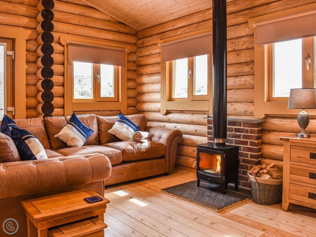 It's a place for two people. One bedroom, one bathroom. It's got a 5 Star rating, which means it's high spec. You'll find things like a coffee machine, a Bose speaker, and Smart TVs. There's a wood burning stove in the main room. The bathroom has a jacuzzi bath and a separate shower. The king-size bed has good bedding, and there are robes provided.