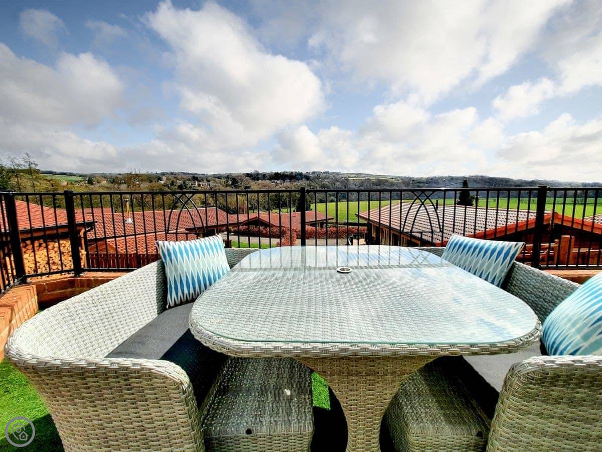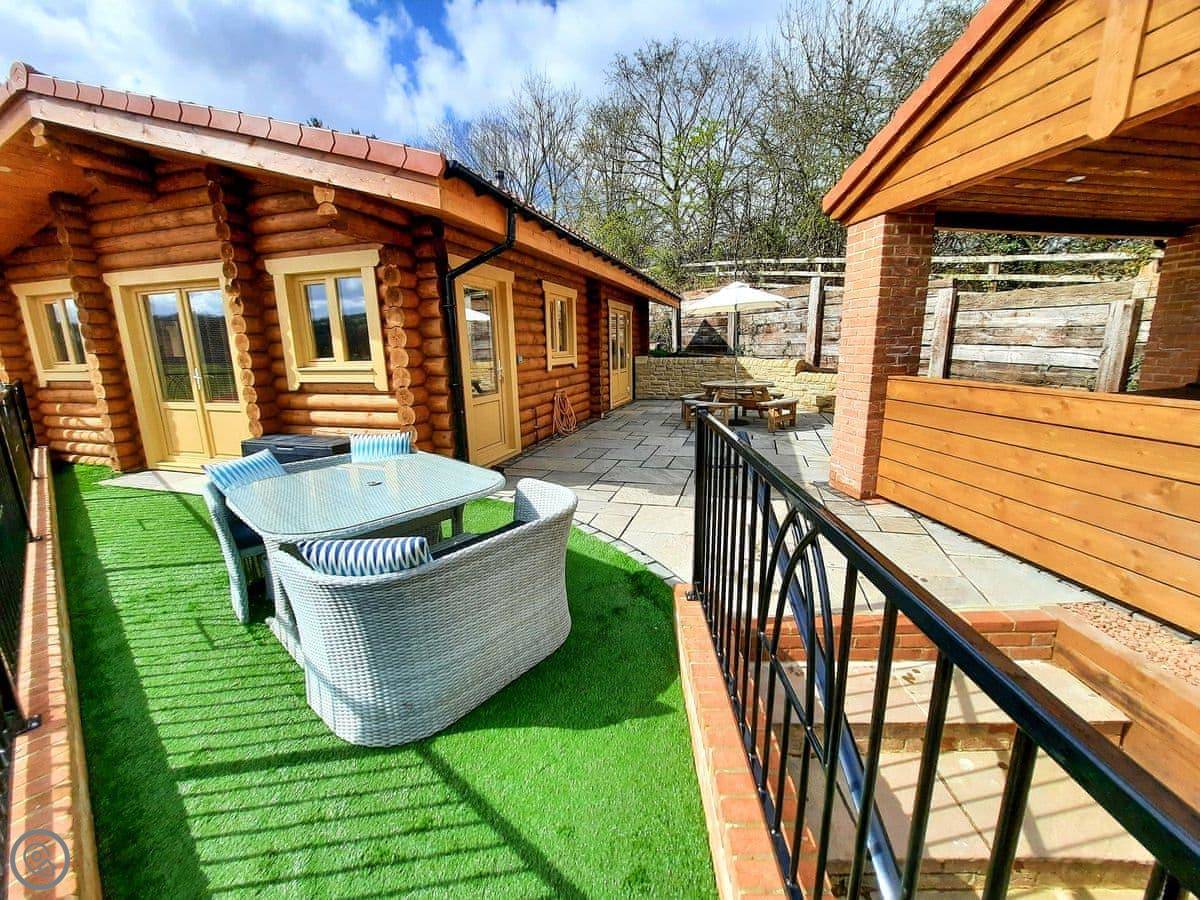 Arbeia Lodge is near Ebchester in County Durham. It's one of two lodges that share a private gated entrance. The main thing is the view from the deck, which looks across the Derwent Valley.