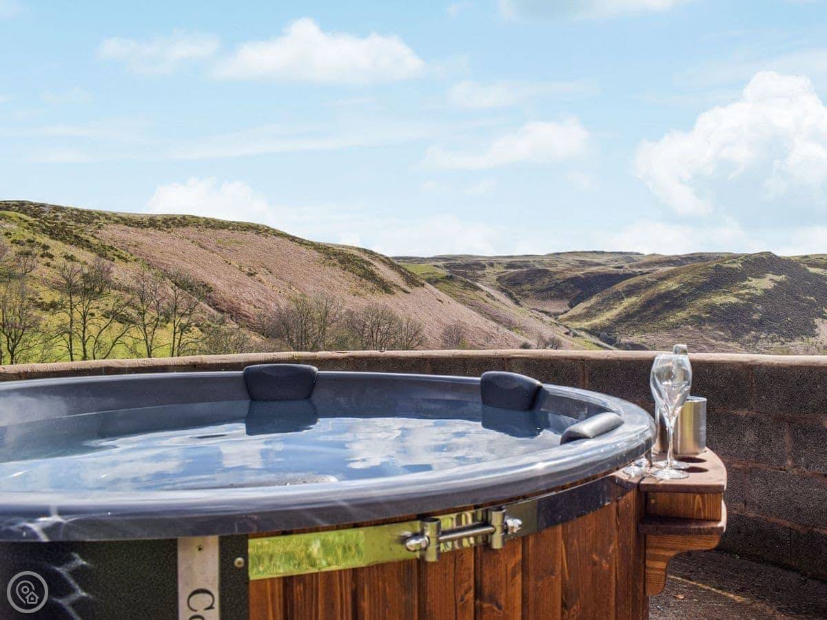 The views are the main thing. No neighbours, just fields and sheep. You can see for miles. There's a wood-fired hot tub. It takes a while to heat up, but it's worth it. The garden is enclosed.