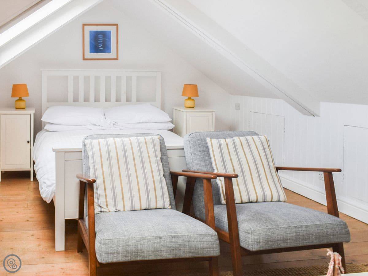 Badgers Loft is in Sennen Cove. It's a studio apartment up in the eaves, so it just sleeps two. The views out over the sea are good, especially for a sunset.