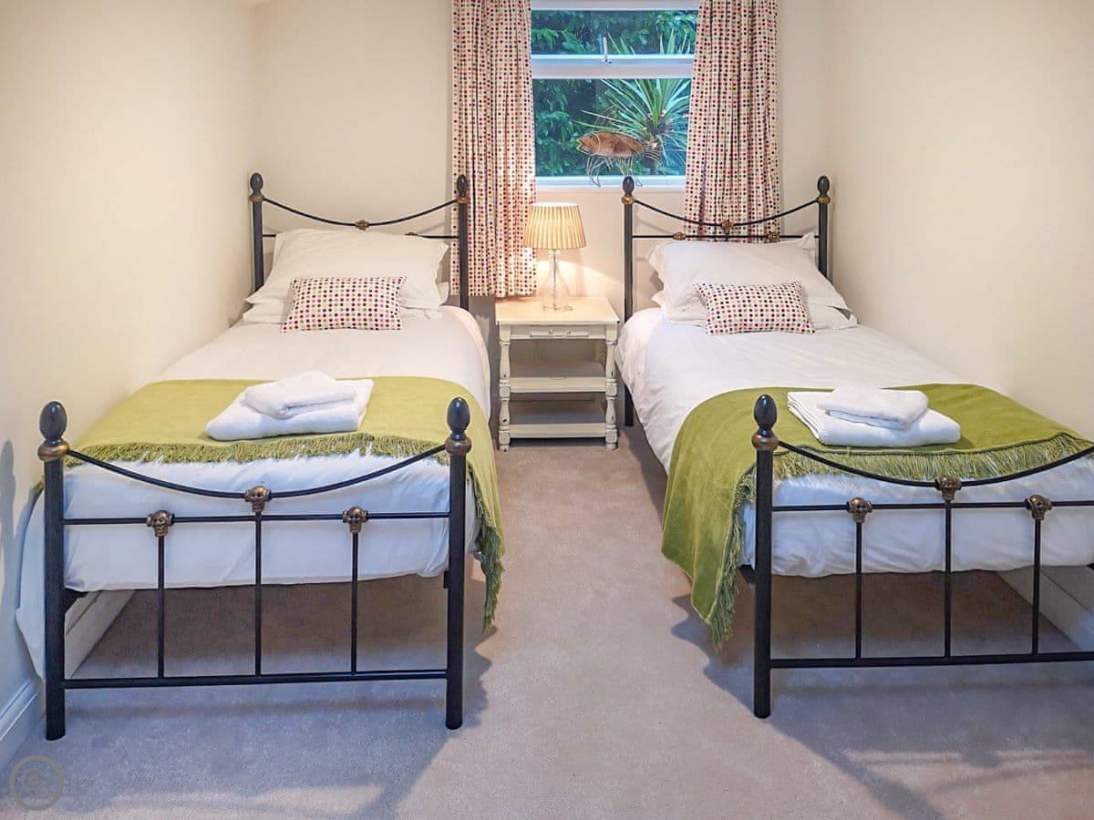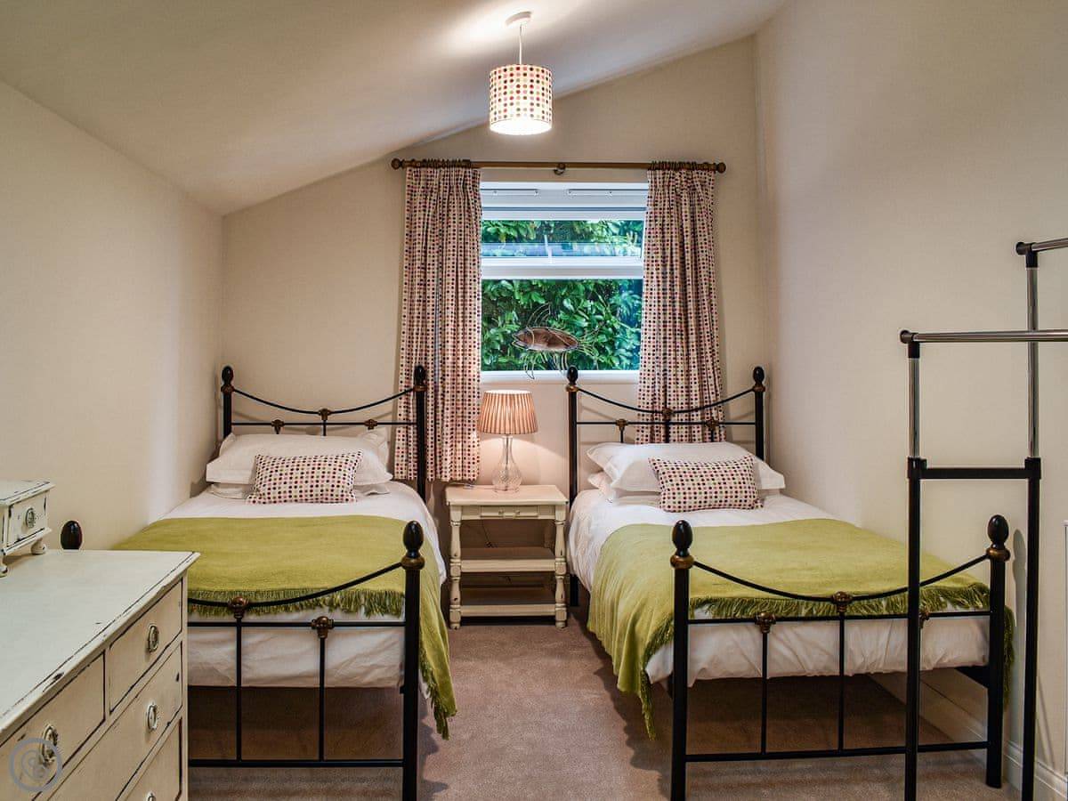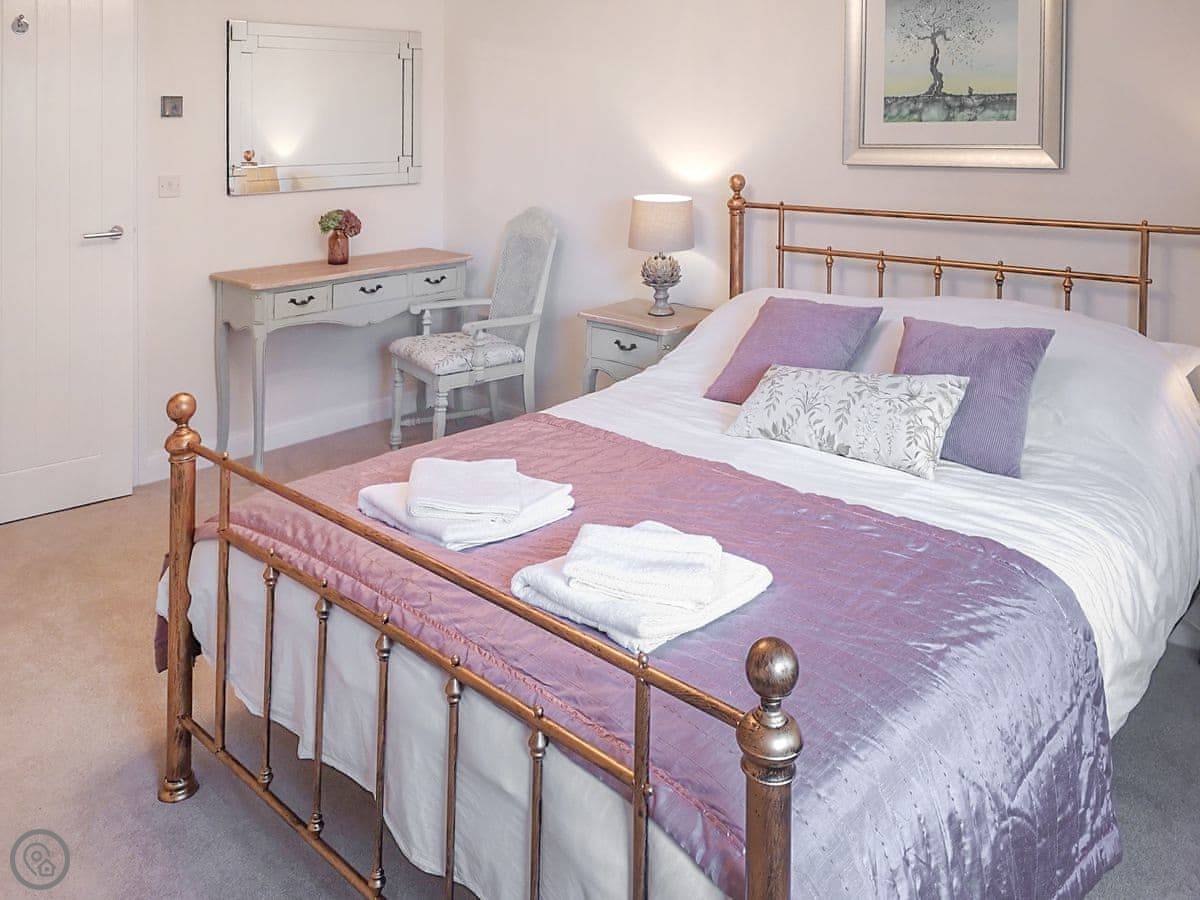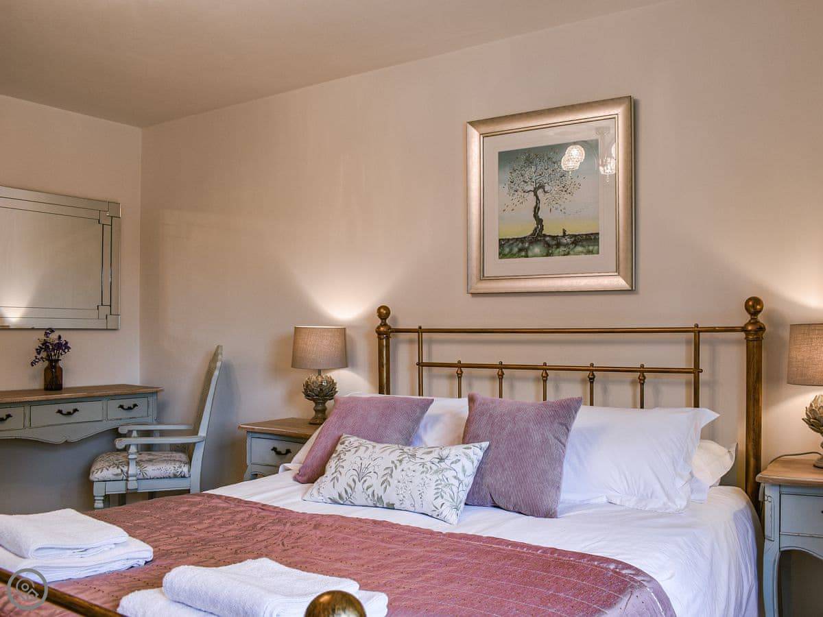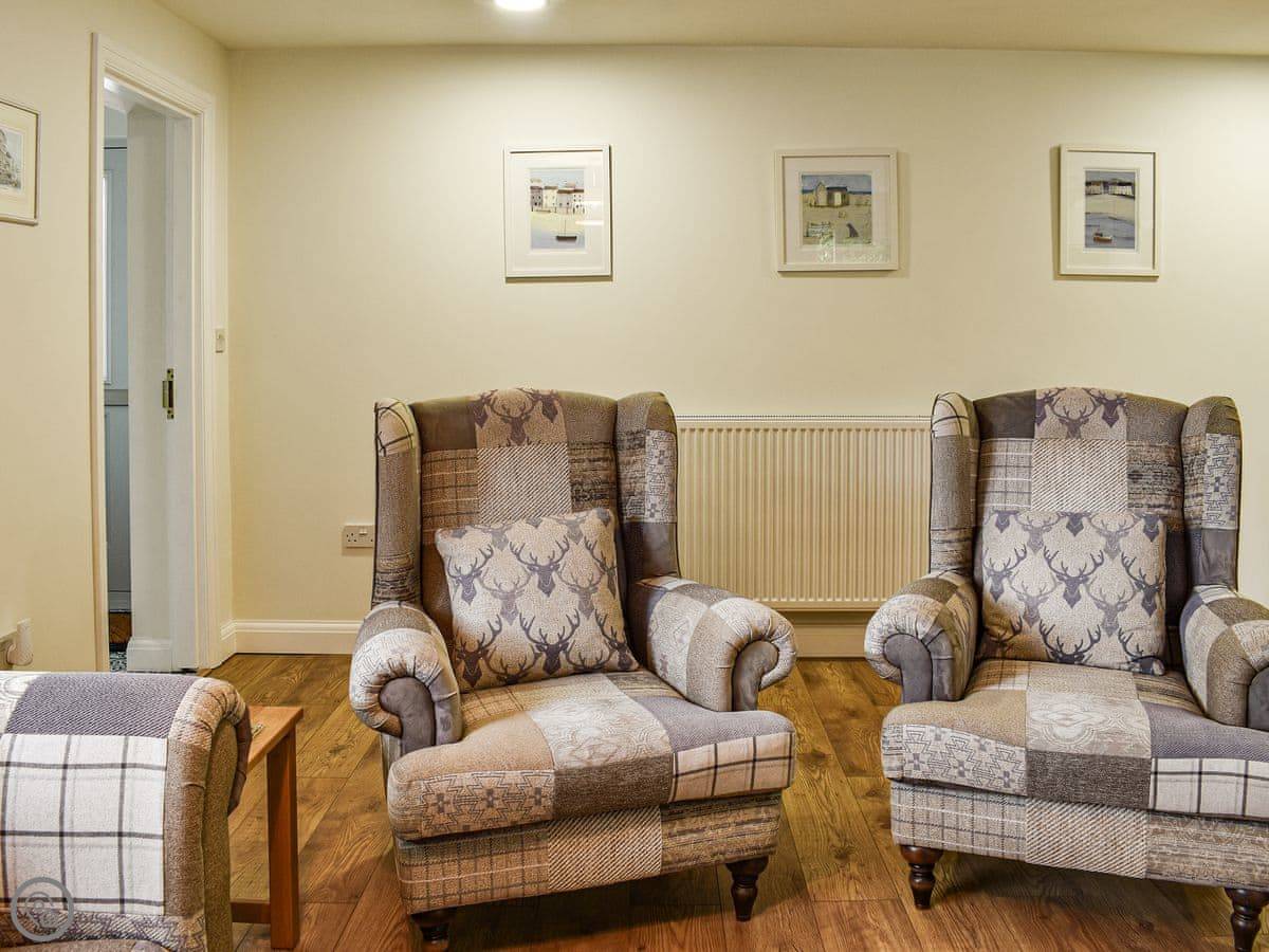 Upon entering, you’re greeted by a spacious, sunlit open-plan kitchen, dining, and living area, adorned with tasteful decor and luxurious furnishings. Whether crafting culinary delights or sinking into the plush comfort of the living room’s soft furnishings, every moment promises relaxation and indulgence. The cottage boasts two inviting bedrooms—one featuring a stylish king-size bed and charming cottage furniture, complete with an en-suite shower room, while the second offers cosy twin beds. The family bathroom, adorned with a rejuvenating bath and excellent power shower, invites moments of pure serenity.