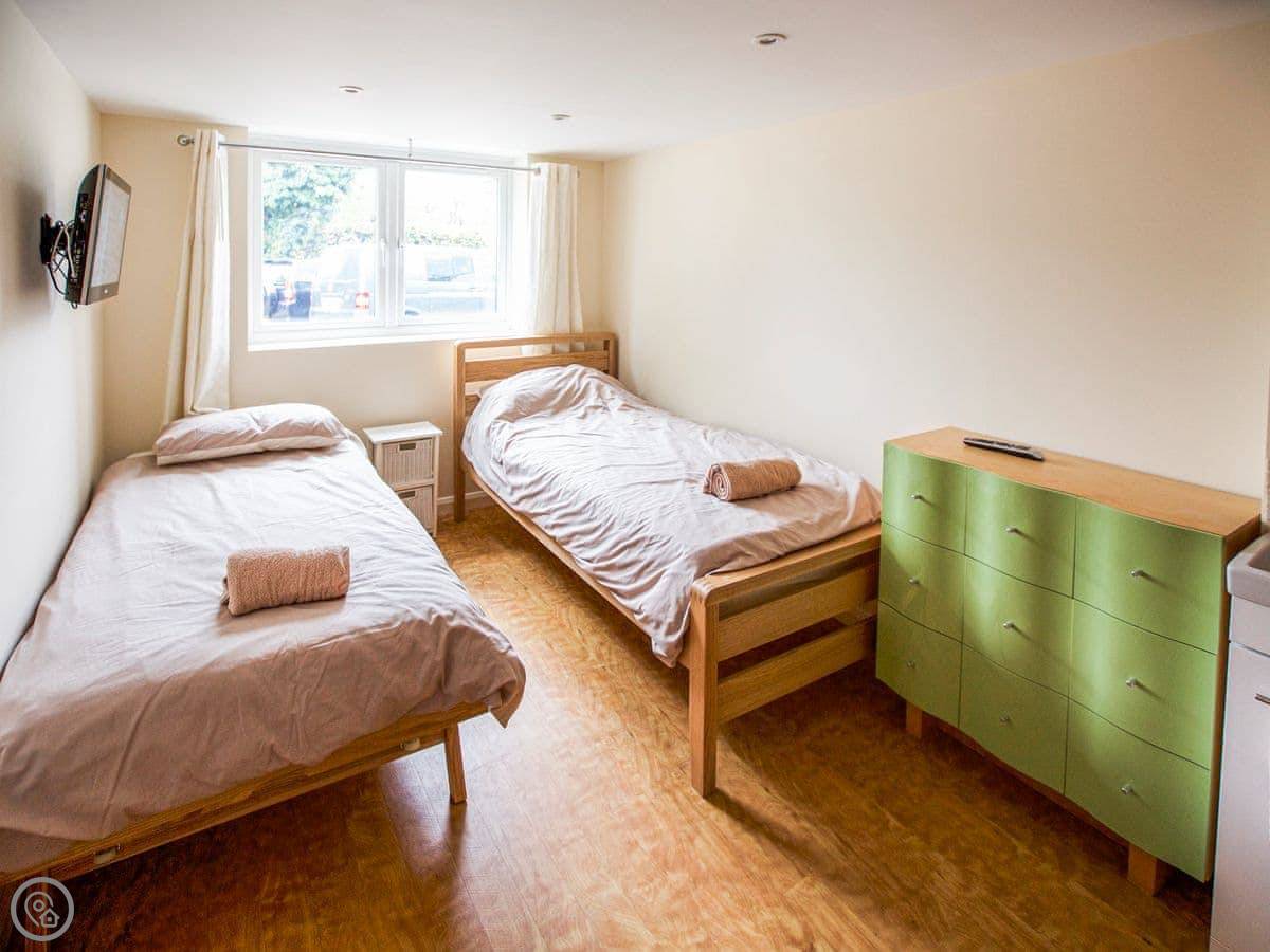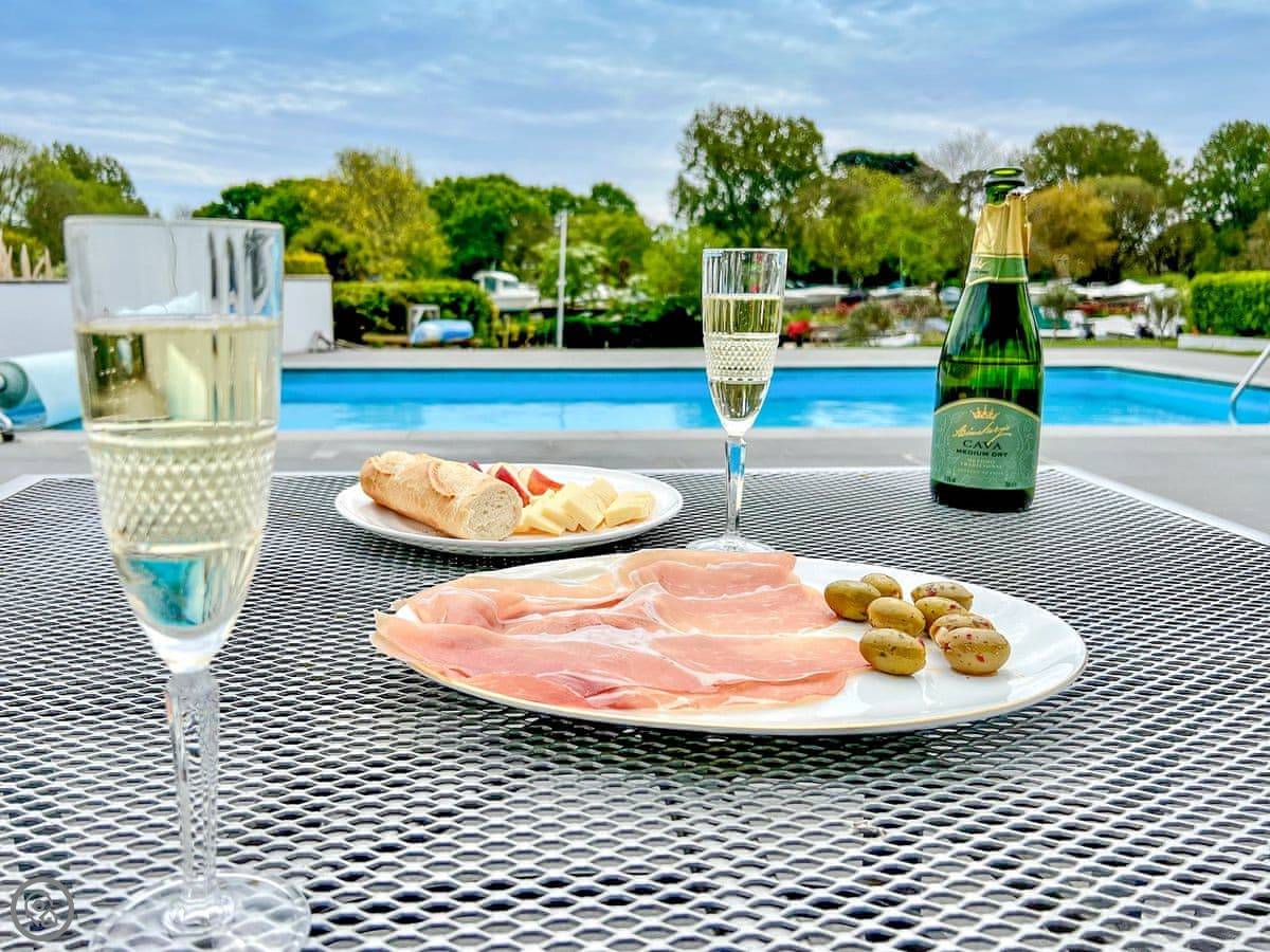 You get a parking space. There's WiFi, a TV, a washing machine. Bedding and towels are included. There's a shared heated swimming pool for the four houses, open in the summer months.