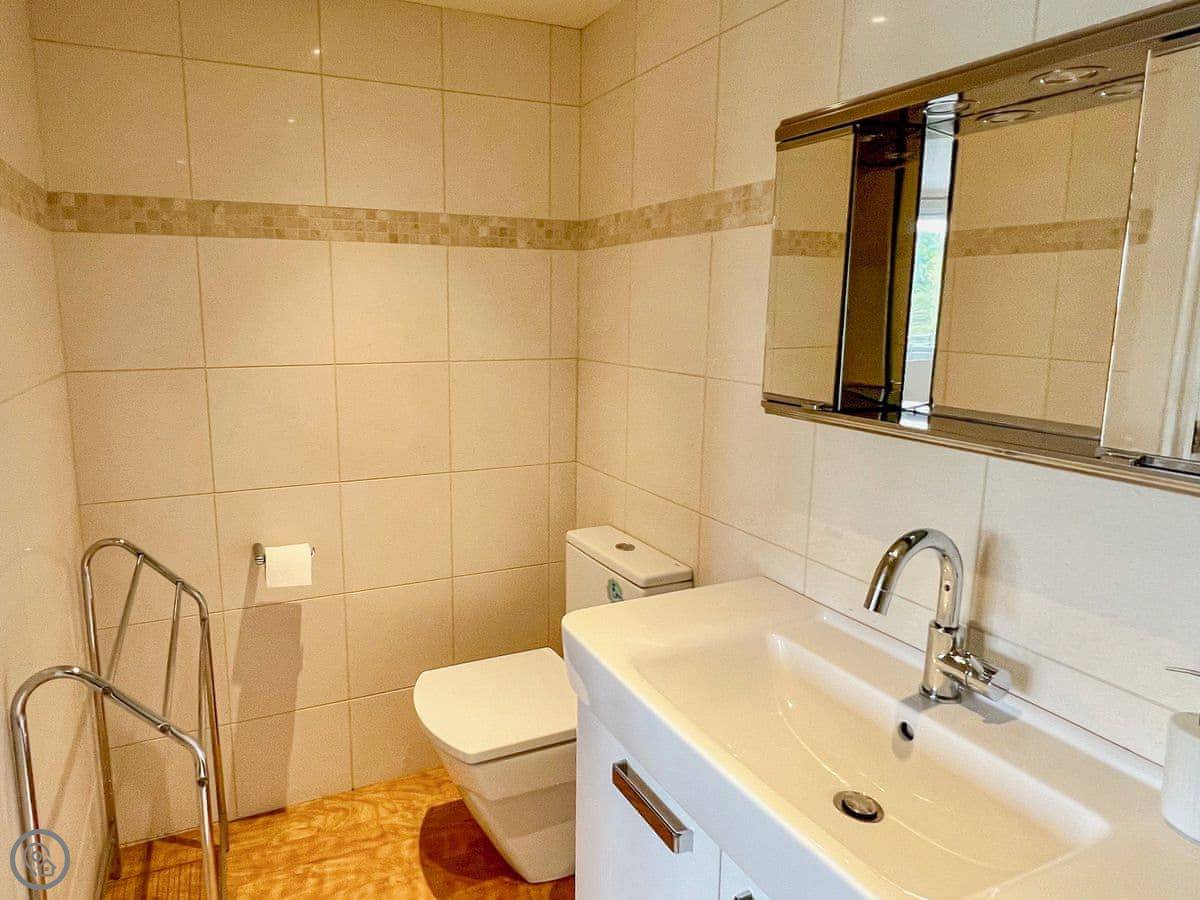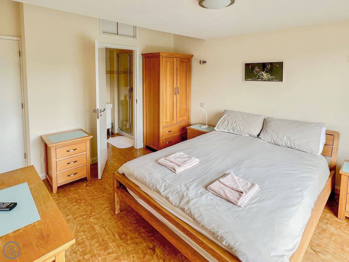 The house sleeps five. Three bedrooms, two bathrooms. It's a 4 Star, so it's comfortable and well kept. It's modern inside, quite open plan. The stairs are fine, nothing unusual.
