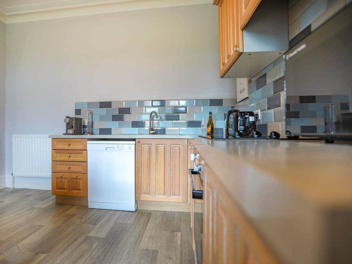 In terms of stuff here: there's a dishwasher, a coffee machine, WiFi, parking, and bedding and towels are included. You can bring up to two dogs. There's a cot and highchair if you need them.