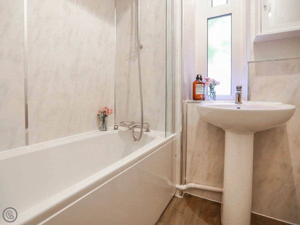 Oak sleeps six with two bedrooms and a sofa bed. The two main beds are big zip-and-links, so we can set them up as twins if you'd prefer. There's one bathroom with a shower over the bath.