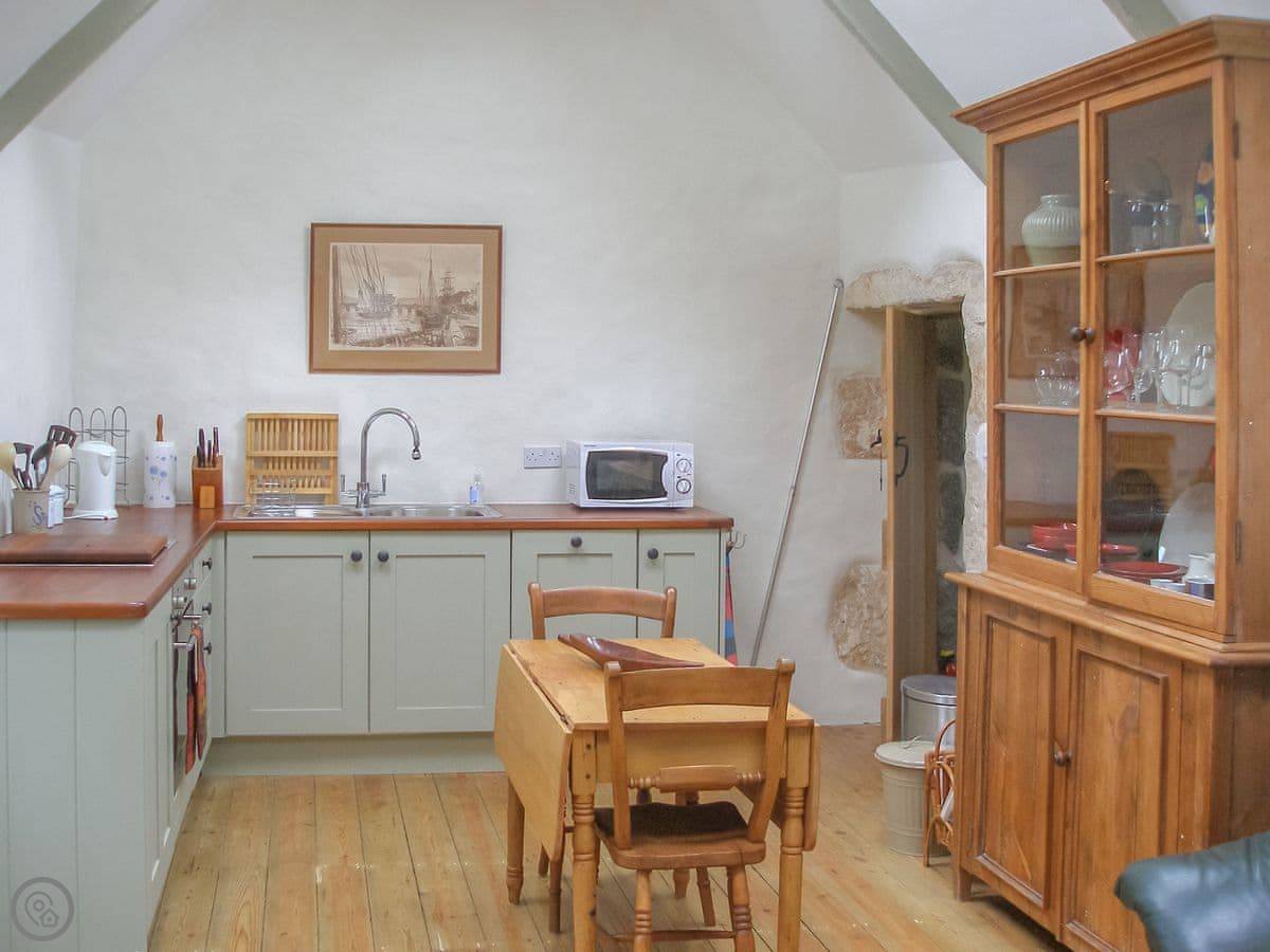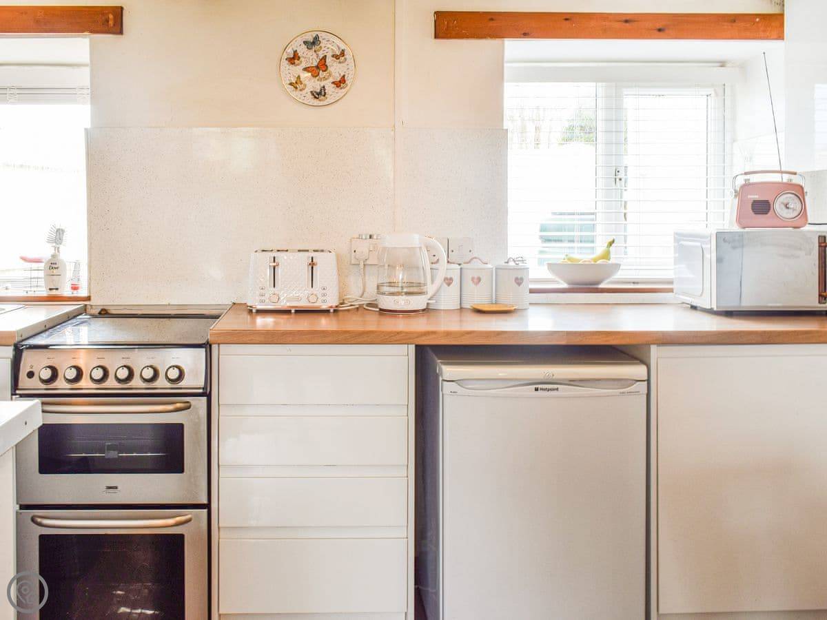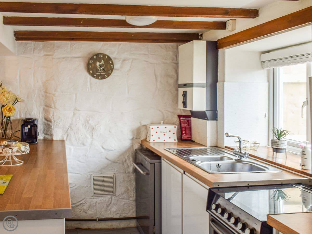 It sleeps four. Two bedrooms, one bathroom. It's got a 4 Star rating. We've just had it refurbished, so it's comfortable and clean. There's an outbuilding with hanging space for wetsuits, and room outside for bikes or boards.