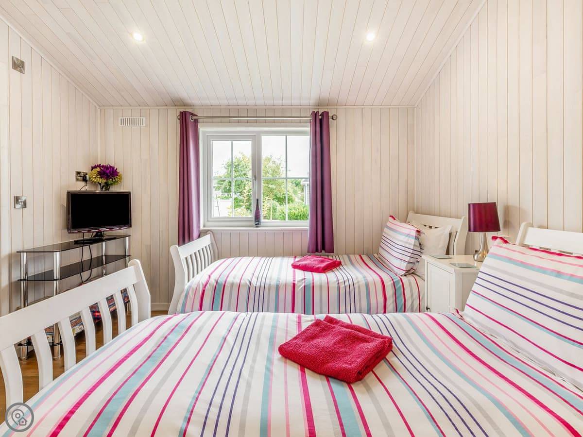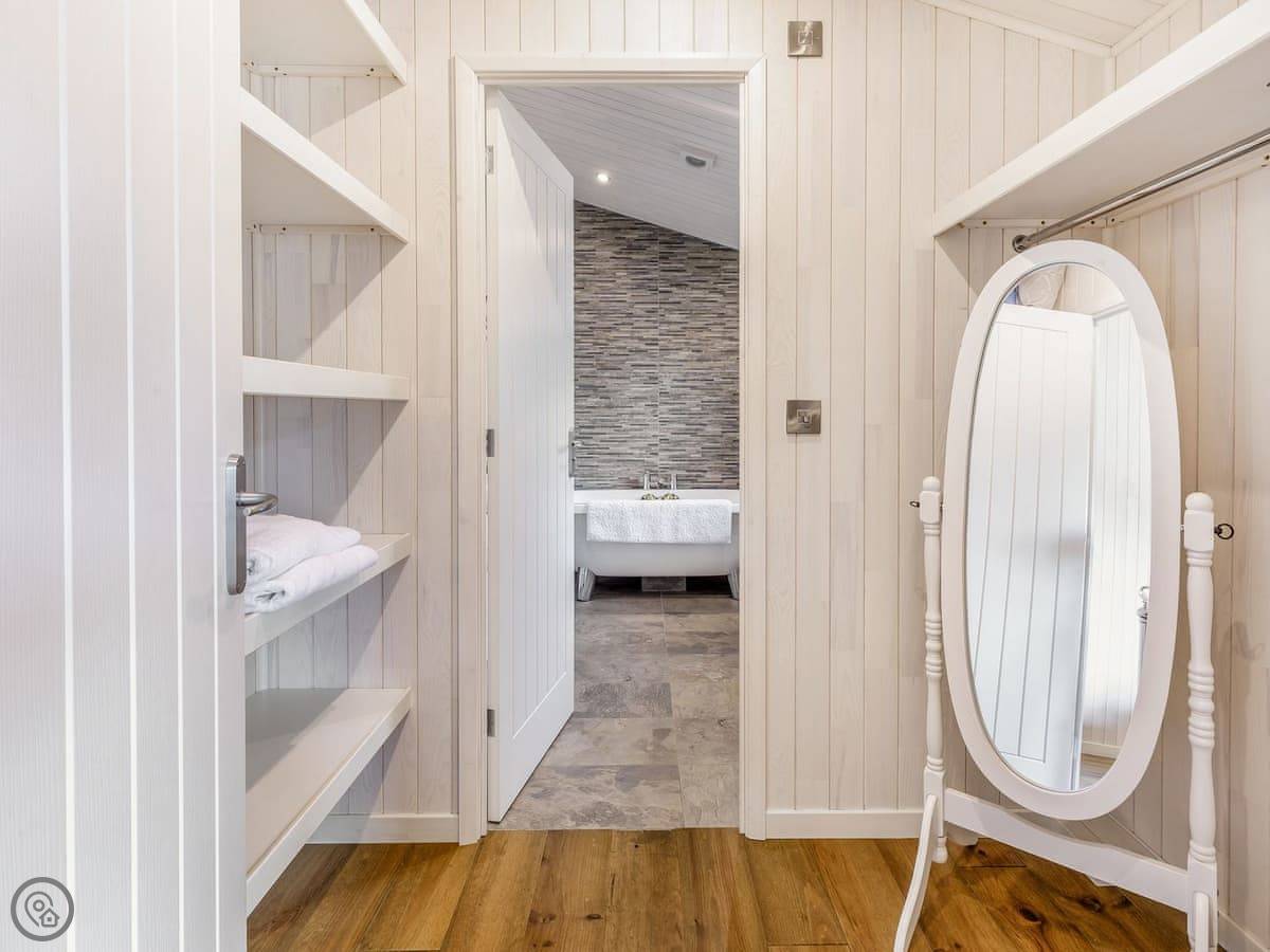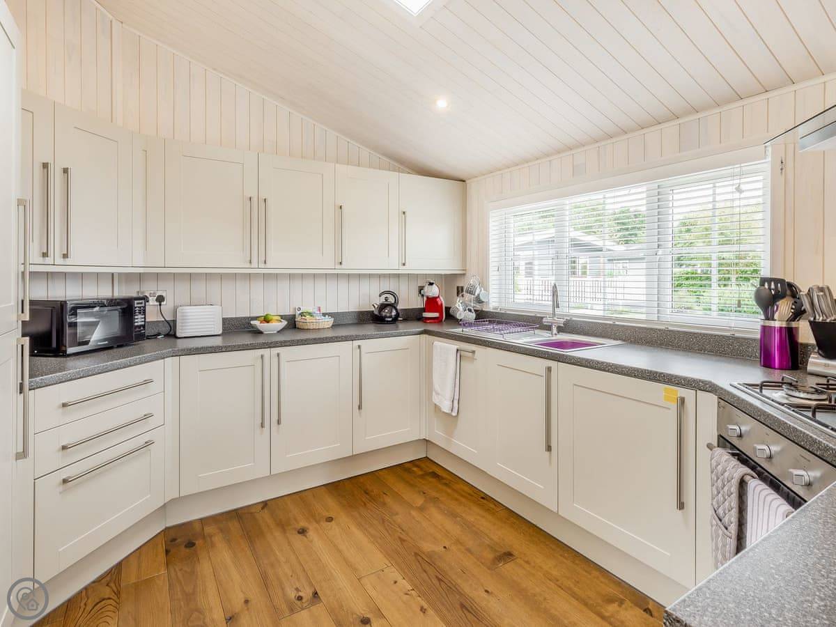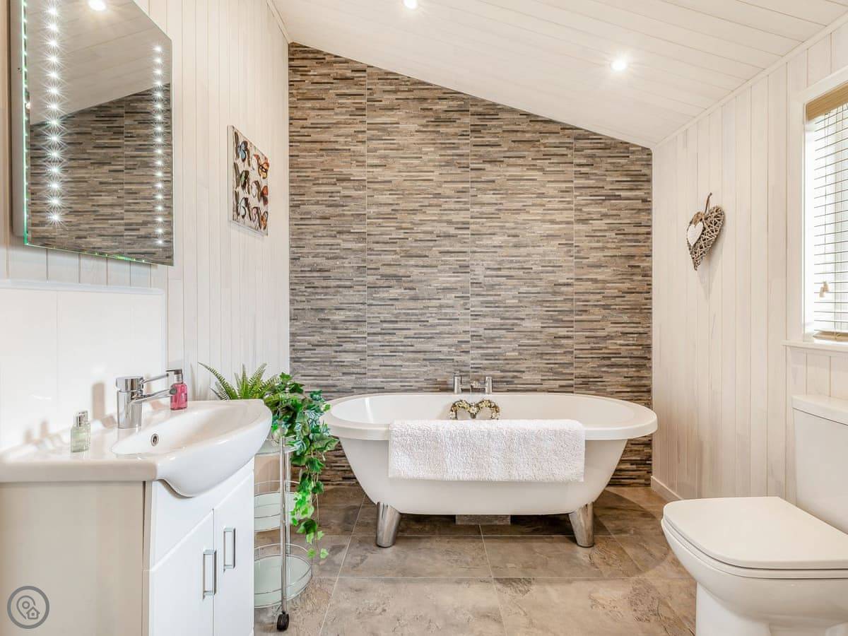 This New England designed lodge has it all; a stunning open plan kitchen, living and dining area. A real eye for detail throughout with beautiful furnishings and themes chosen by interior designers. The lodge comfortably sleeps four adults with a double bedroom which will leave you saying wow as you walk through the walk in wardrobe, then into the feature bathroom with its inviting slipper foot bath. The second bedroom offers guests two single beds but does not scrimp on area or design and also offers a walk-in wardrobe and separate shower room.