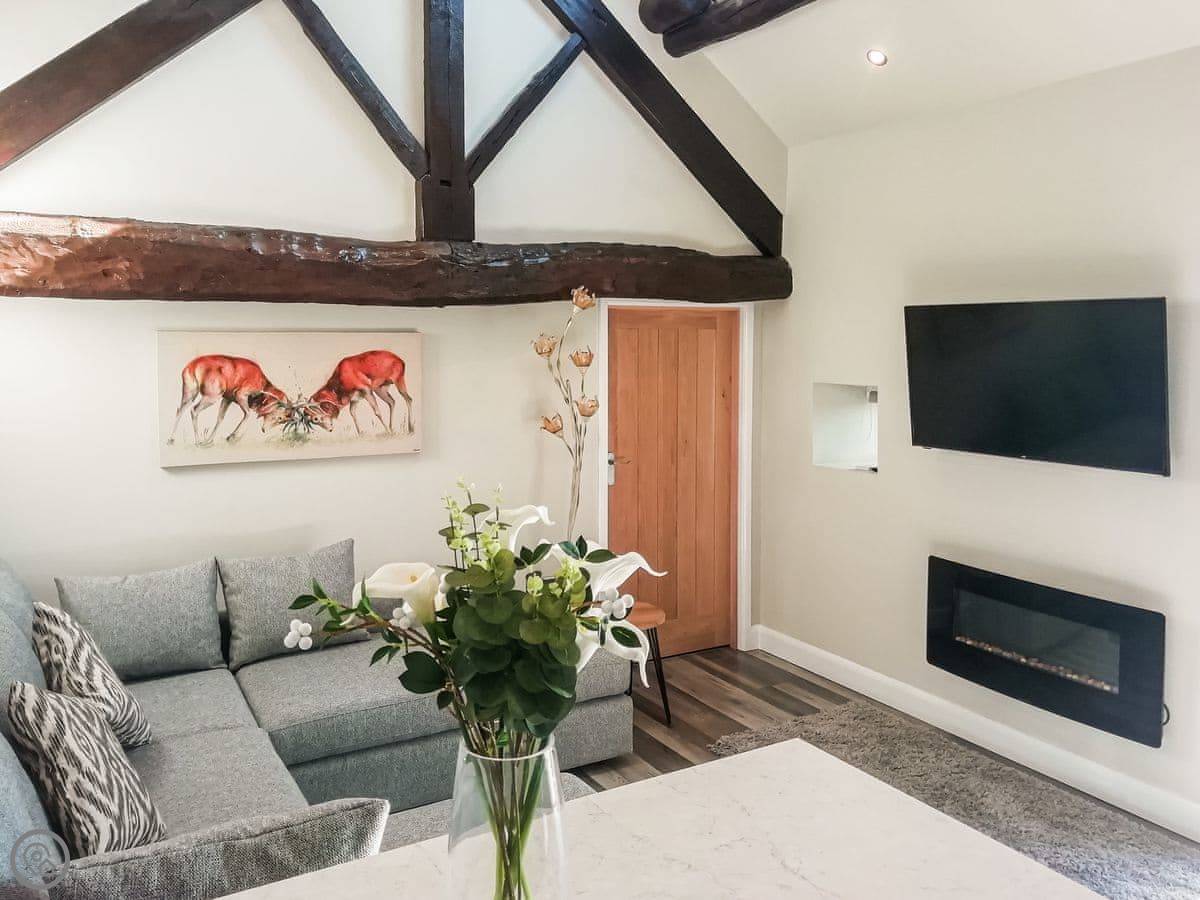 Sabine Hay Barn is situated overlooking the beautiful Derwent Valley and the farm is a haven for wildlife, including badgers and rare black fallow deer; it even boasts sixty species of birds such as nuthatch, dippers and peregrine falcons. Located 7 miles south of the historic market town of Bakewell and 3 miles west of Matlock, you are ideally situated to access the diverse array of local attractions. The Limestone Way passes close by the farm, which is also the junction to no less than four major footpaths throughout the area. The mystical Stanton Moor, with its ancient Nine Ladies Stone Circle, is within walking distance, and a little further the River Lathkill has wonderful walks. Chatsworth House and Haddon Hall are close by, as is Matlock Bath which boasts children’s attractions and a cable car ride to the Heights of Abraham. The pretty village of Birchover has two fabulous pubs serving food, so you will never be short of places to visit or eat!