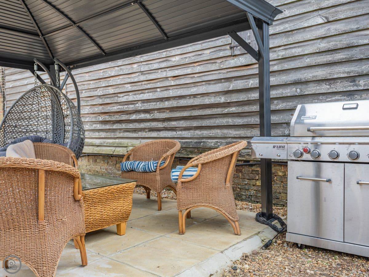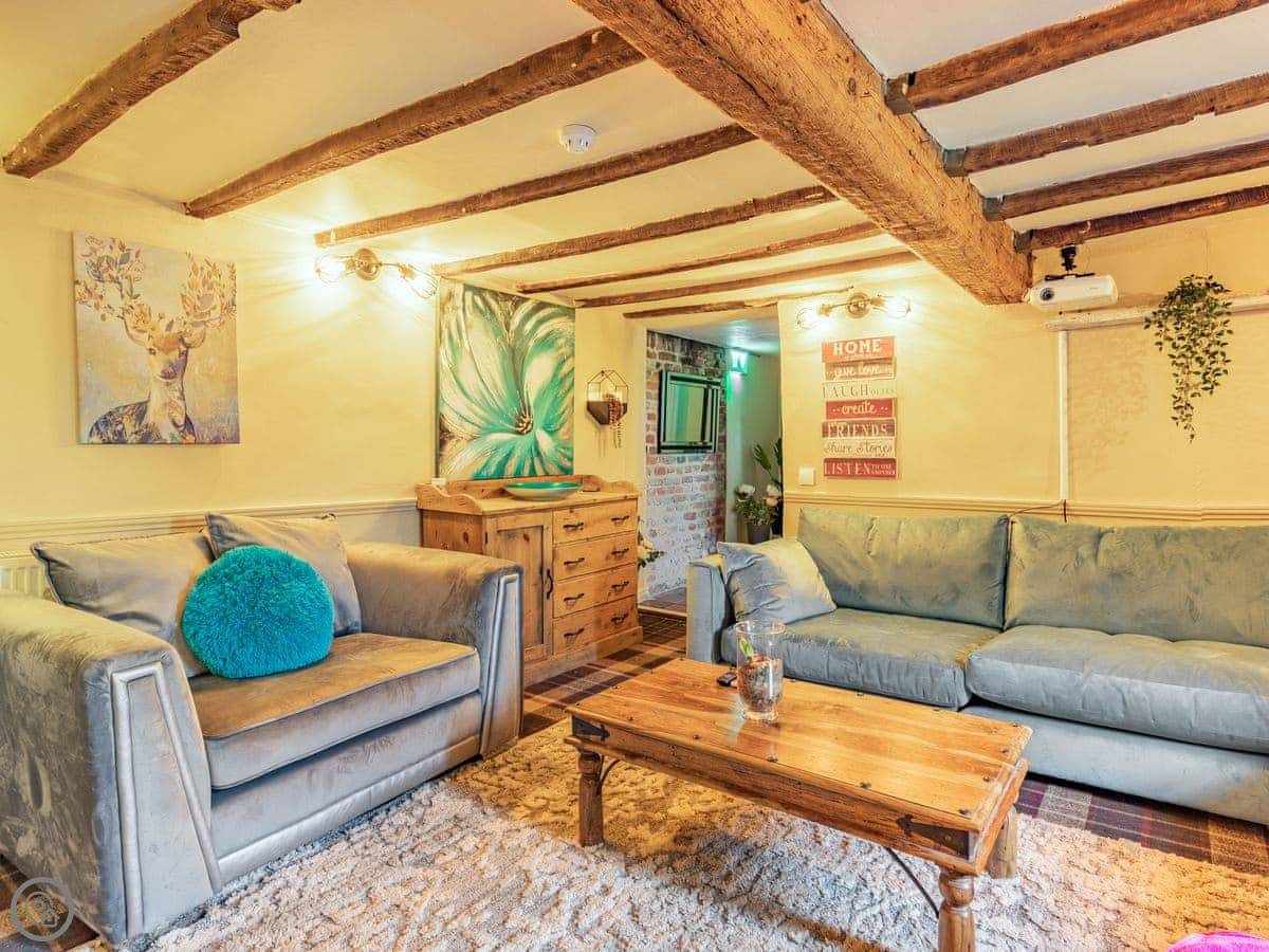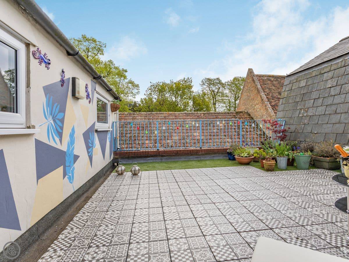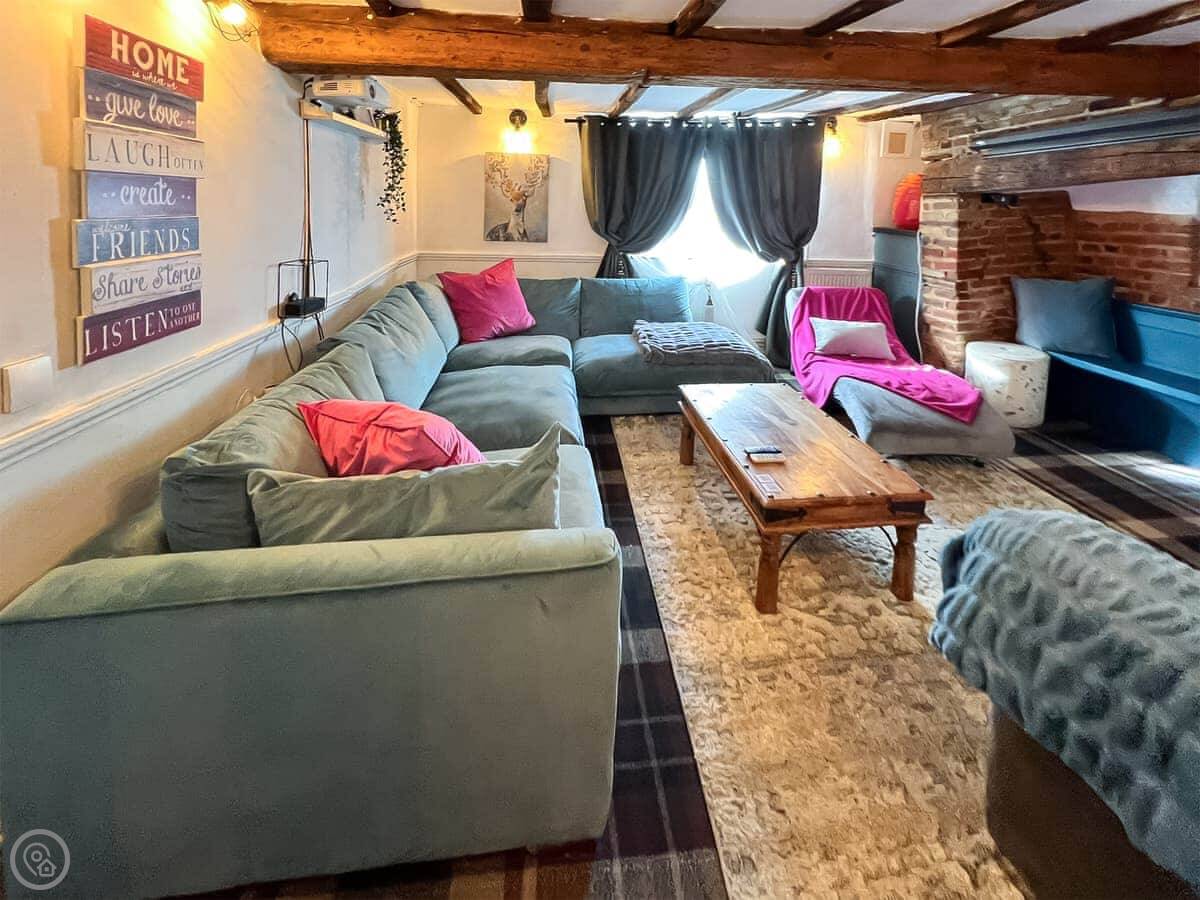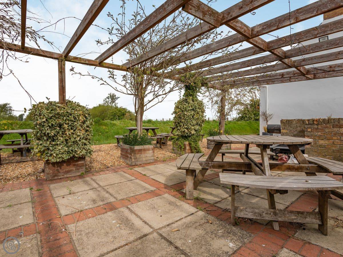 The Anchor is an idyllic, heritage, riverside property enjoying stunning views across the Ouse Washes. It offers a large rear garden which is perfect for al fresco dining and simply relaxing in. There is also a play area with trampoline, swing, seesaw and climbing frame for children or table tennis for the adults too. Dating back to the 17th century, this detached cottage was refurbished in 2021 and has been modernised to offer wonderful holiday accommodation. Set over two floors, the cottage has a ground floor living room featuring a large inglenook fireplace which oozes original character and charm. Upstairs are four wonderful bedrooms, each with a Smart TV and its own modern bathroom and shower room facilities. Two of the bedrooms have private, yet interconnecting rooms, offering comfortable sofa beds. The well-equipped kitchen has a large breakfast island for dining, a child friendly dining table, and boasts a commanding elevated view of the river, lawned garden and dining terrace below. The kitchen also leads to a balcony area with furniture.