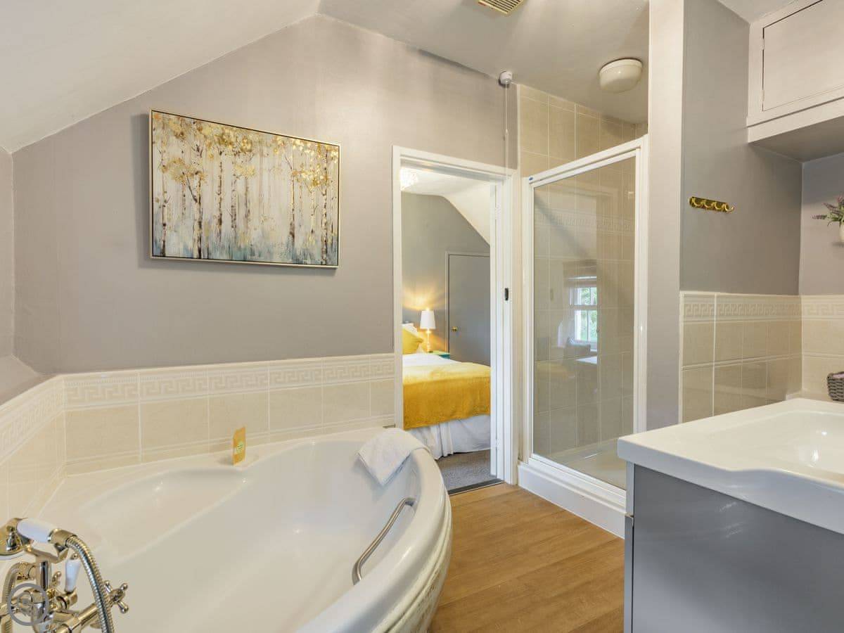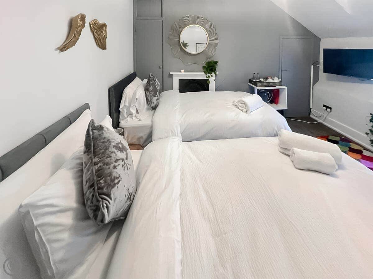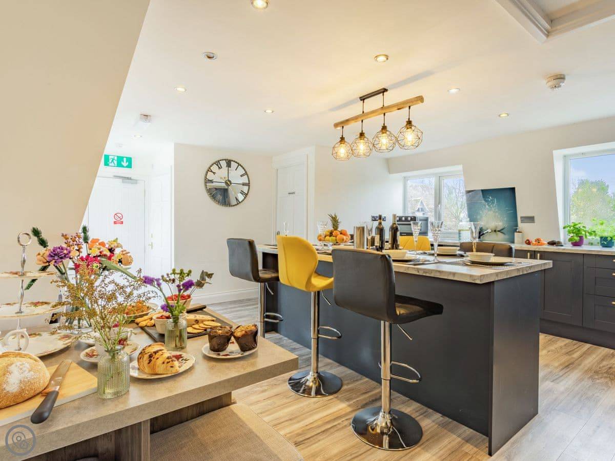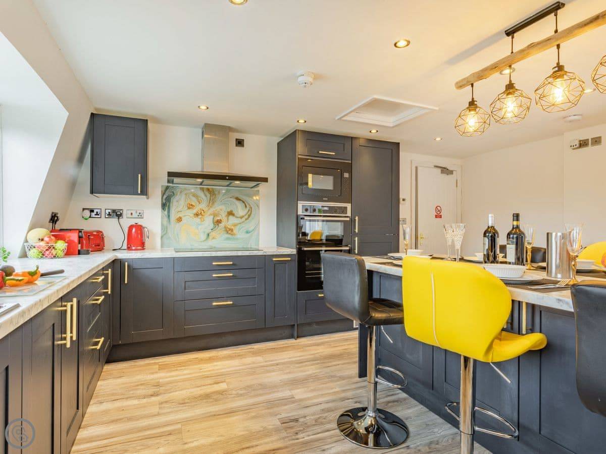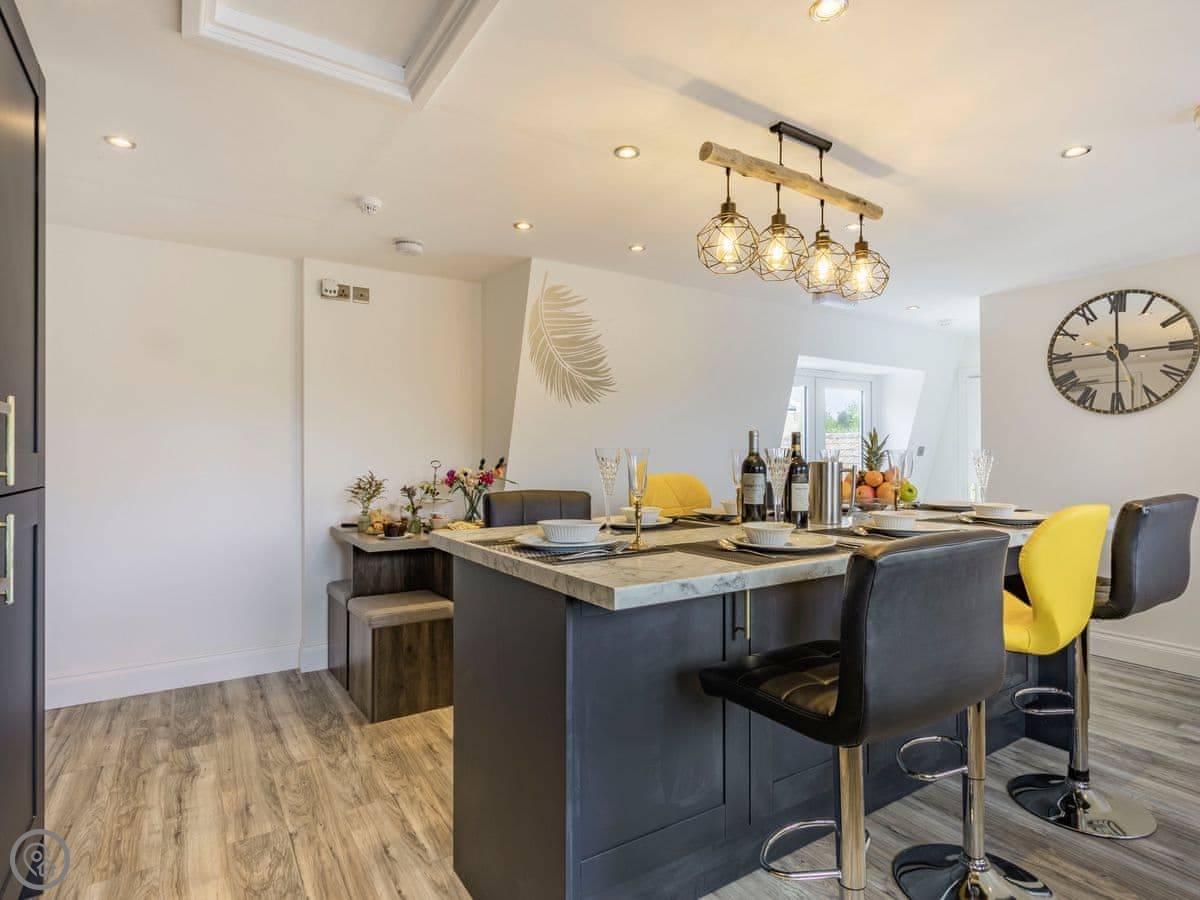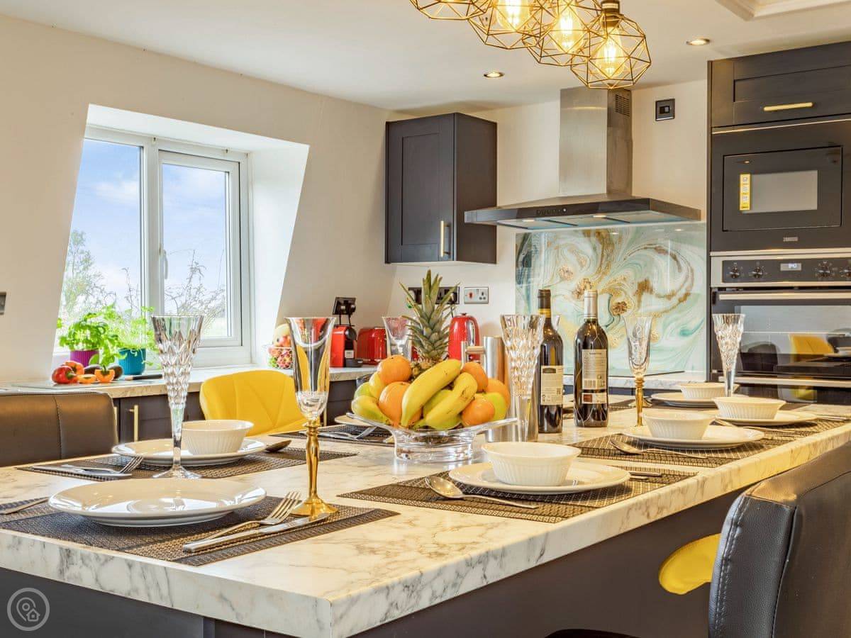 The Anchor is an idyllic, heritage, riverside property enjoying stunning views across the Ouse Washes. It offers a large rear garden which is perfect for al fresco dining and simply relaxing in. There is also a play area with trampoline, swing, seesaw and climbing frame for children or table tennis for the adults too. Dating back to the 17th century, this detached cottage was refurbished in 2021 and has been modernised to offer wonderful holiday accommodation. Set over two floors, the cottage has a ground floor living room featuring a large inglenook fireplace which oozes original character and charm. Upstairs are four wonderful bedrooms, each with a Smart TV and its own modern bathroom and shower room facilities. Two of the bedrooms have private, yet interconnecting rooms, offering comfortable sofa beds. The well-equipped kitchen has a large breakfast island for dining, a child friendly dining table, and boasts a commanding elevated view of the river, lawned garden and dining terrace below. The kitchen also leads to a balcony area with furniture.