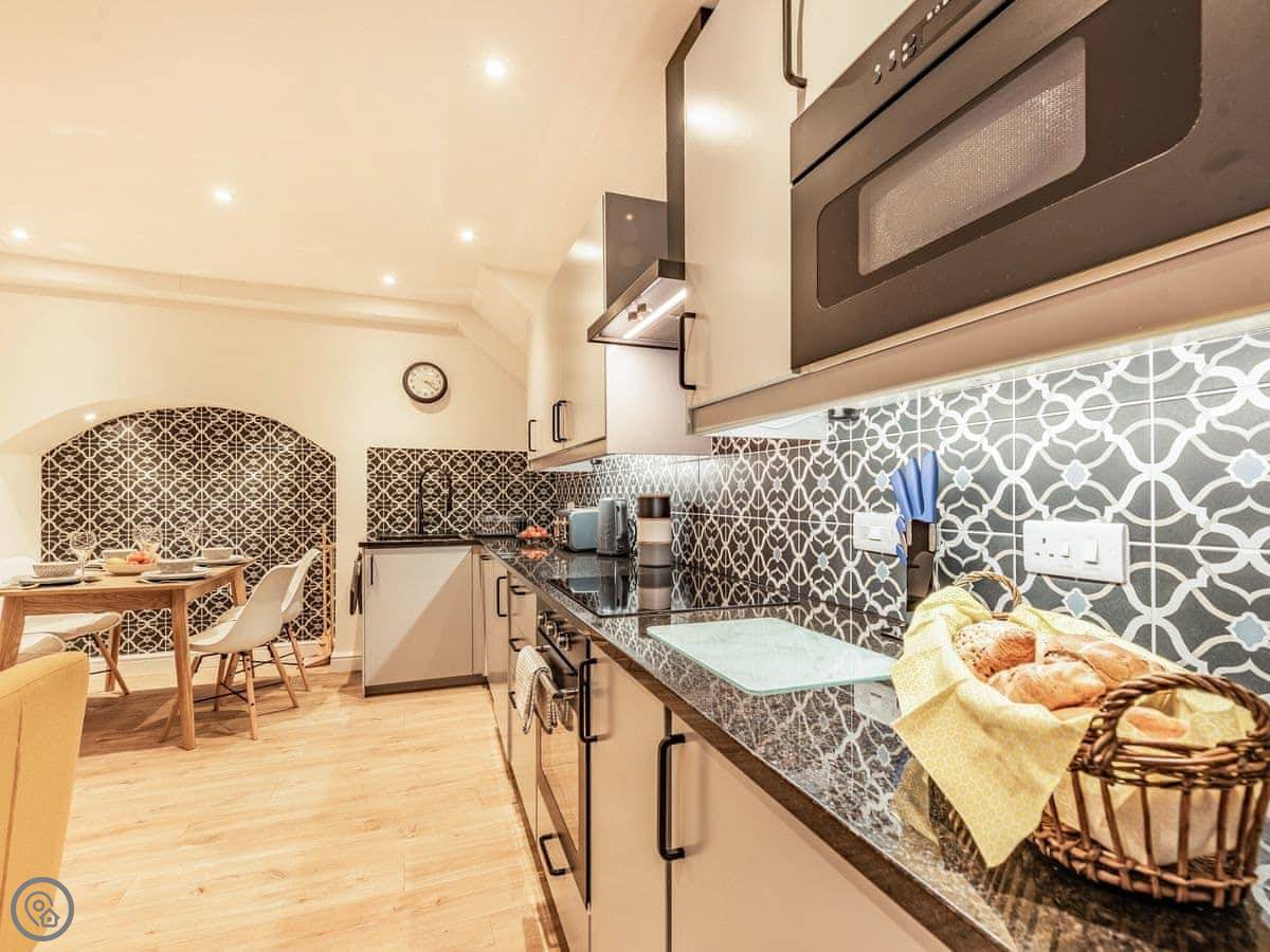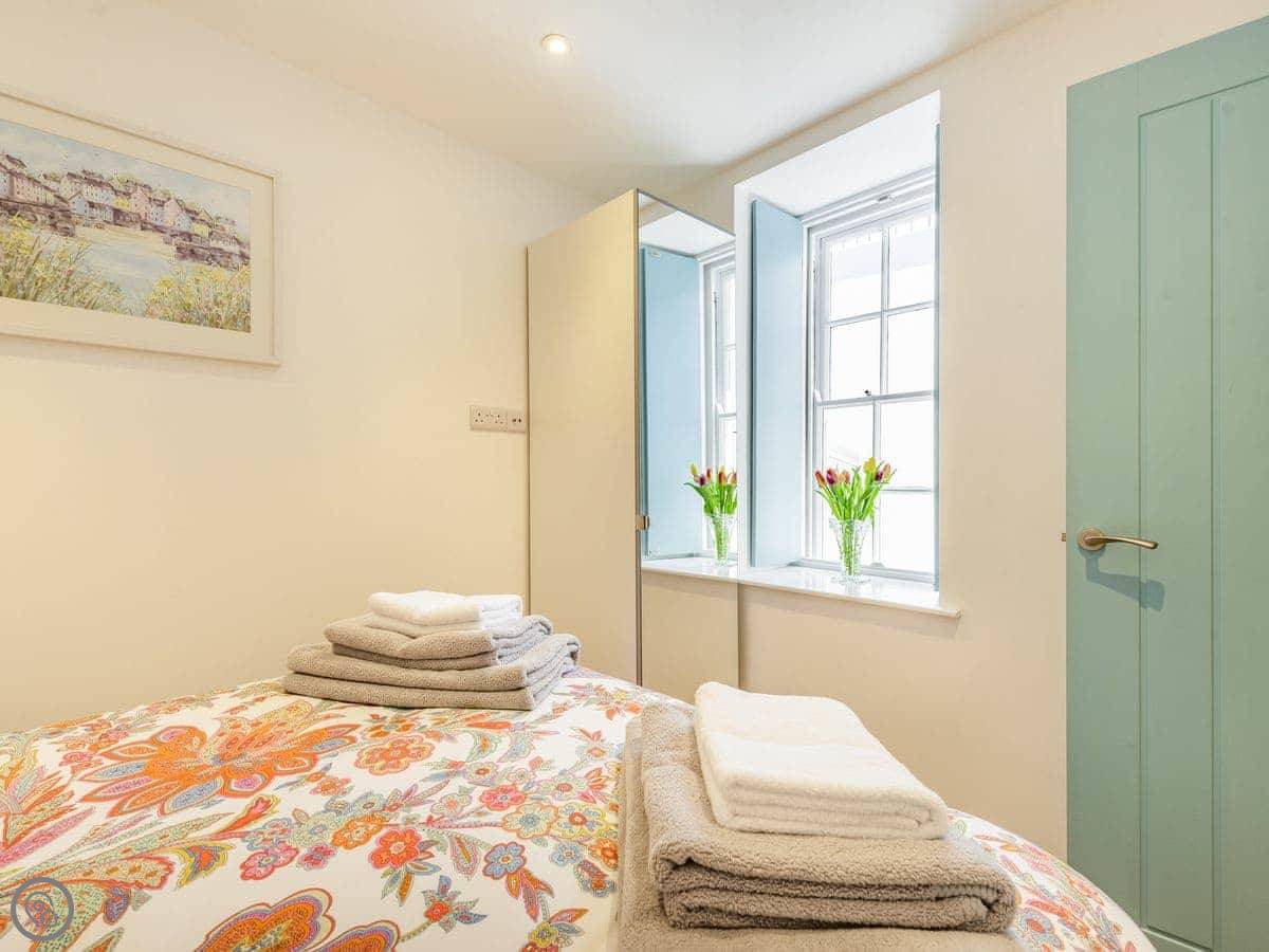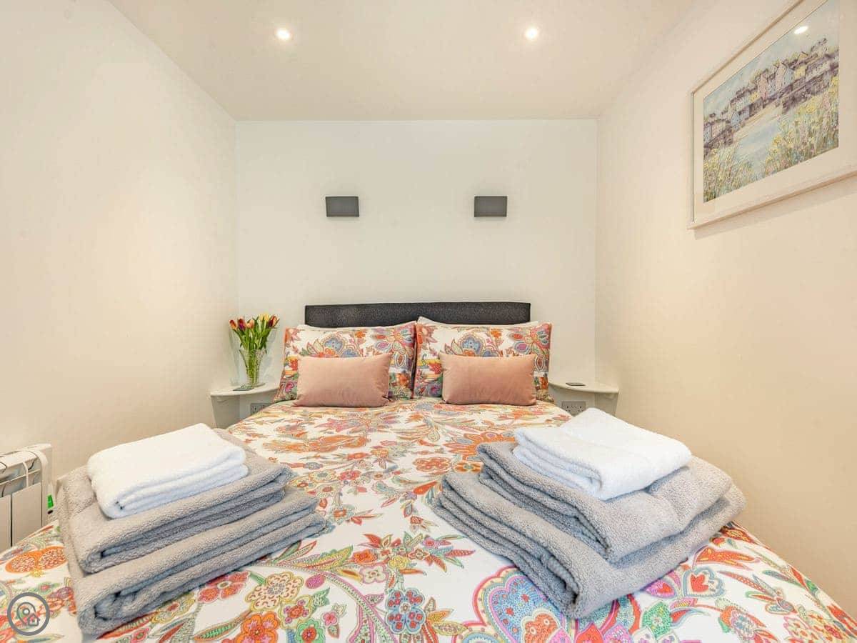 It sleeps four. Two bedrooms, one bathroom. It has a 5 Star rating. The place is in good condition, recently done up. The main bedroom has a super king bed that can be split into twins.