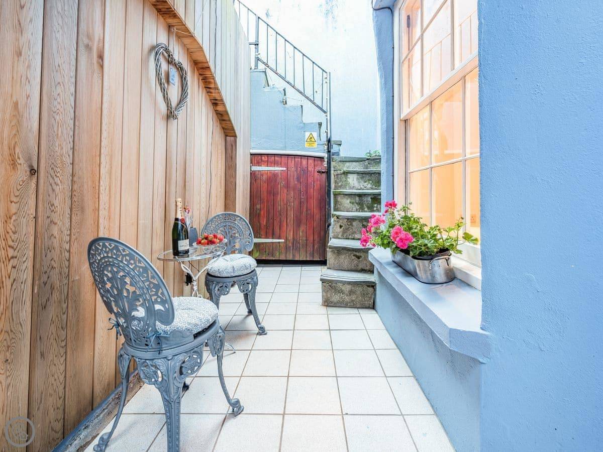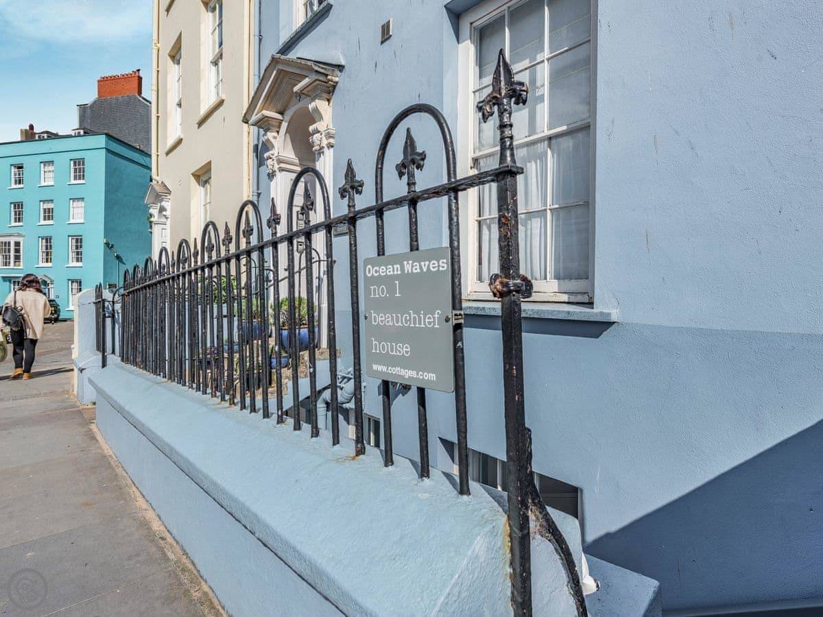 Ocean Waves is in Tenby. It's a lower ground floor apartment in a Georgian building that fronts right onto the harbour. The beach is literally at the bottom of the shared garden.