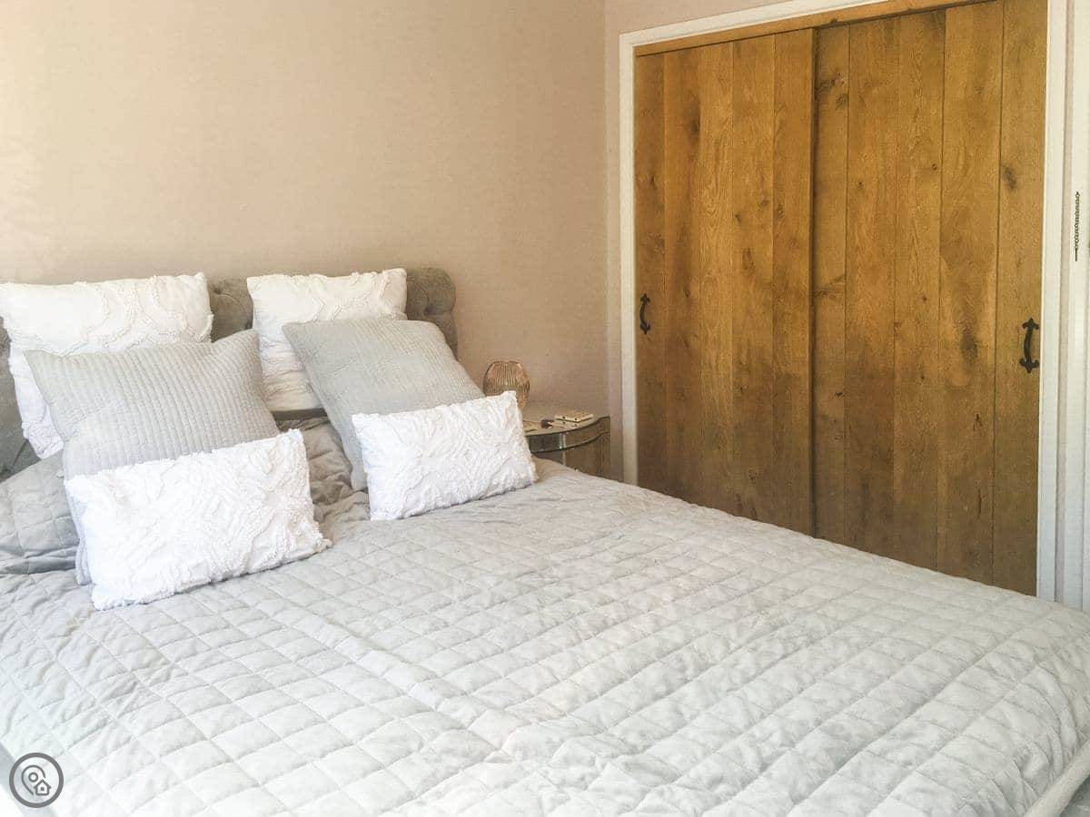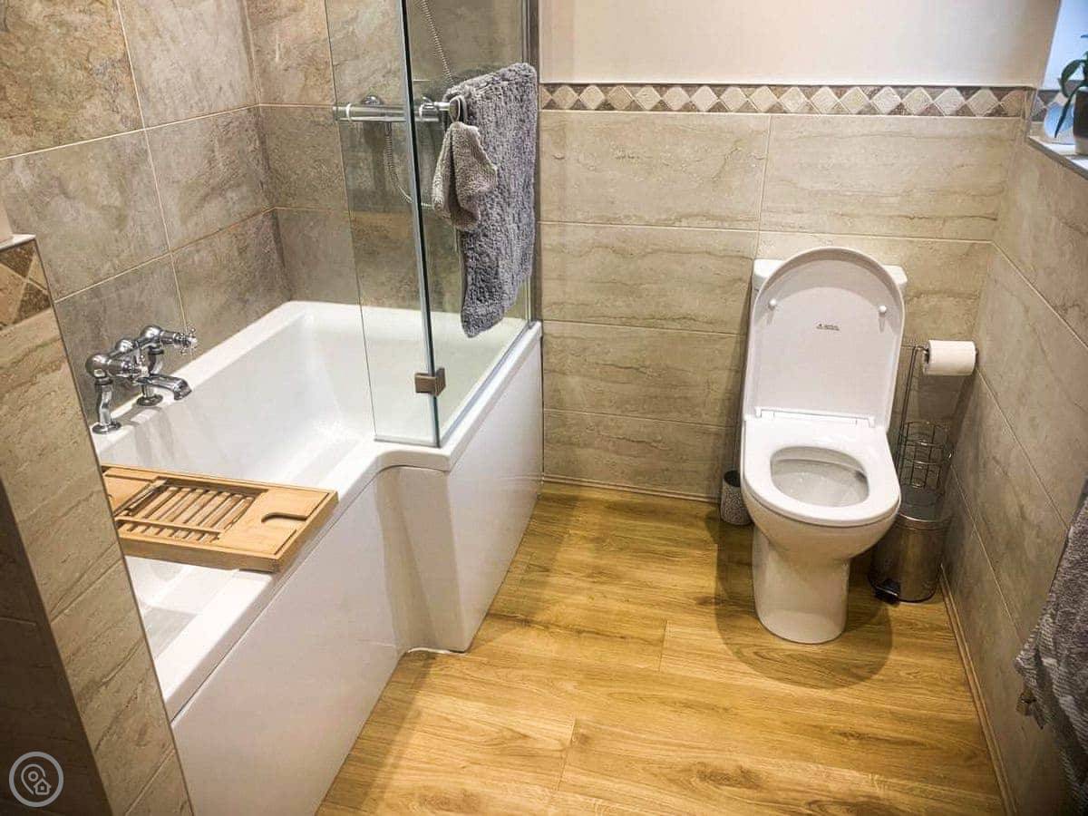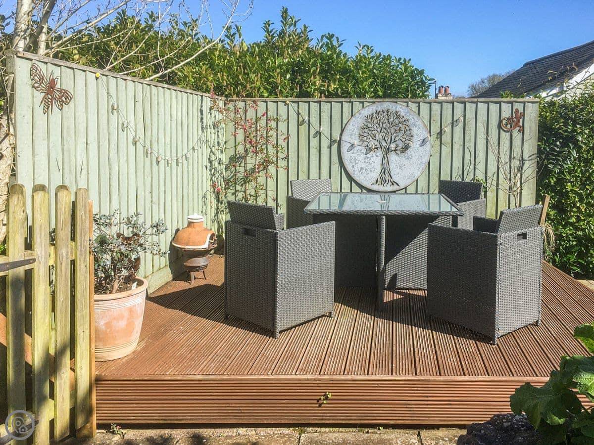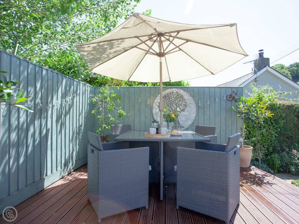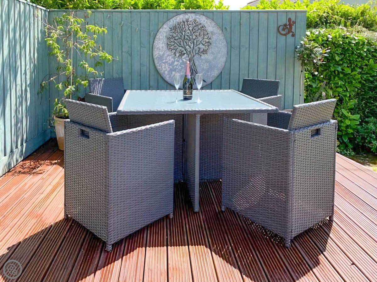 It's a one-bedroom cottage for two adults, sleeps two. There's a sofa bed in the living room that can take two children. It's got a 4 Star rating. Everything is on one level, which is good if you don't want stairs. The garden is enclosed, gets the sun in the afternoon, and has a seating area and a BBQ. You get parking for up to two cars next to the gate, which is shared with us as we live next door.