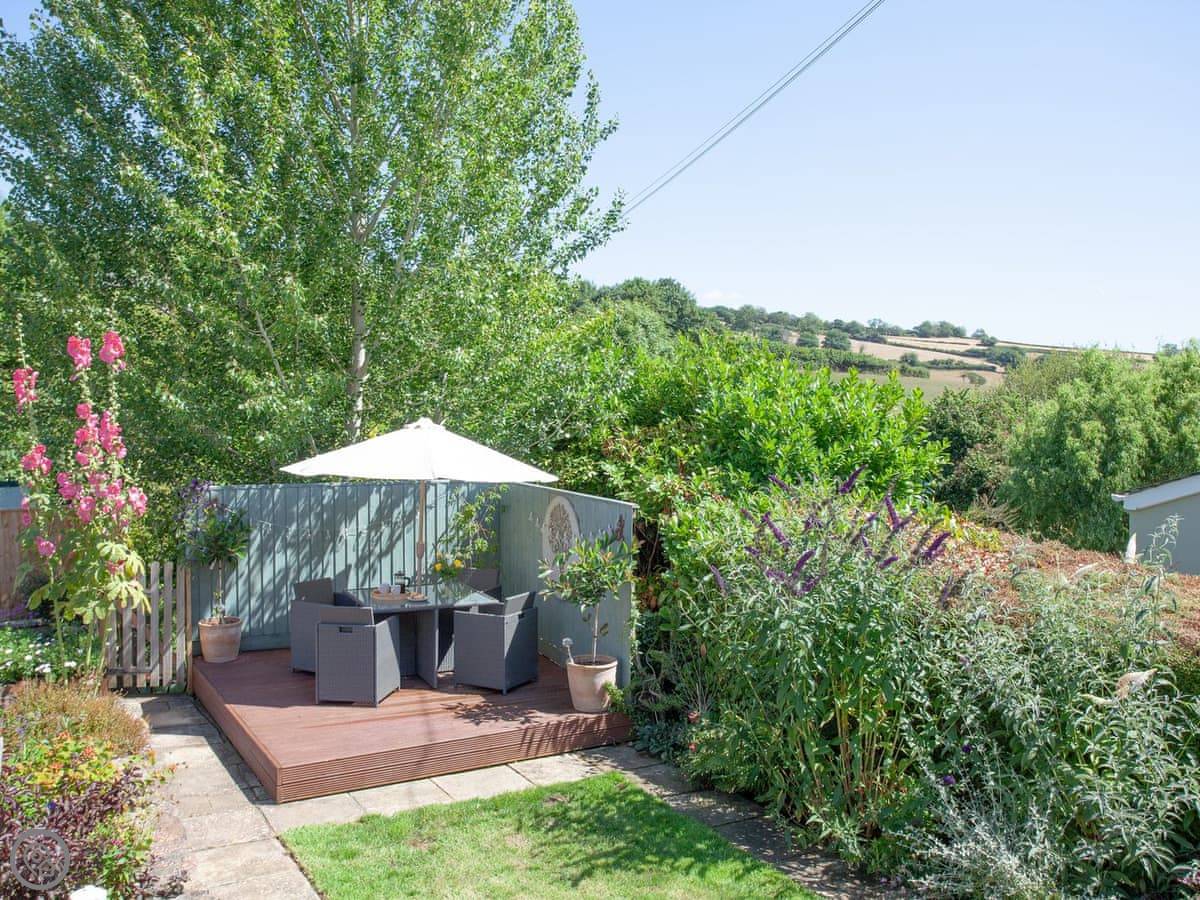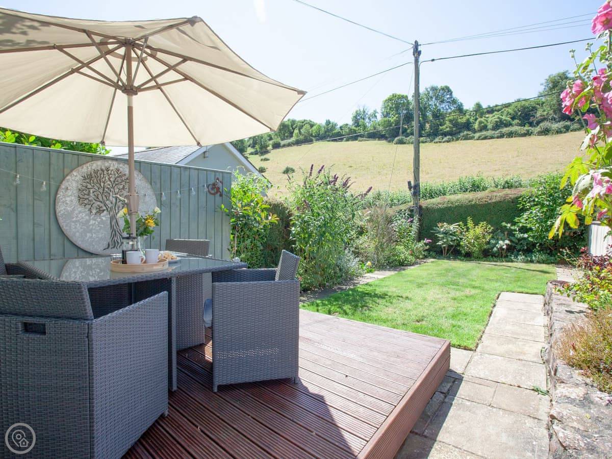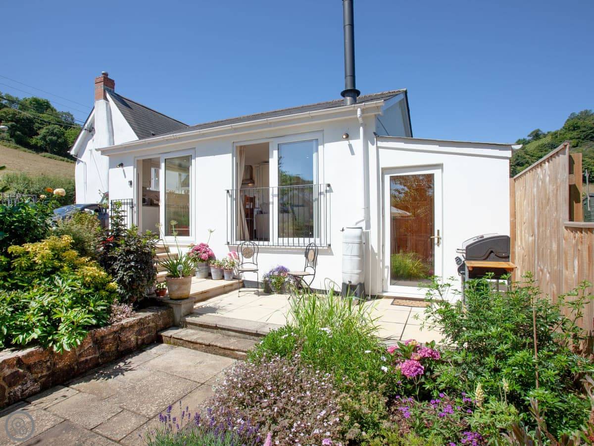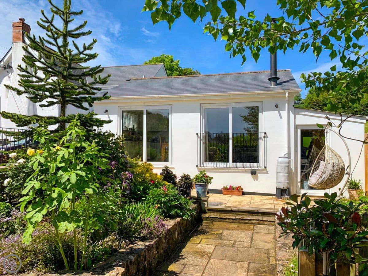 Withymead Cottage is in Bishopsteignton, on the edge of the village. It's next to a working vineyard. You can see the vines from the garden.