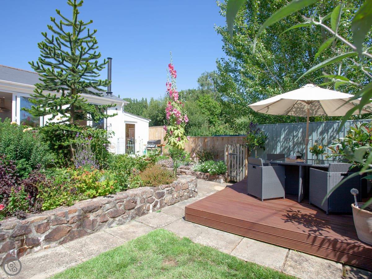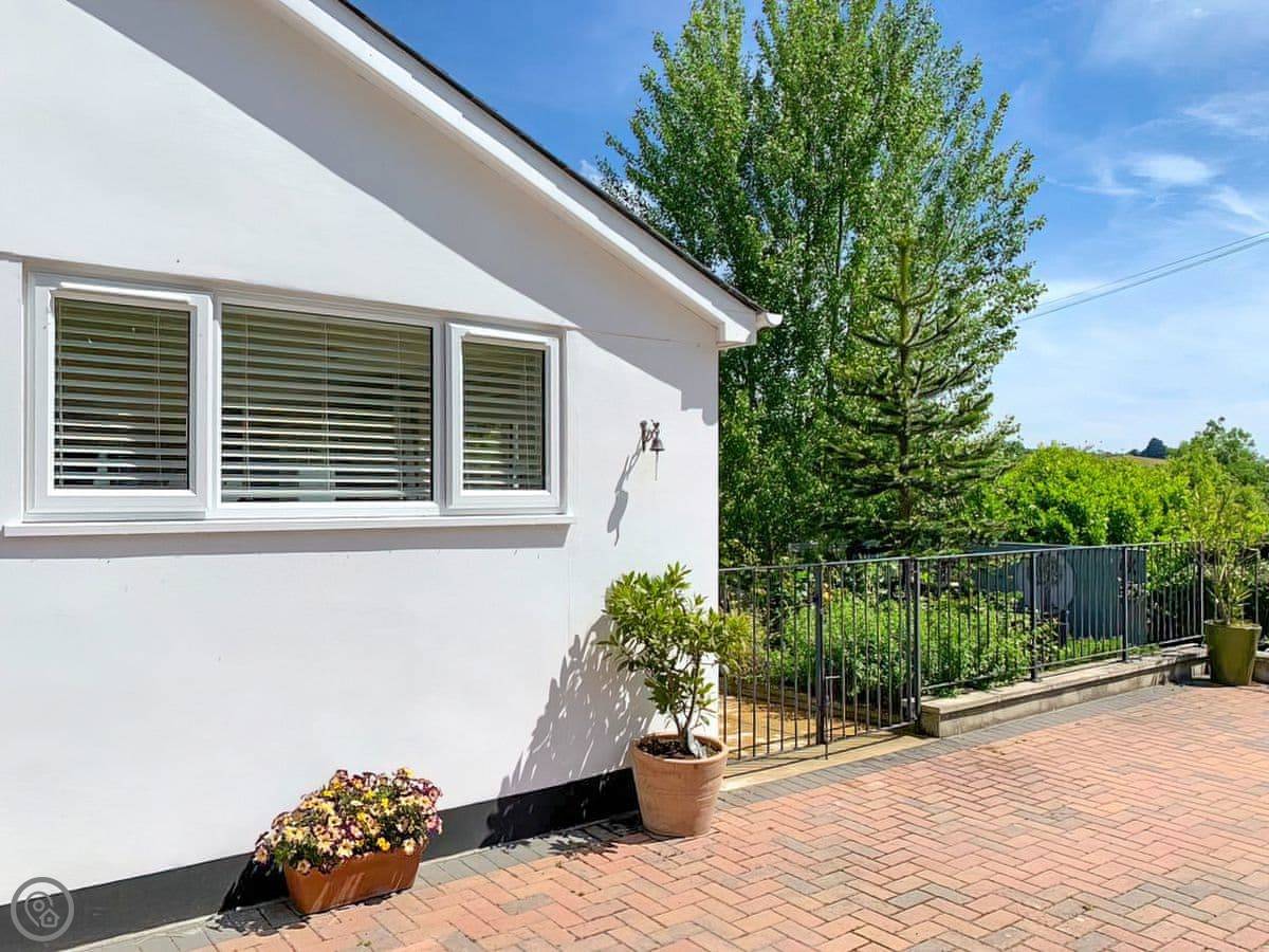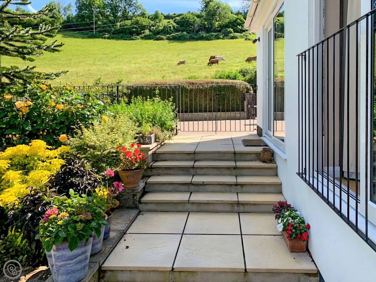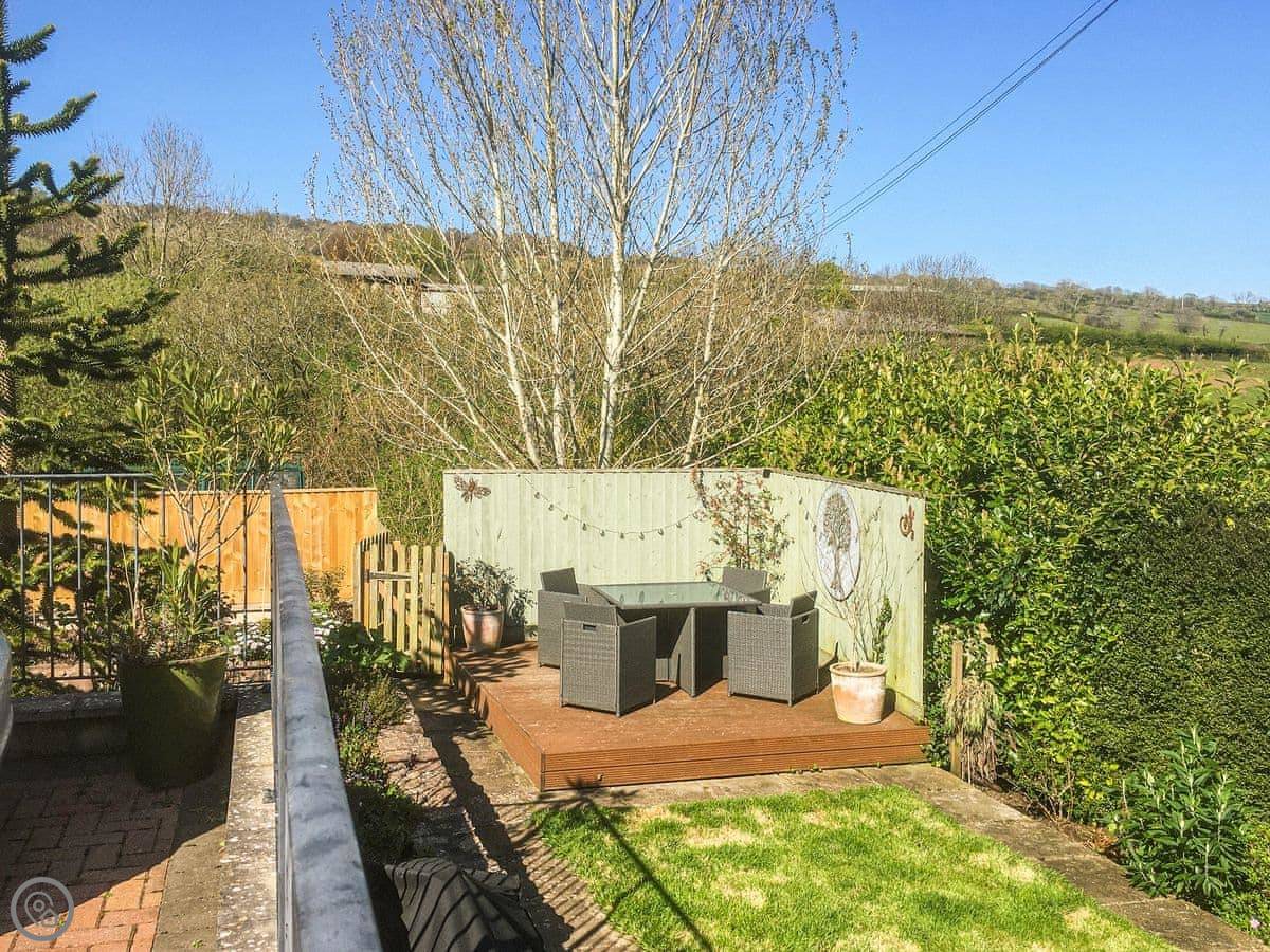 Withymead Cottage is in Bishopsteignton, on the edge of the village. It's next to a working vineyard. You can see the vines from the garden.