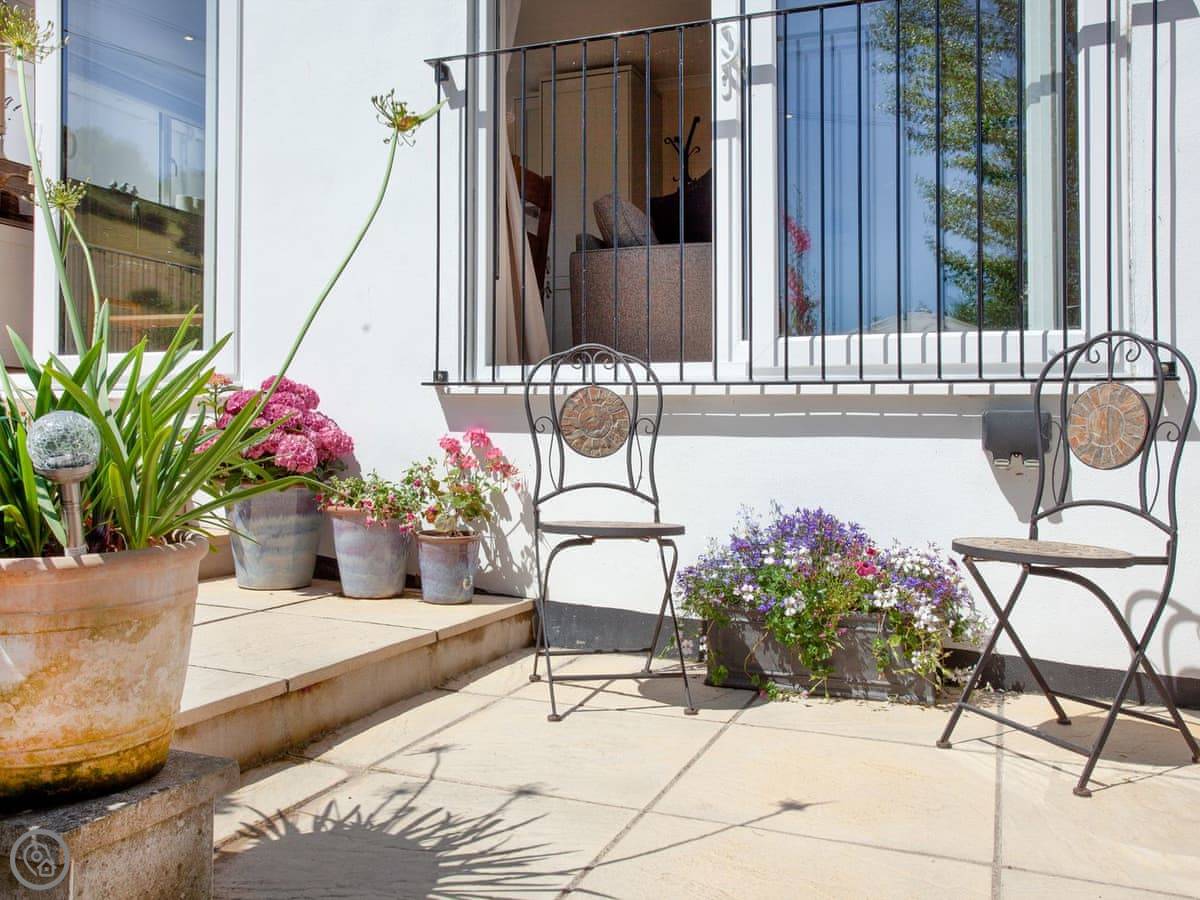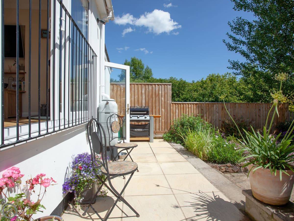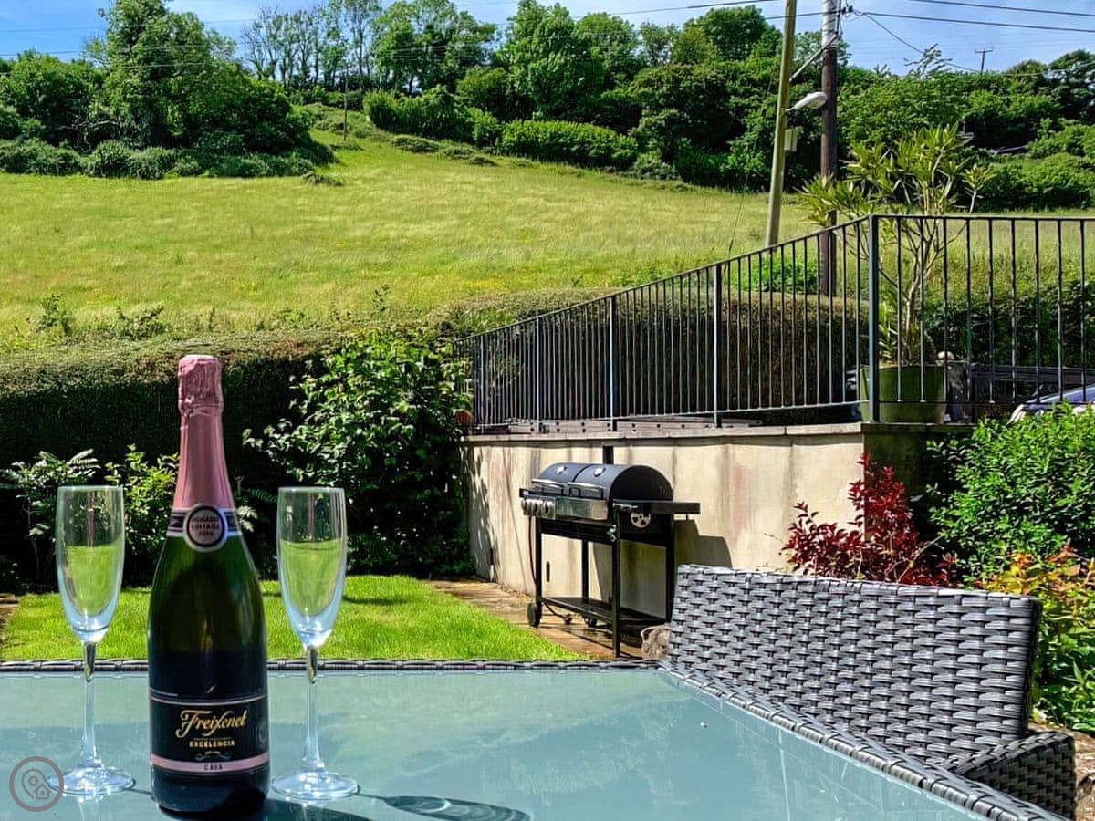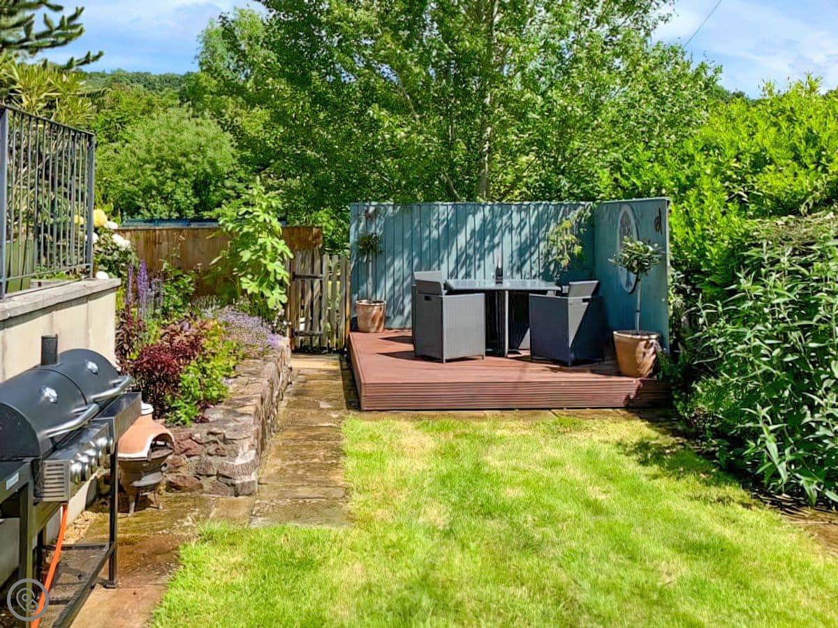 Withymead Cottage is in Bishopsteignton, on the edge of the village. It's next to a working vineyard. You can see the vines from the garden.