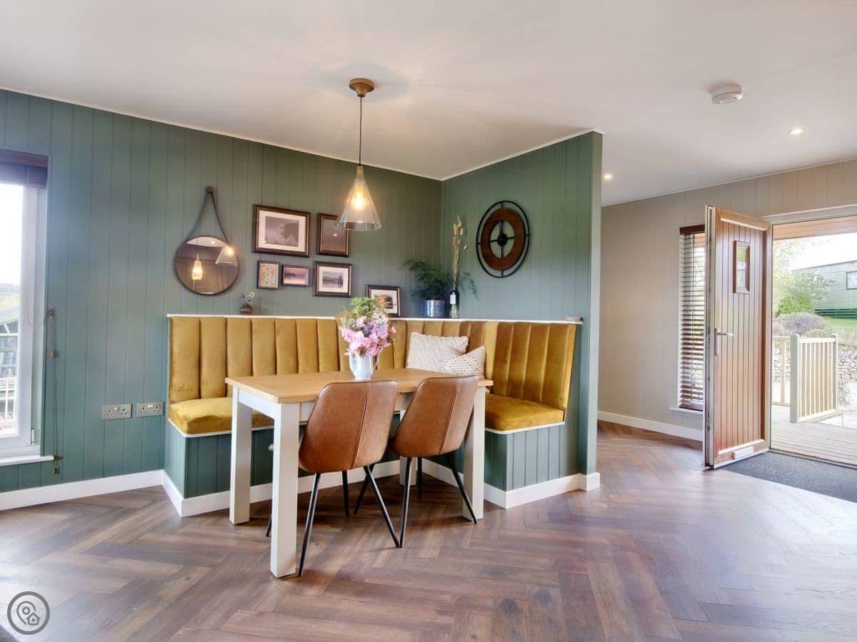 The lodge is on our quiet holiday park, but it's just for holiday lets, no one lives there permanently. It's very quiet. You’re about a quarter of a mile from the village. You can walk it along the river path from the property, it takes about ten minutes.