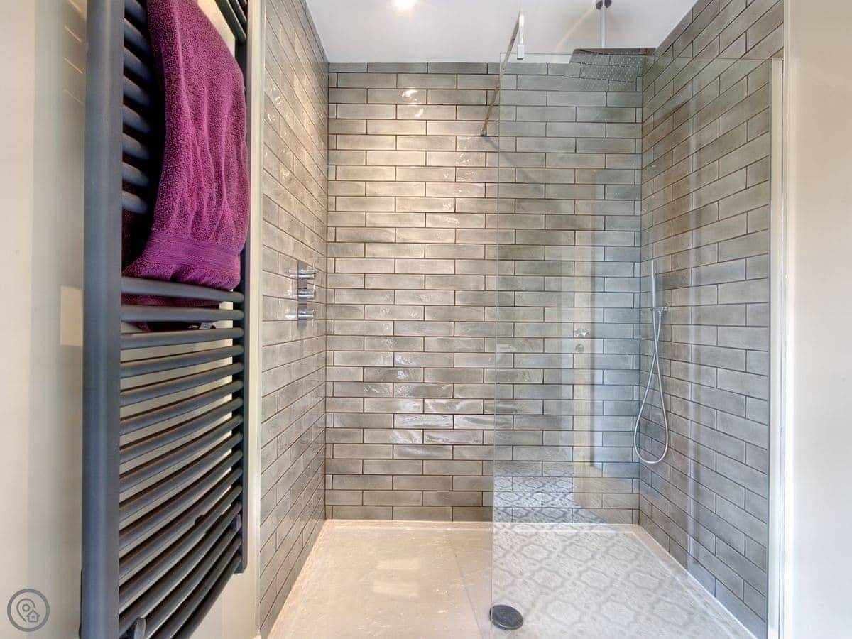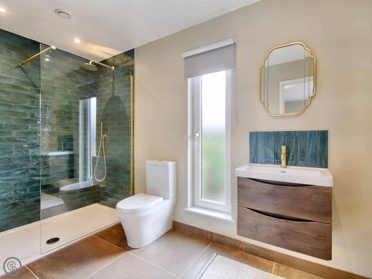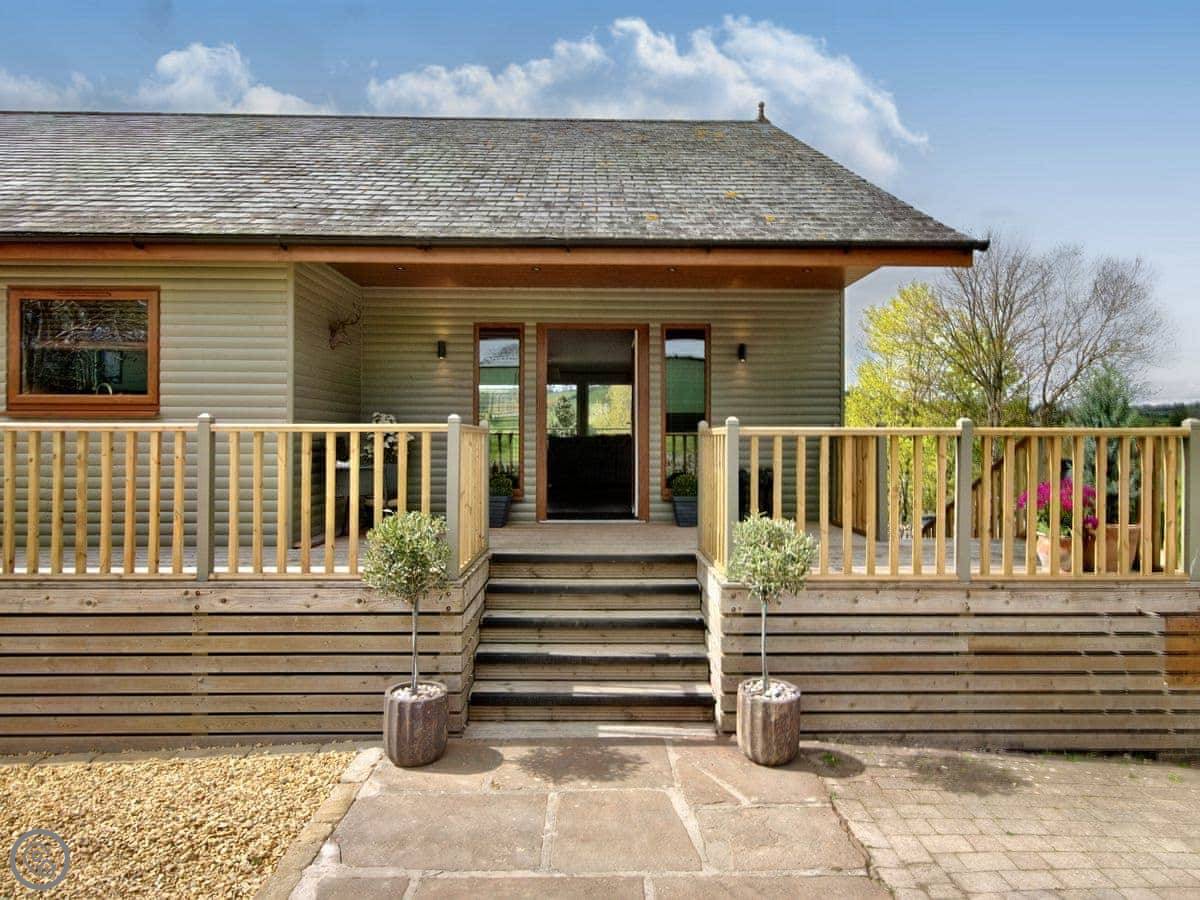 It sleeps four. Two bedrooms and each has its own bathroom, which is handy. It’s got a 4 star rating. There’s underfloor heating, and a wood burner for the evenings. The garden is enclosed, so it's fine for kids. You can park right by the door.