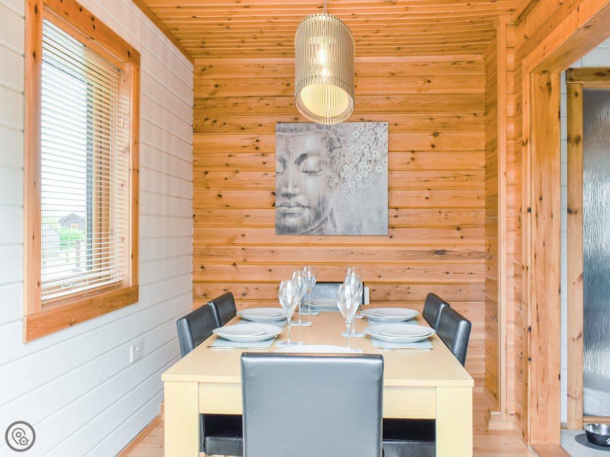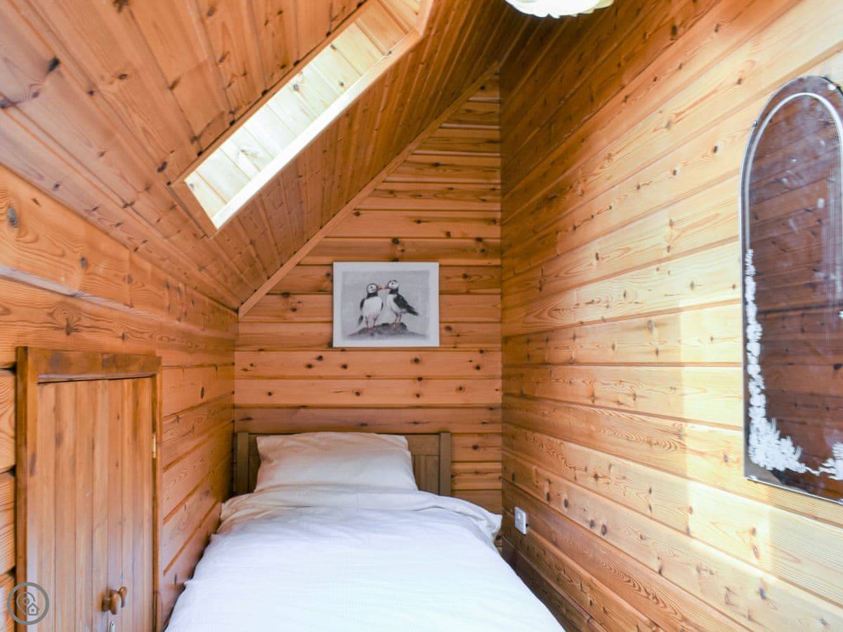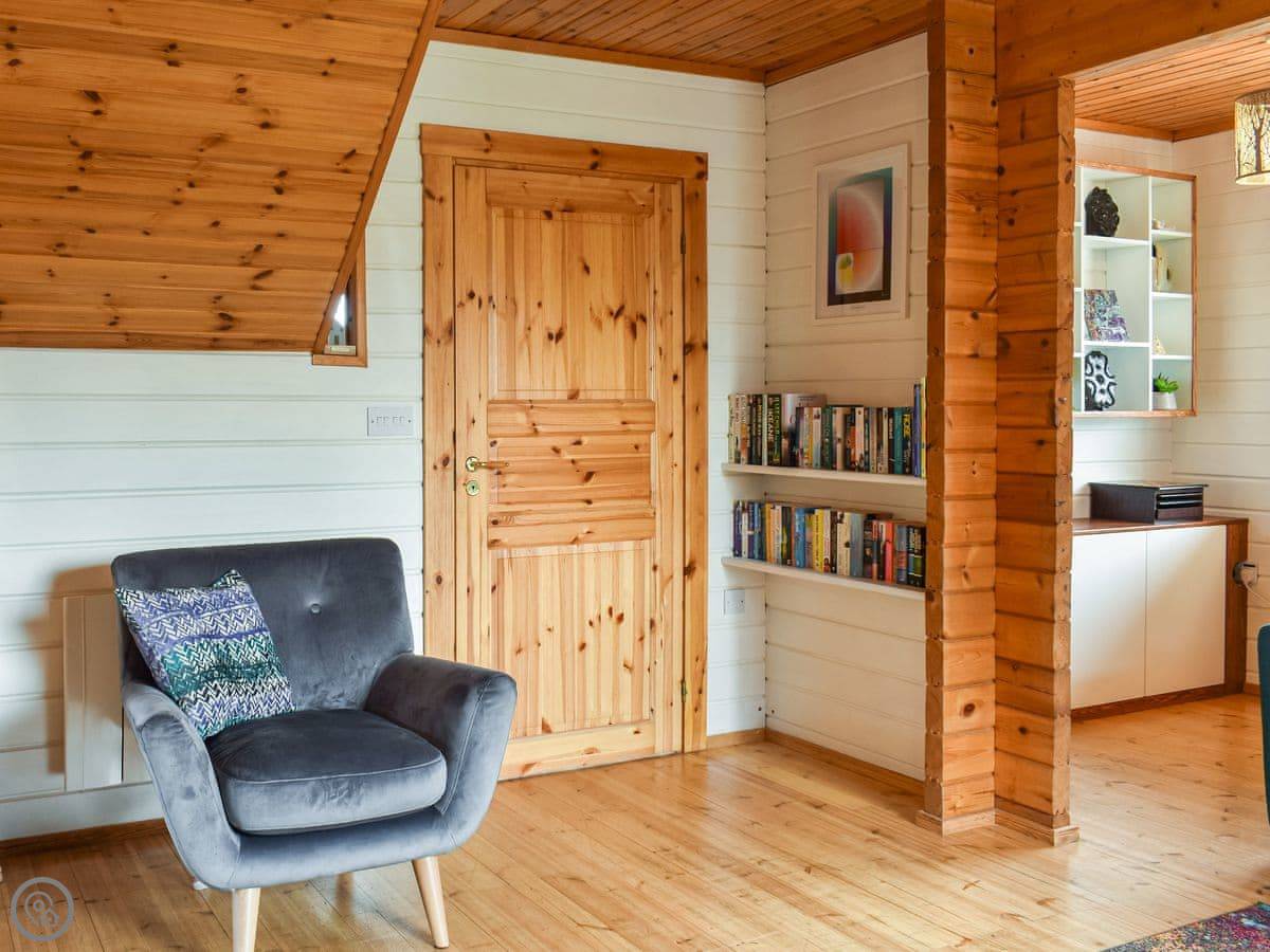 This is the Gower Cabin, in Menai Bridge on Anglesey. It's a detached wooden cabin, Scandinavian style. You get views from it over fields towards Snowdonia, which is quite nice on a clear day.