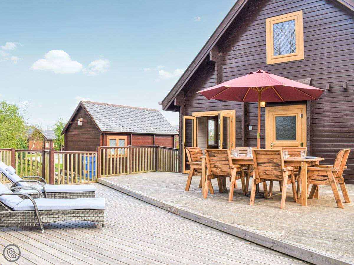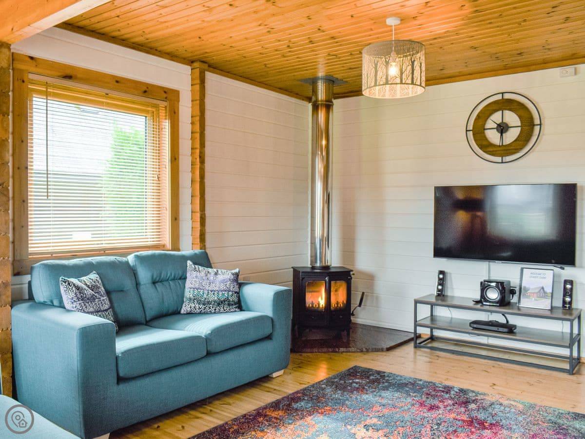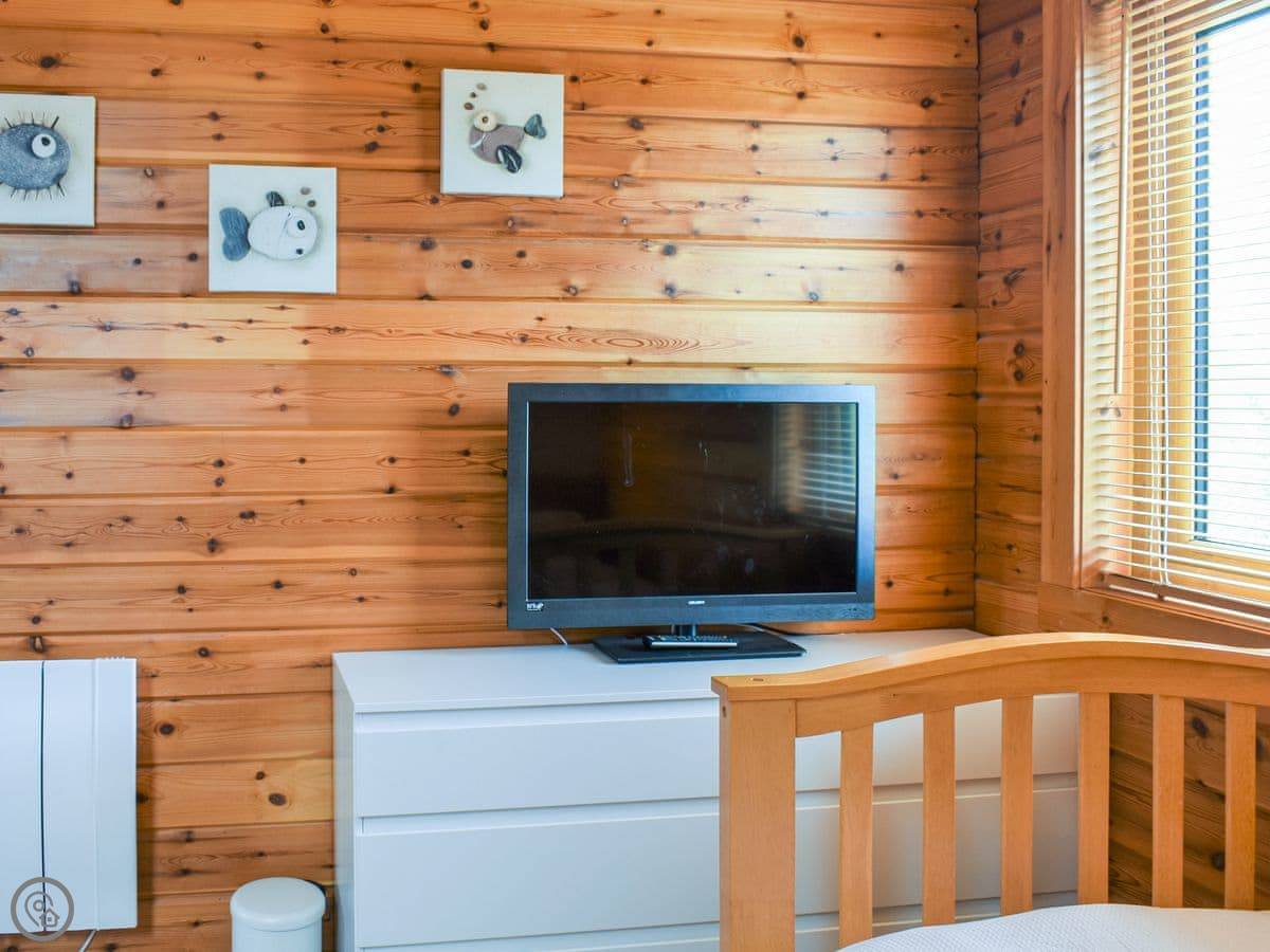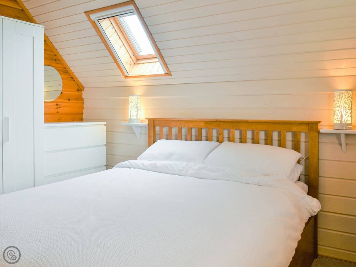 This is the Gower Cabin, in Menai Bridge on Anglesey. It's a detached wooden cabin, Scandinavian style. You get views from it over fields towards Snowdonia, which is quite nice on a clear day.