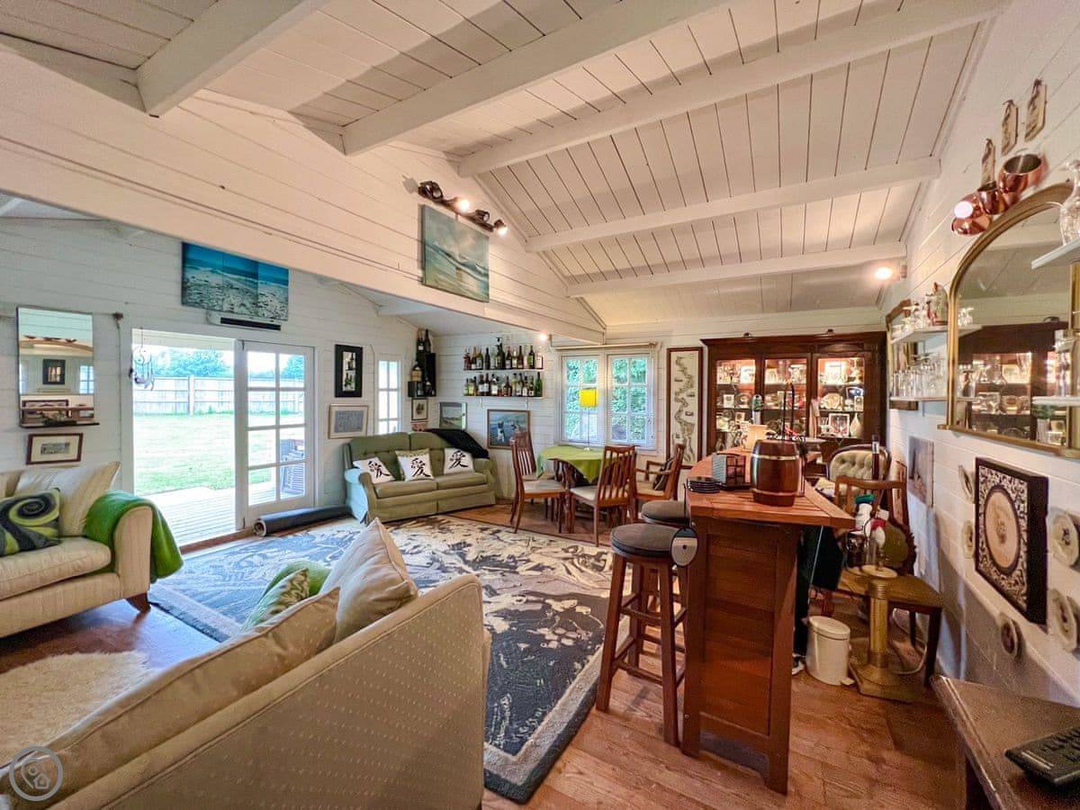 The house is spacious. There's a big conservatory that leads out to the garden. At the bottom of the garden there's a summer house set up as a bar, with a barbecue and a bit of a kitchen area. It's a good spot if the weather's nice.