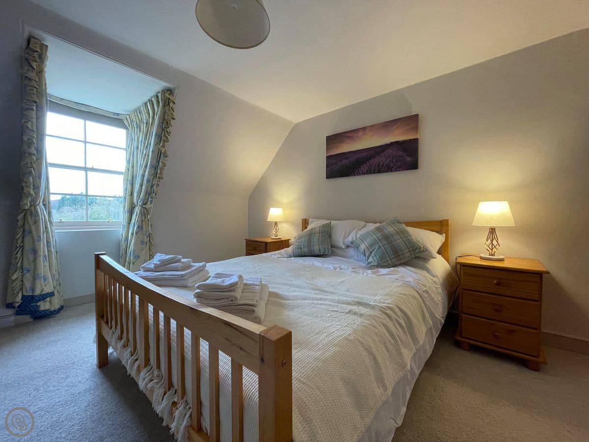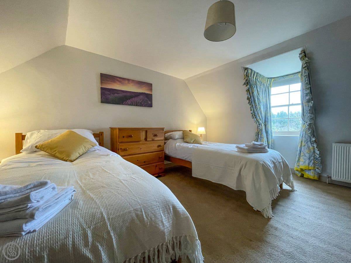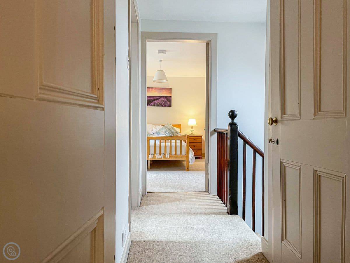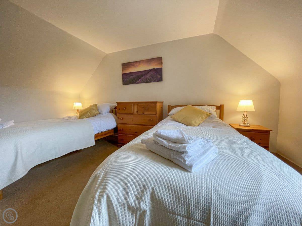 It sleeps six. Three bedrooms, one bathroom. It's got a 4 Star rating. It's comfortable but not new. There's a bedroom and the bathroom on the ground floor, which is useful. The stairs are normal, nothing too narrow.