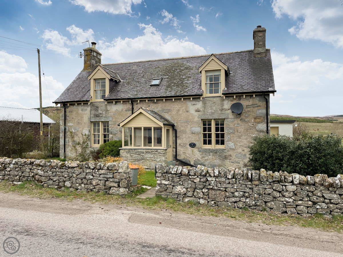 Milton Cottage is in Rosehall, up near Lairg in the Highlands. It's a detached stone cottage with its own garden all the way round. You get a good view out the back over fields to the hills.