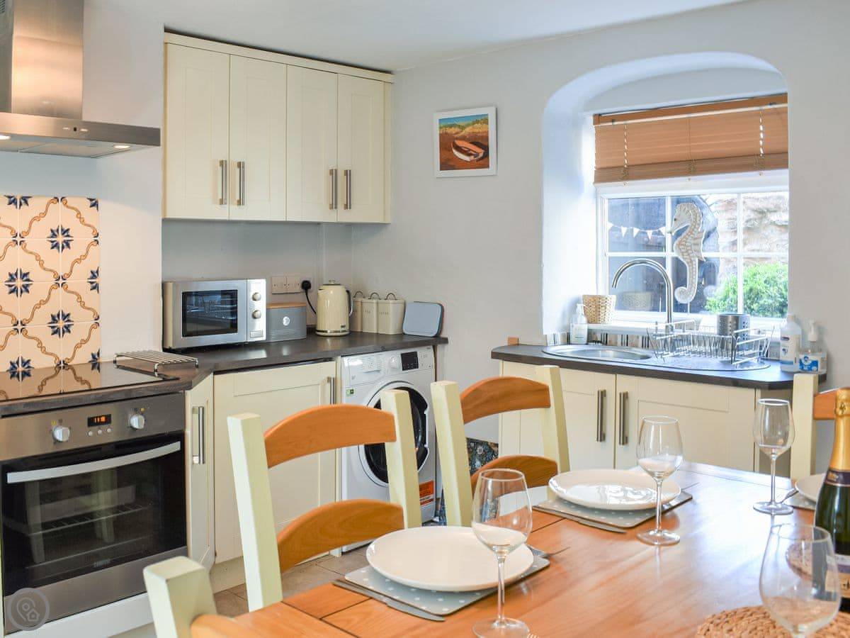 The ground floor is open plan with a kitchen/diner and living room, separated by a staircase. The living area is comfortably furnished with plenty of seating, a Smart TV and a wood burner. The kitchen is fully equipped with everything needed to prepare a home cooked meal. There is a door leading to a rear courtyard which is a shared space for the neighbours, but guests do not have access to use this. As the evening draws to a close, drift off to sleep within one of the two well-presented bedrooms; the first has a double bed and the second has twin beds. The family bathroom is fitted with a shower over the bath.