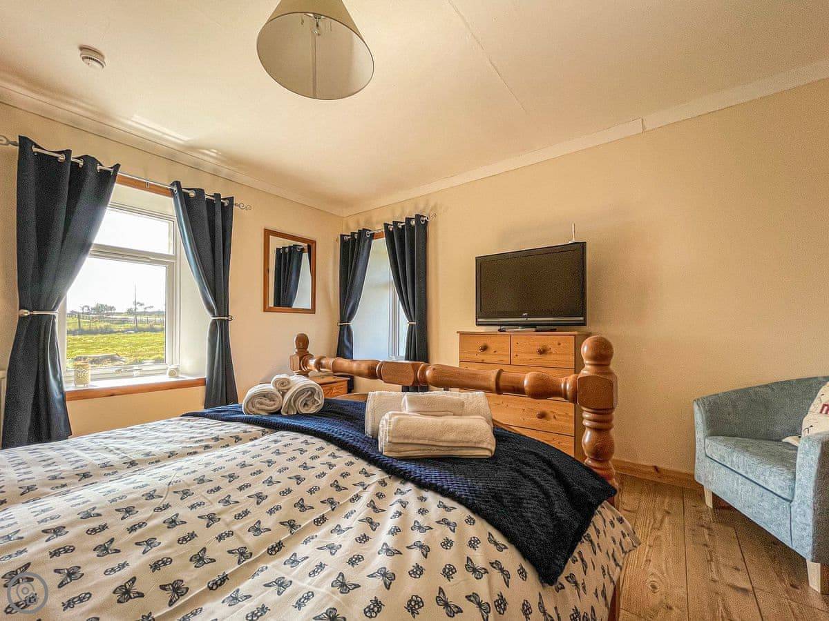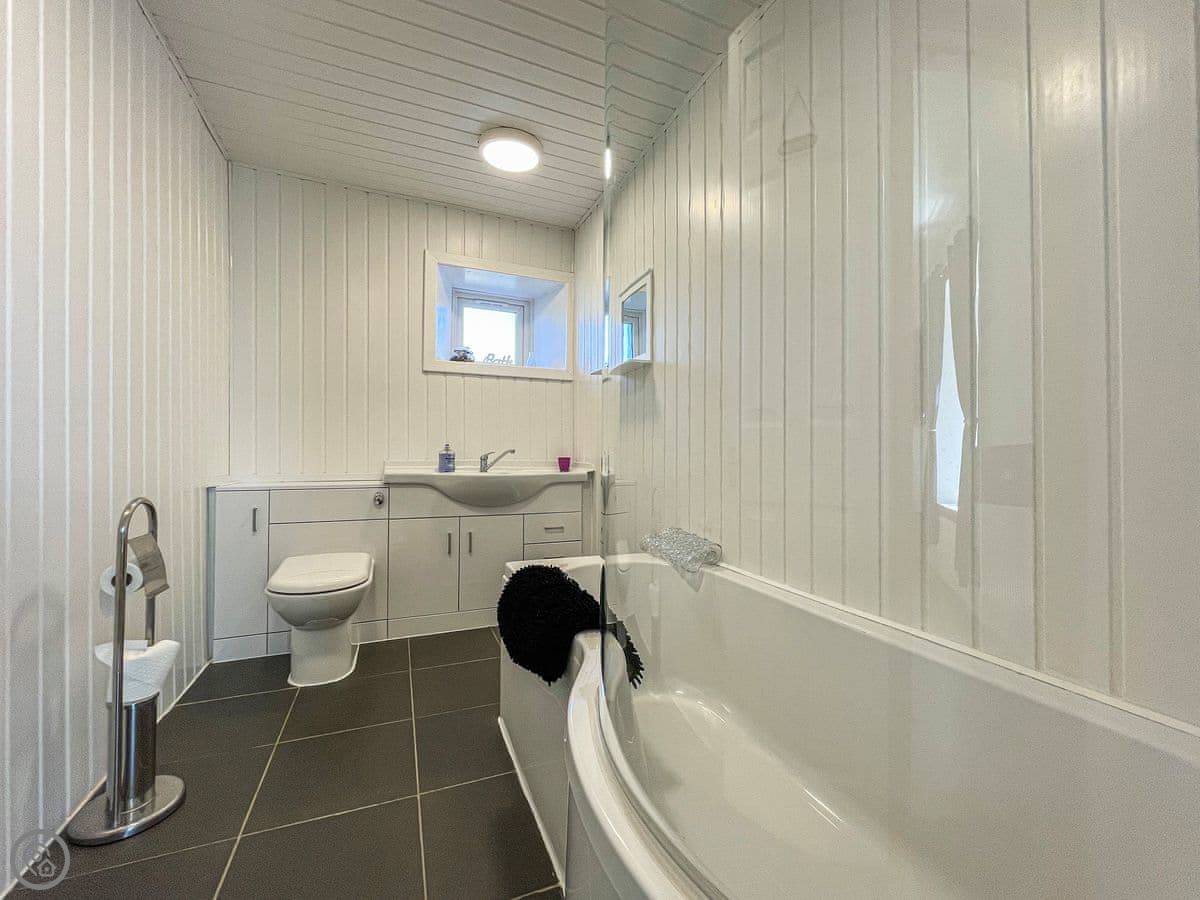 Entering the property at the back door you have a very useful utility space and general boot/drying room. The fridge/freezer is in the utility space. Stepping up one step into the open-plan kitchen/dining/living room you can immediately see what a great job the owner has made of the restoration. This open-plan space was the adjoining barn to the croft cottage. The kitchen is very well equipped for cooks to rustle up meals, the dining and living room spaces are roomy. Beyond the living space is the bunk room with en-suite toilet. This bunk room was actually the old cow byre. Back to the kitchen and stepping up again into the original croft cottage there are two further bedrooms, both spacious doubles, as well as the family bathroom and a sunroom/conservatory. It’s a cracking cottage that families will enjoy immensely. Especially as you are so well placed to make the most of the amazing surrounds.