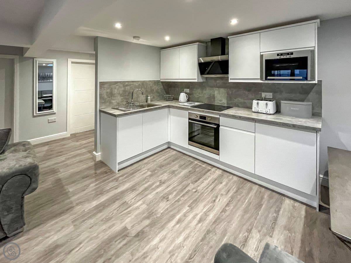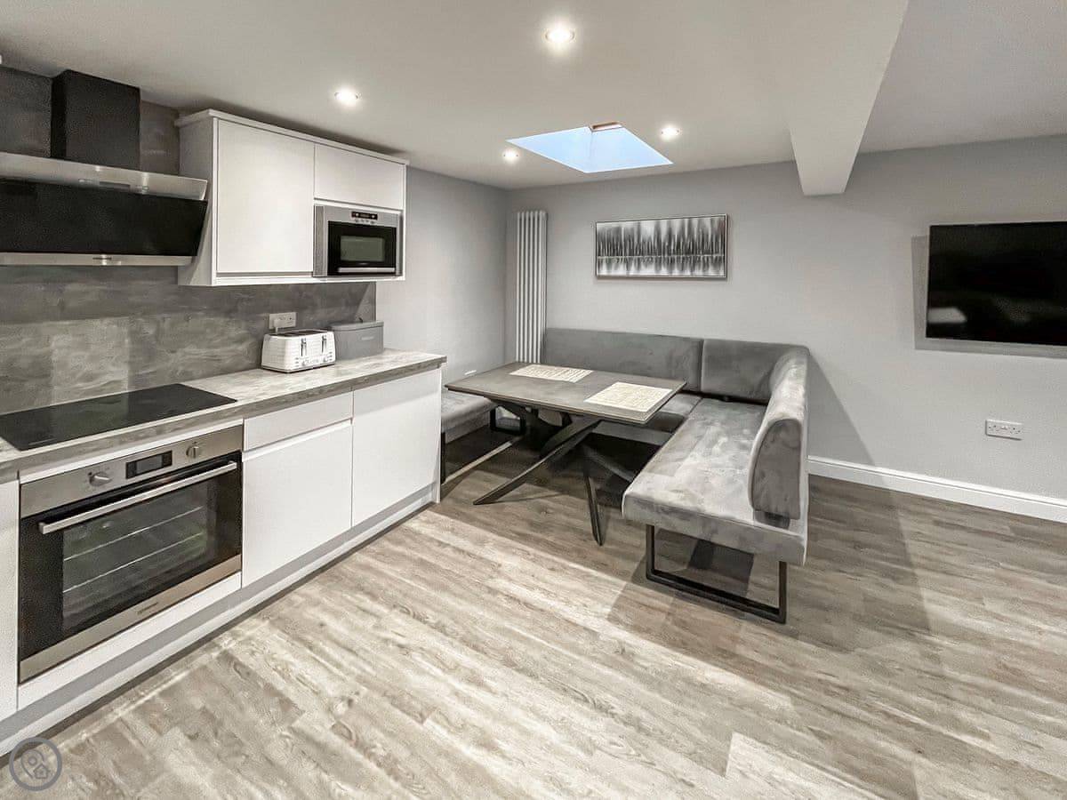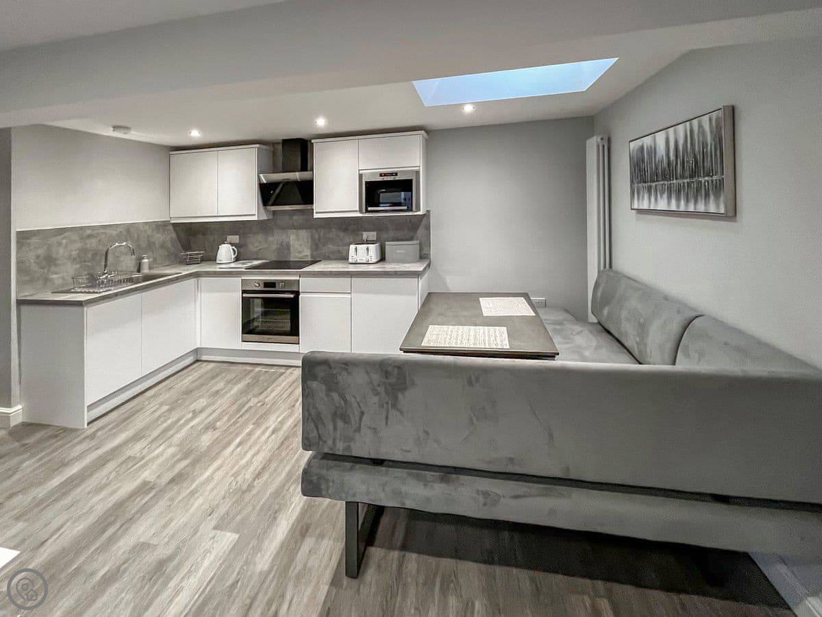 You open the door to this modern cottage and instantly appreciate the tasteful decoration and the open plan design. The living room, dining area and kitchen blend beautifully into each other, meaning wherever you are, or whatever you are doing, you are in constant contact with each other. The sofa’s is comfy and the ideal place to snuggle up after a busy day in the Lake District. The kitchen is well appointed with everything you need to cook a lavish evening meal or make a simple sandwich. The bedroom is a good size with a kingsize bed as the centrepiece and the bathroom is modern and stylish with a shower. Newton in Furness is a quiet village located a few minutes away from the main road that acts as a pathway to the Lakes The village has two local Pubs one only 100m away from the property and the other only 350m away from the property.