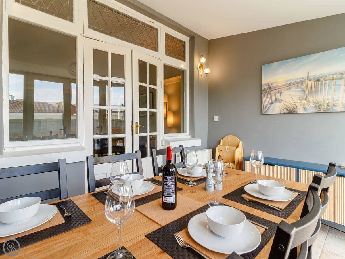 Court House comprises of a spacious kitchen, ground floor toilet, large living room with wood burner and Smart TV, leading to the dining room which looks out on to the garden, a second living room with TV and feature fireplace, to the first floor there is the master bedroom with kingsize bed, twin room, double room and a bunk bed room. Outside is an enclosed garden with astro turf and patio area with seating. Please ensure the property is left in the same condition as when you arrived, thank you. Sea is 100 yards.