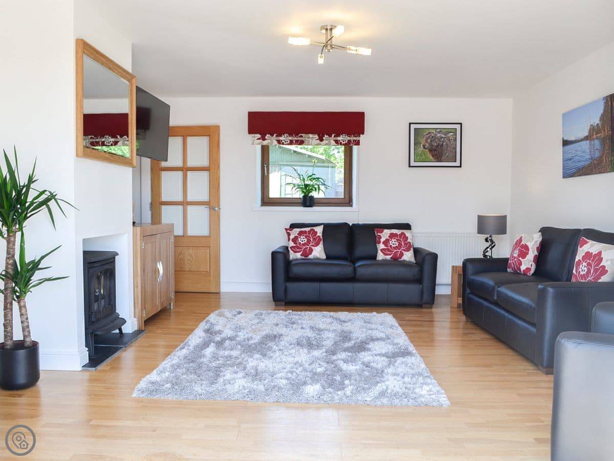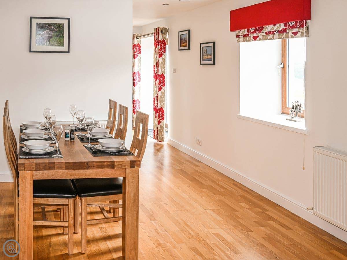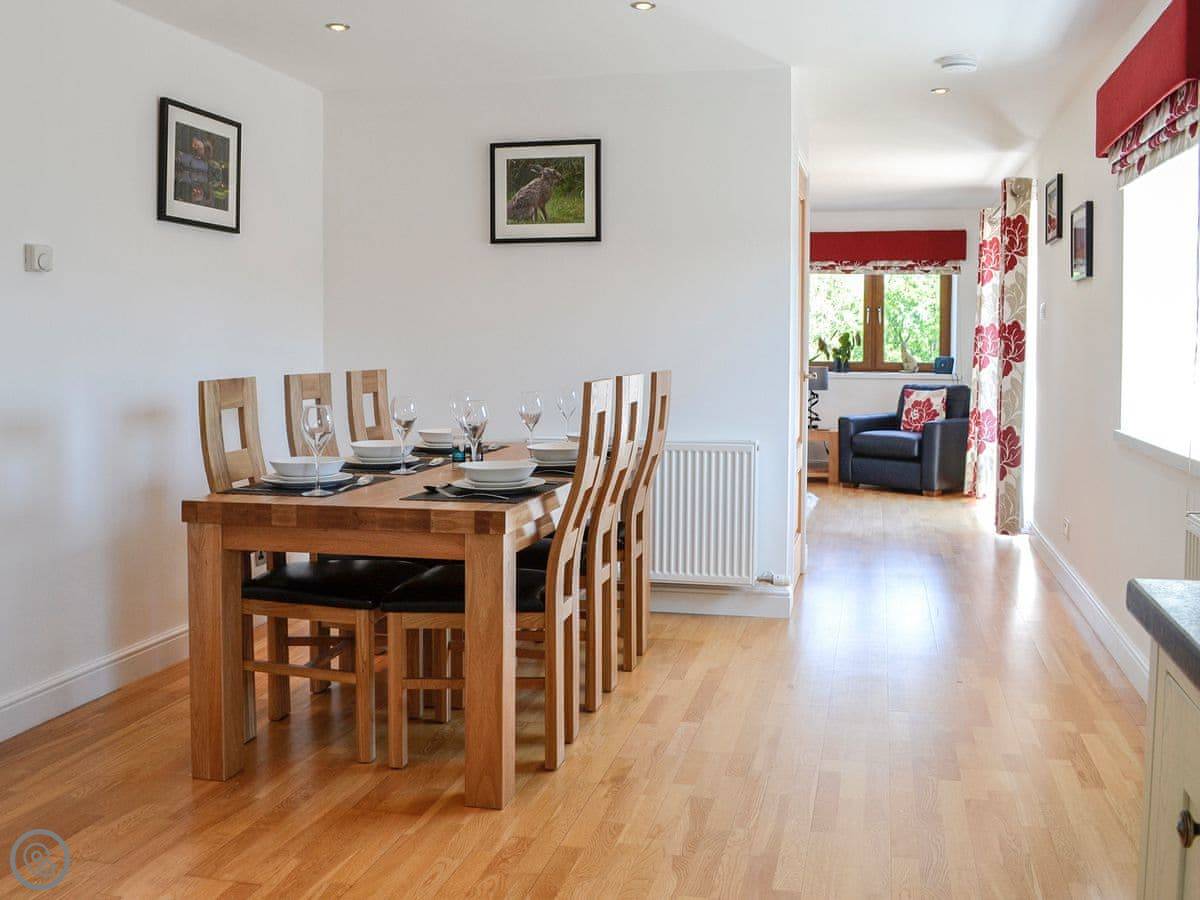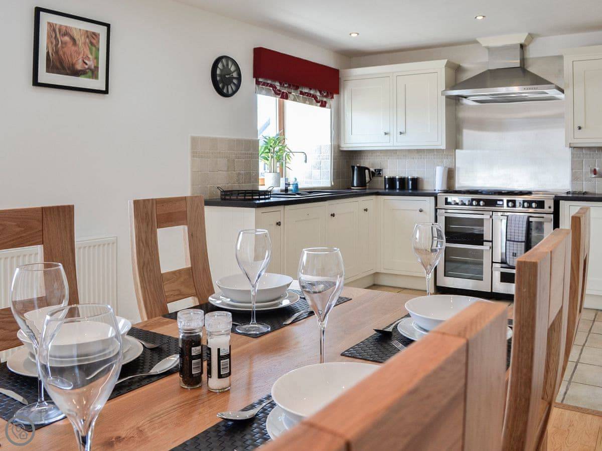 There are nice views over Loch Ken from the front. The living room is big and gets a lot of light. There's a gas wood burner stove for cooler evenings. The kitchen has everything you'd need, and the dining table is in there.