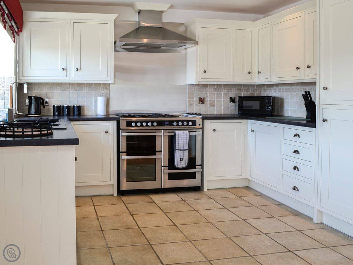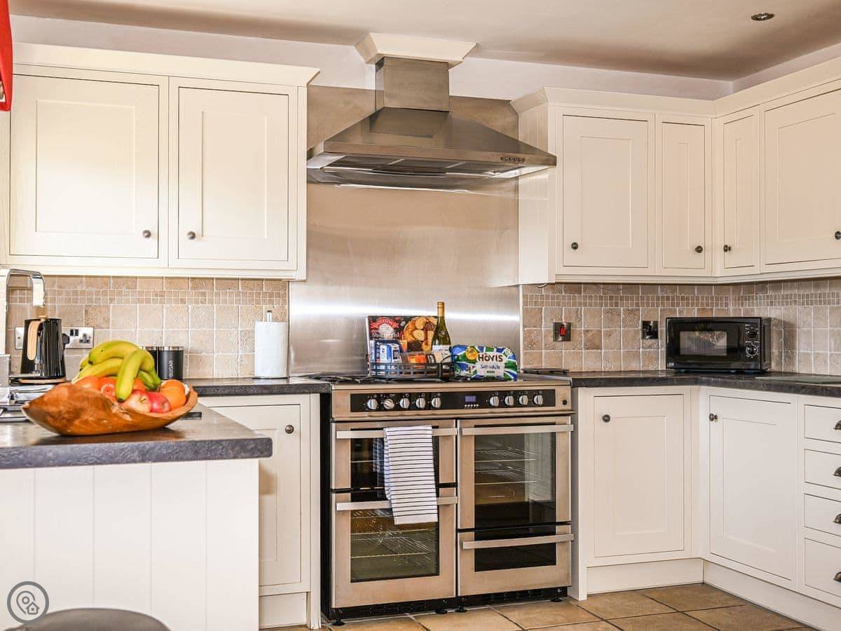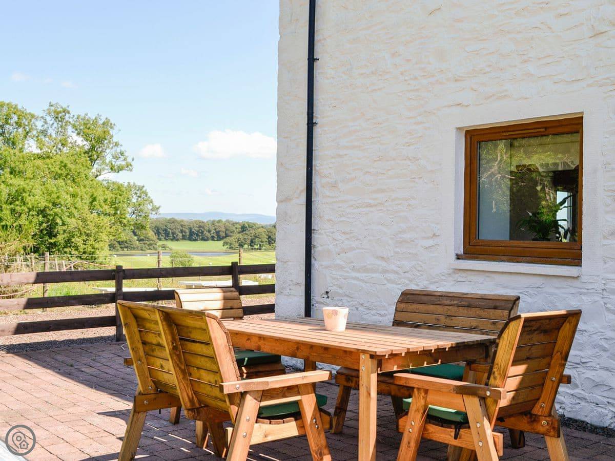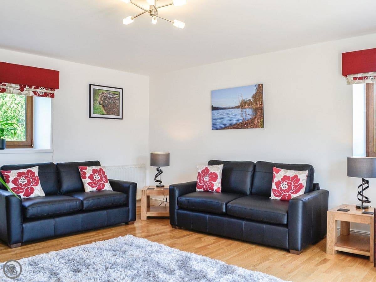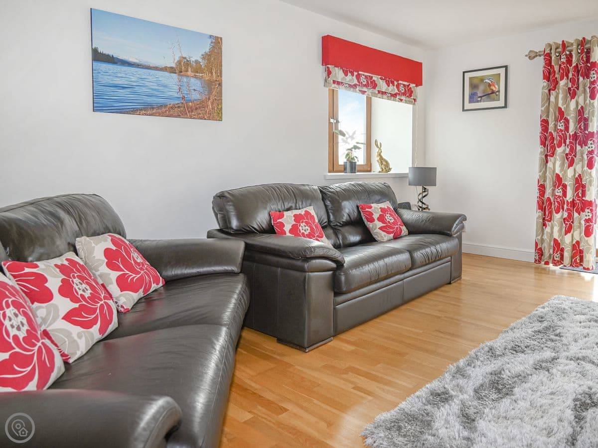 There are nice views over Loch Ken from the front. The living room is big and gets a lot of light. There's a gas wood burner stove for cooler evenings. The kitchen has everything you'd need, and the dining table is in there.