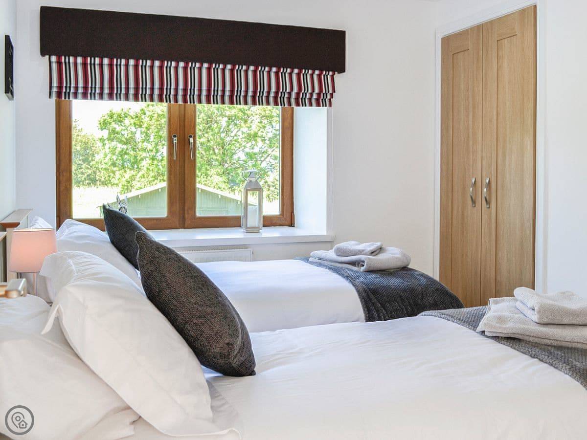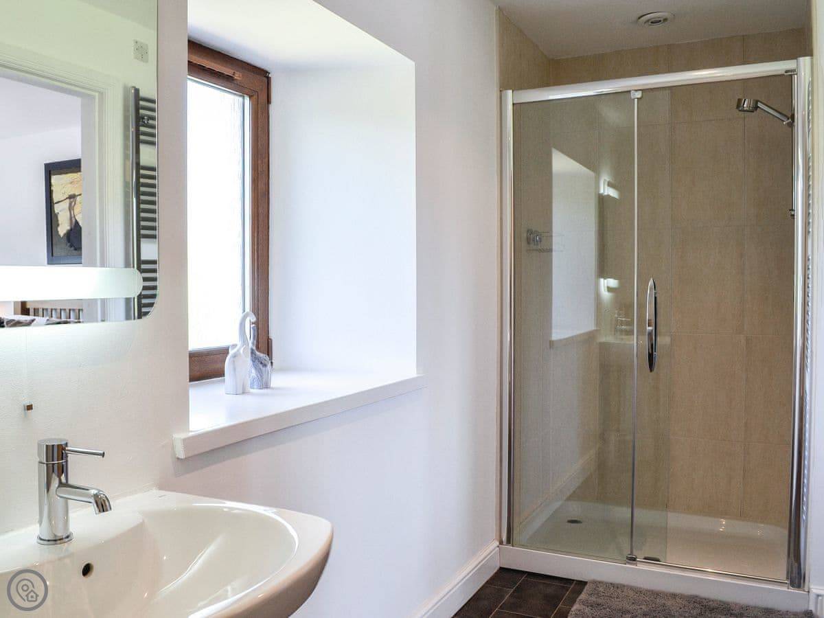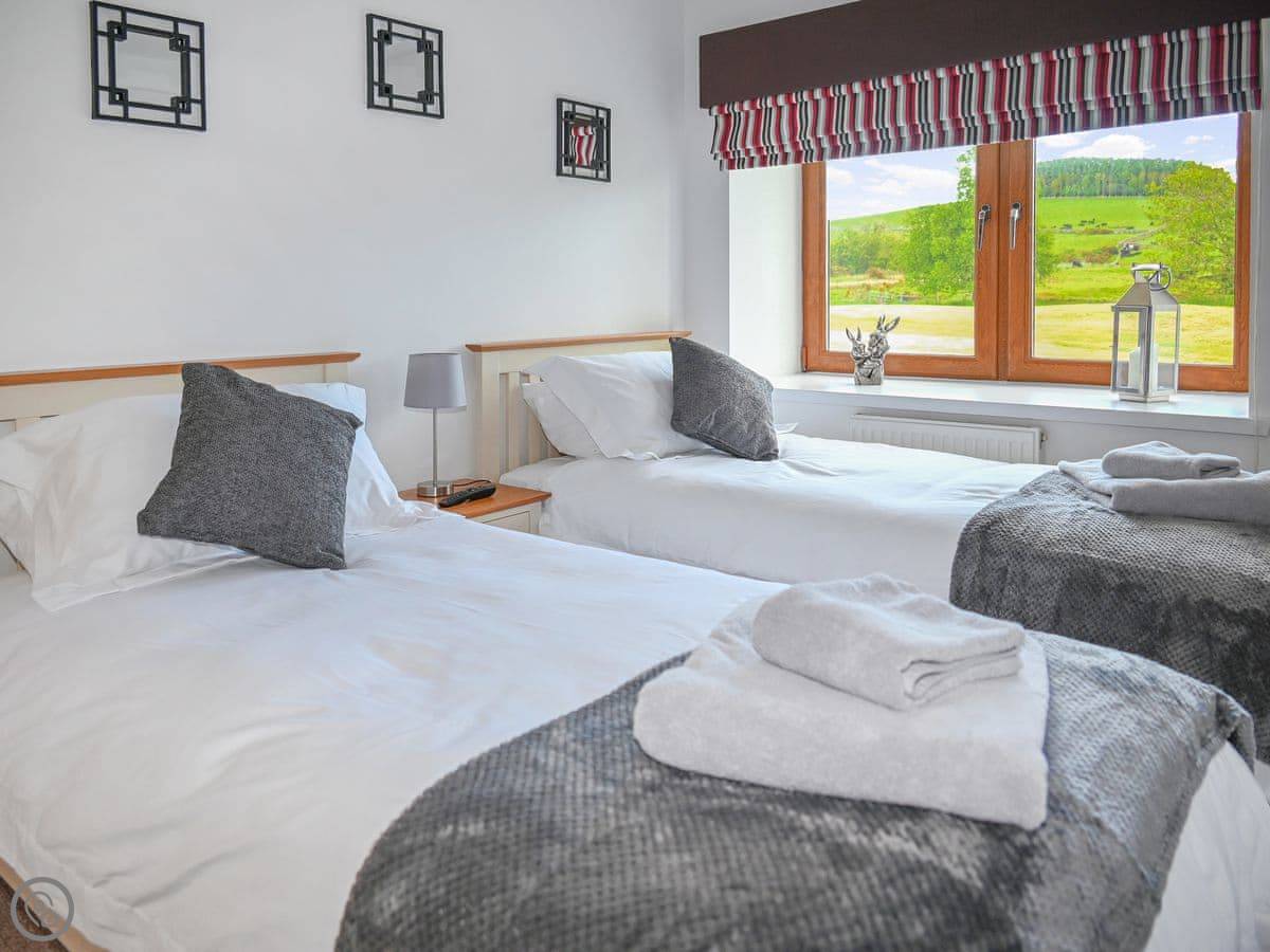 The Byre is in Glenlochar, near Castle Douglas. It used to be a barn, but it's a proper house now. It sleeps six. Three bedrooms, two bathrooms. One is an en-suite off the main bedroom. It's got a 4 Star rating.