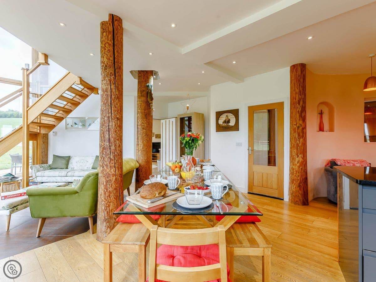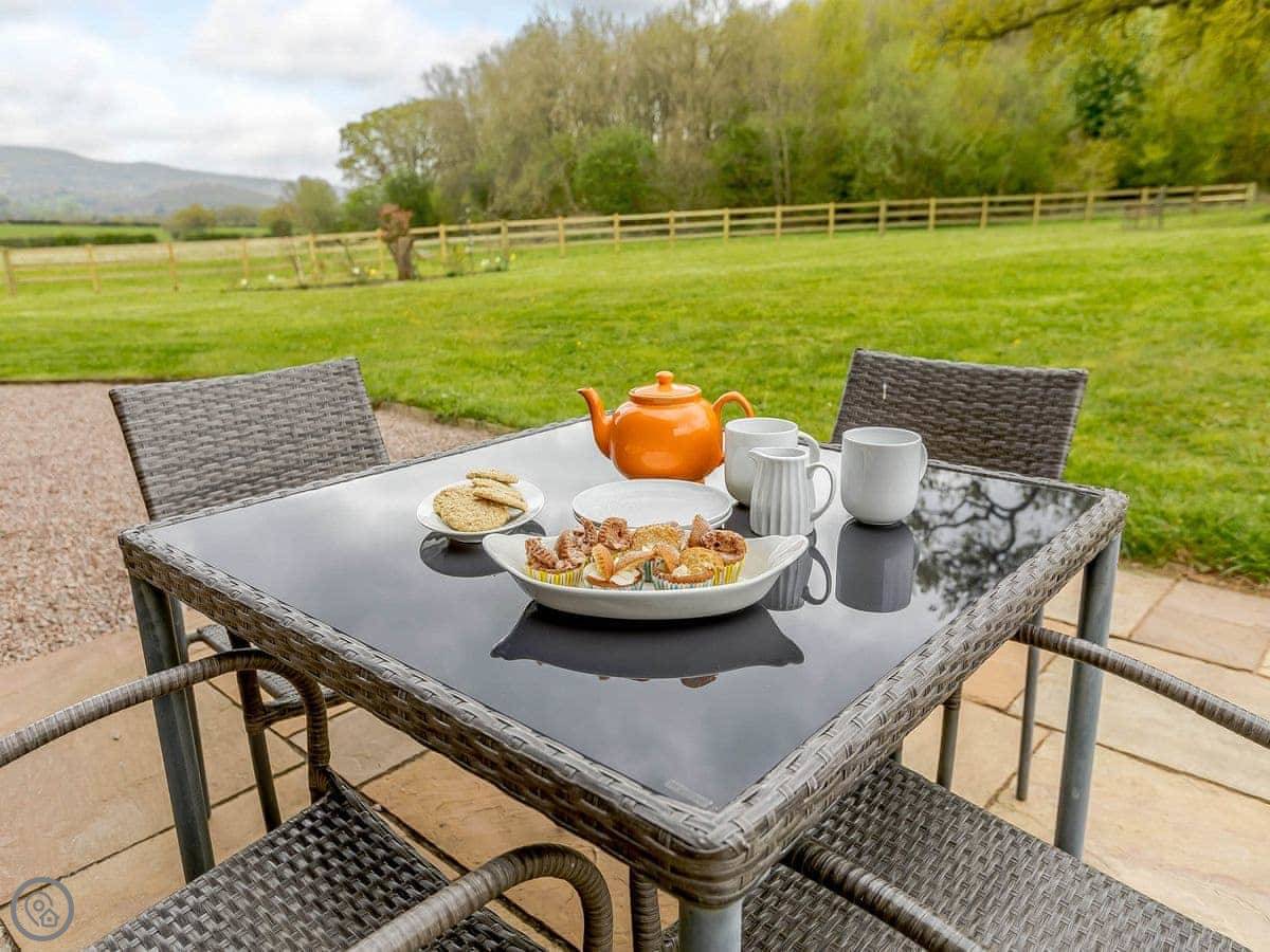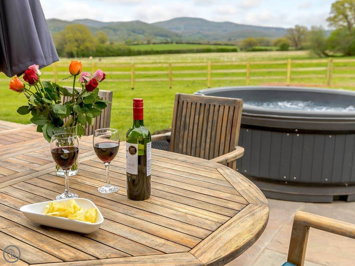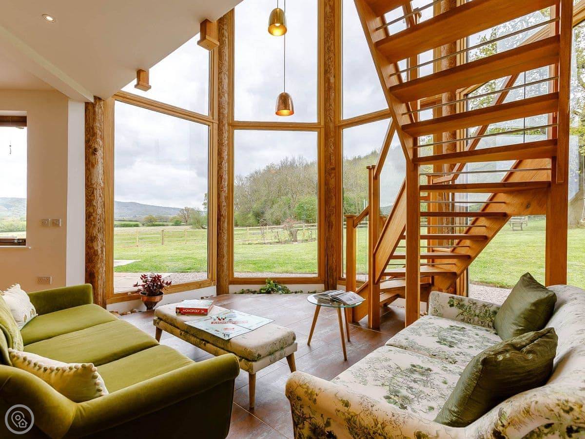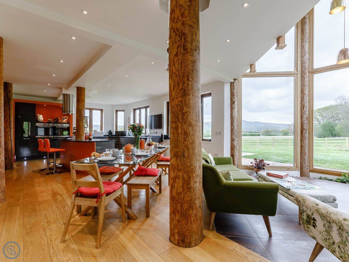 They have magnificent surroundings with beautiful panoramic views of neighbouring farmland, the Malvern Hills and Worcestershire/Herefordshire countryside. The Treehouse features an open-plan very sociable living space with a kitchen and a living area with a cosy wood burner, alongside a 48" Smart TV, sound system and DVD player. Doors lead to a south-facing patio with garden furniture & hot tub, the ideal spot for relaxing with a drink or dining al-fresco. There is no bike store as such but there is a barn.