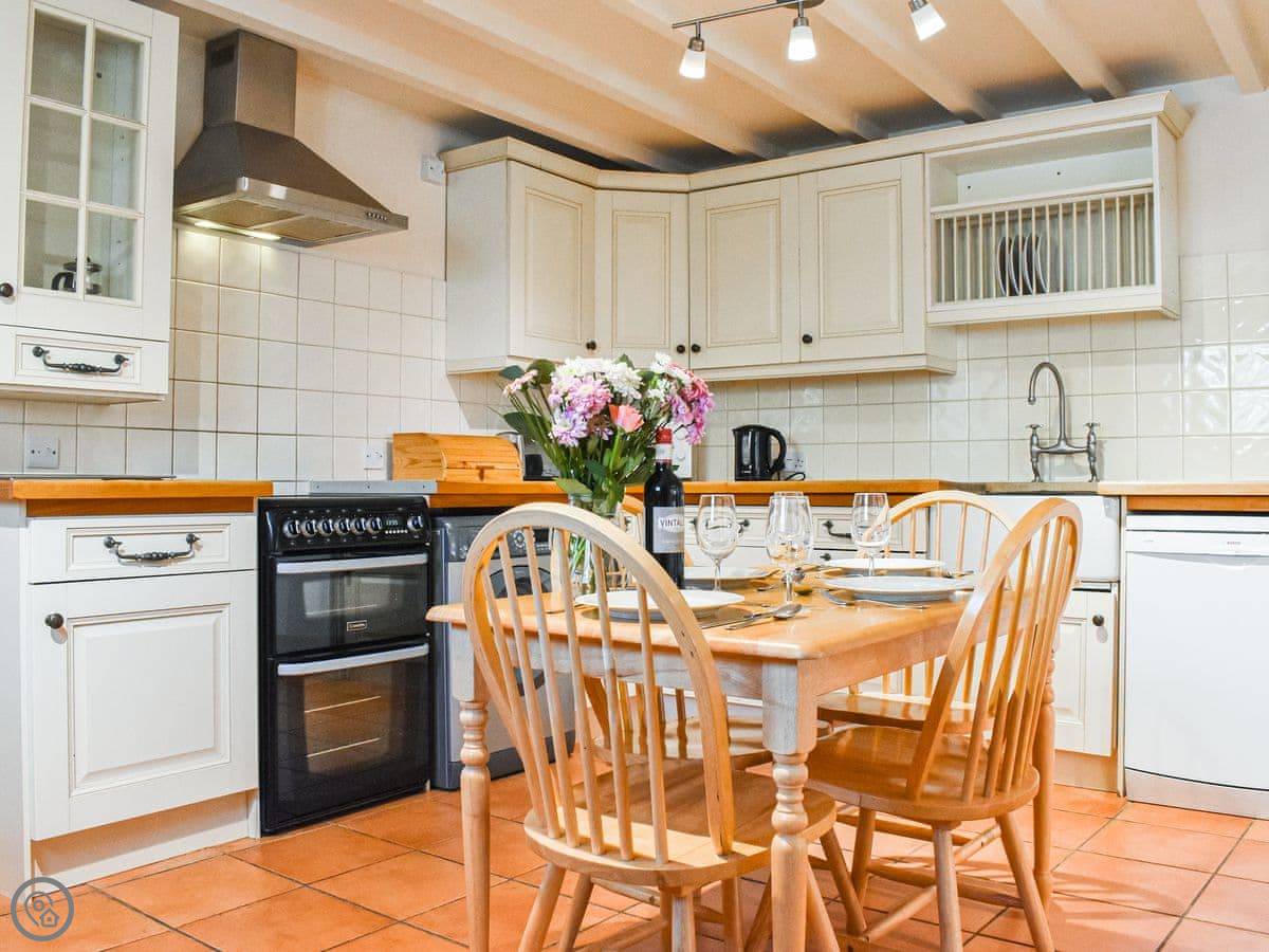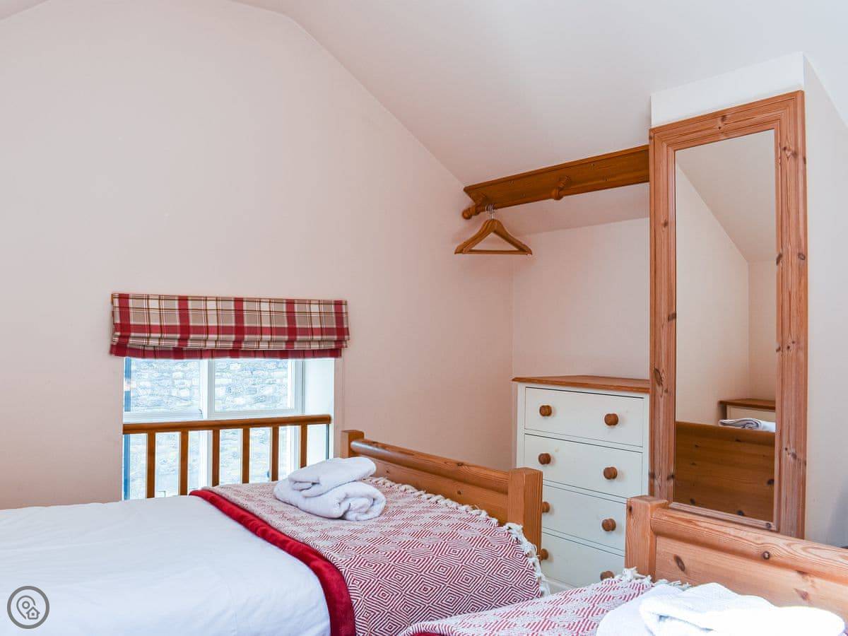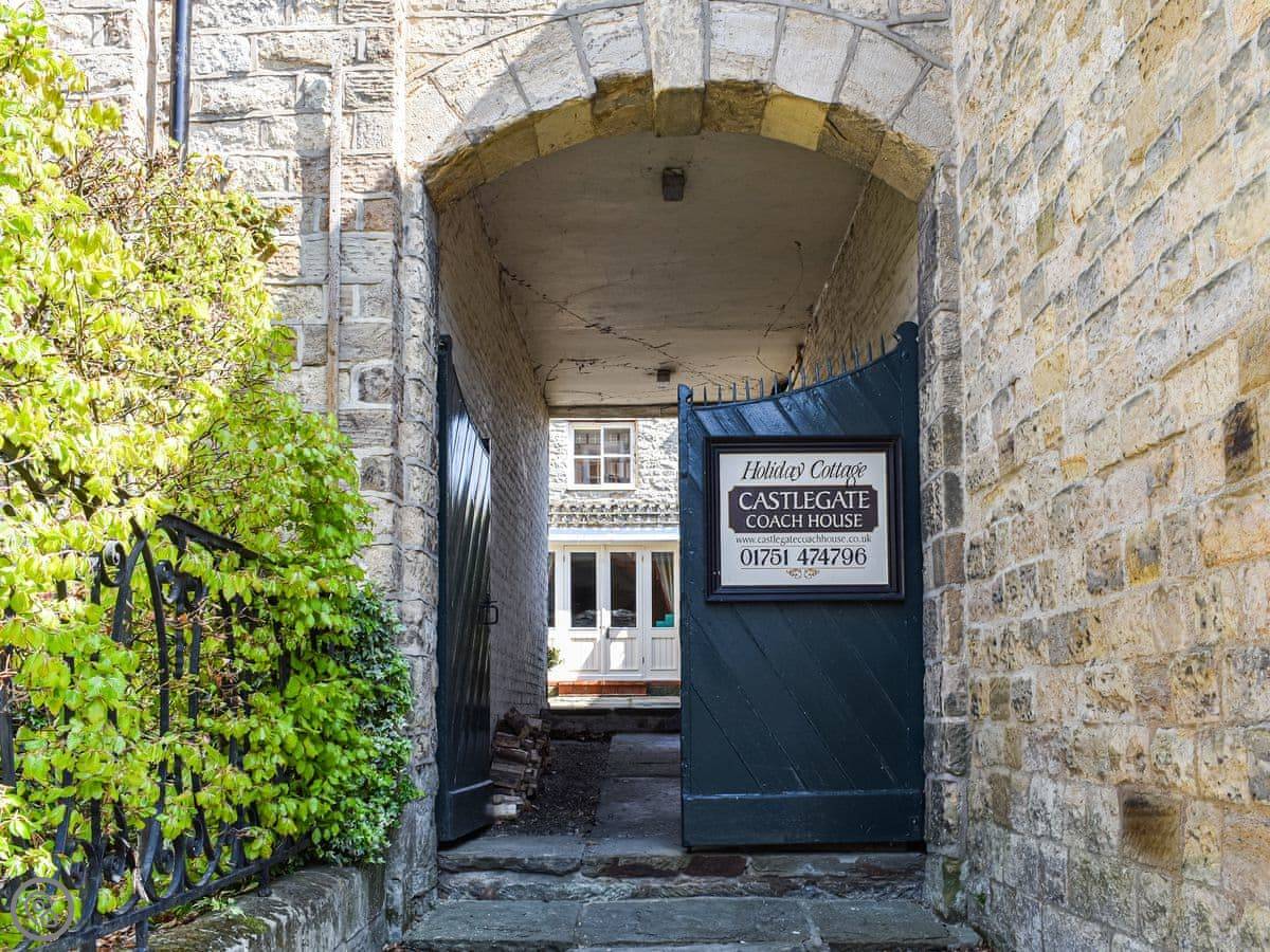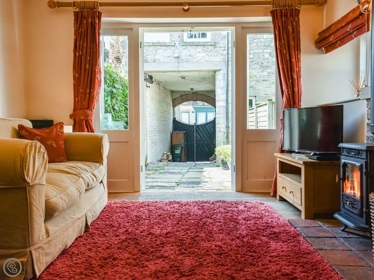 Castlegate Coach House is a beautifully restored property, it was once a coach house dating back to 1845. Stone steps lead you up to the arched gates which take you into your own private courtyard with a seating area on the patio. Stepping through glass French doors on the ground floor you have an open plan living area, beneath original beamed ceilings. With the living area at the front complete with a wood burner in front of the sofa and armchairs, perfect for a cosy evening in. One small step leads you up into the kitchen which has a dining table for you all to enjoy meals together, or even a fun games night. The kitchen has a country cottage feel, with a Belfast sink, it is well equipped with everything you could need to create your favourite home cooked meals. Upstairs there are two well-presented bedrooms, the master has a double bed under a Velux window, and the second room has twin beds. The bathroom is also upstairs, and it has a shower over the bath.