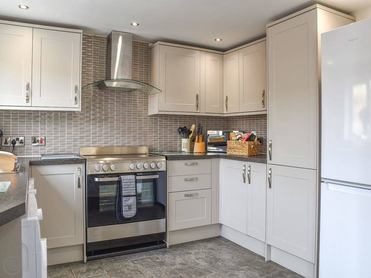 In terms of what's there: all the bedding and towels are included. There's a washing machine, dishwasher, WiFi, and on-site parking. There's a cot and highchair if you need them. No pets, sorry.