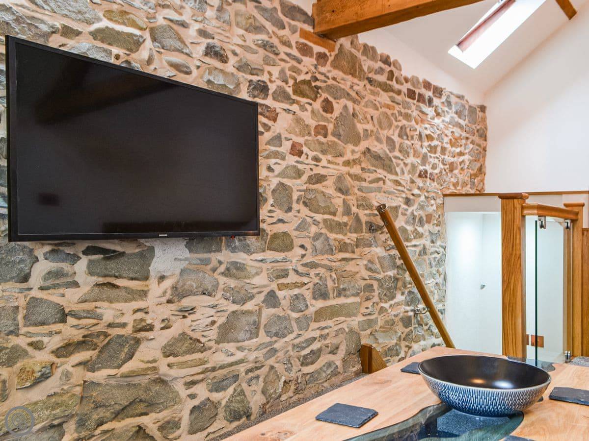 It's a 4 Star place, which means it's been done up recently. Everything's clean and works. You come in through a stable door. The kitchen is new and has what you need. The shower's good. Upstairs is one open room with the bed, a sofa, and a TV. There's Netflix if you want it.