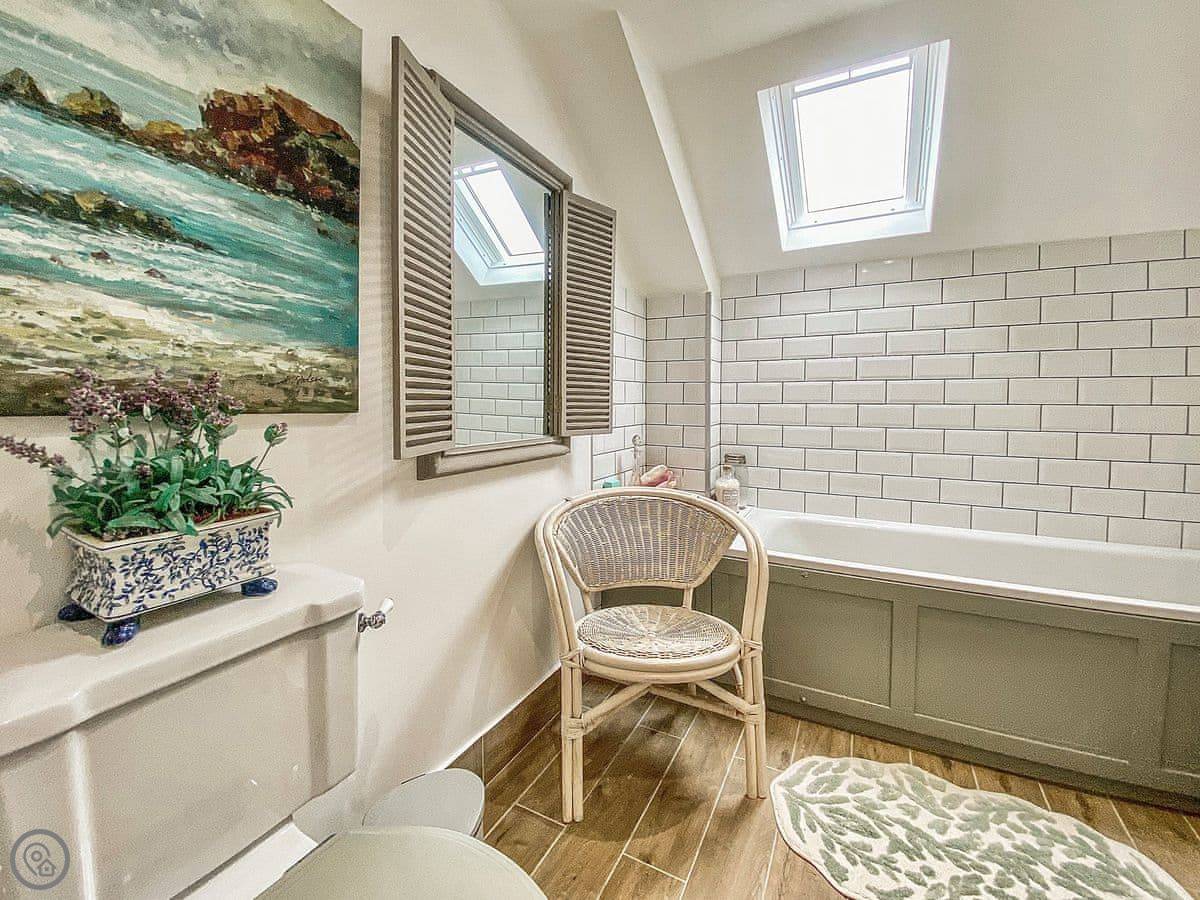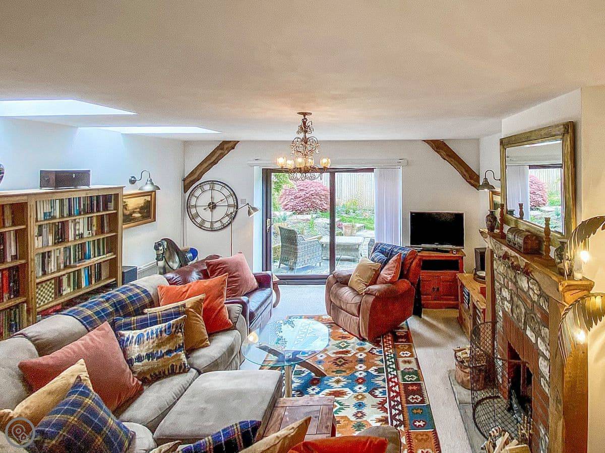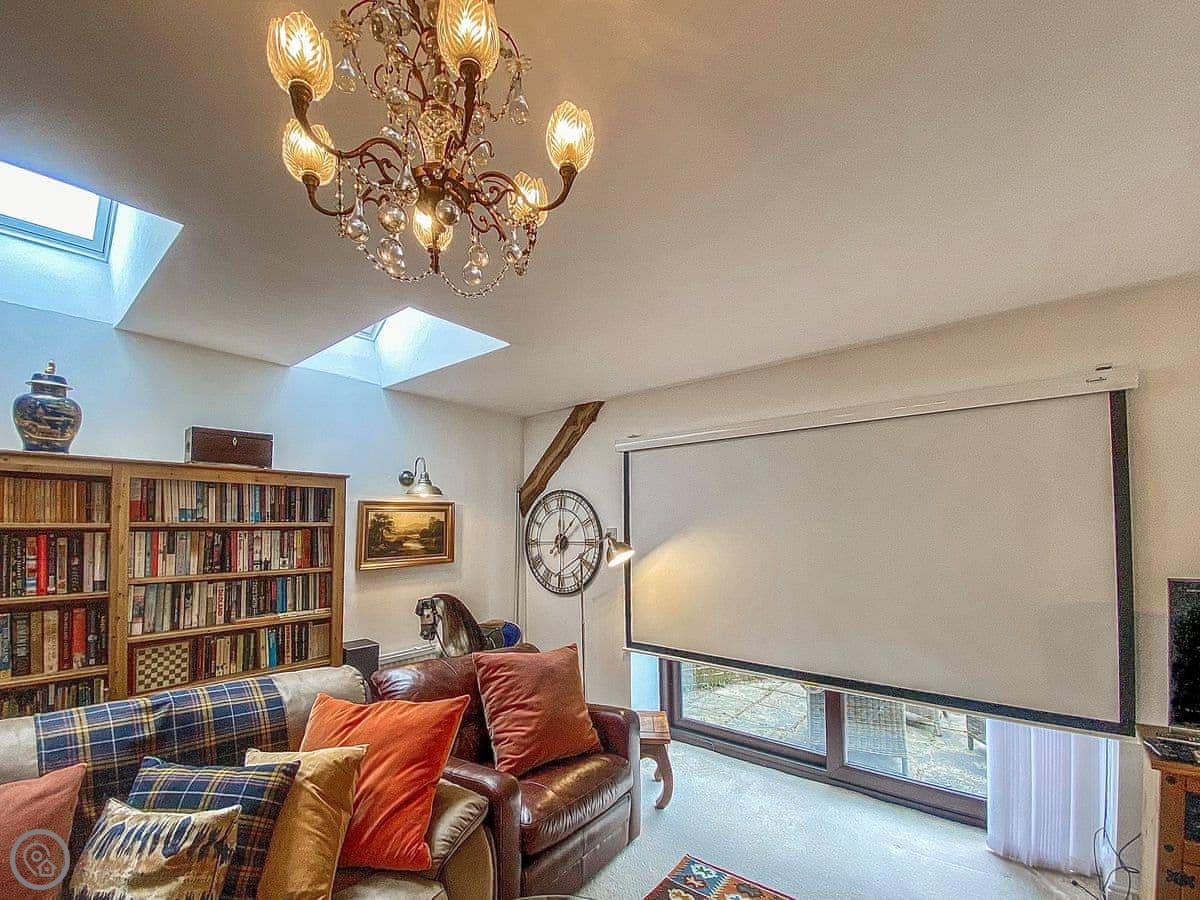 The living room has patio doors out to the garden, which has seating and a BBQ. There's a woodburning stove for cooler nights. It also has a projector screen with Sky TV. The WiFi is reliable.