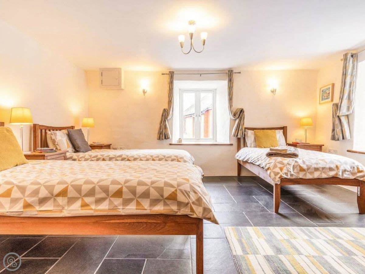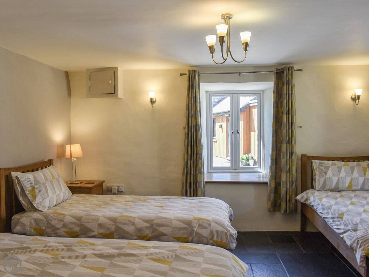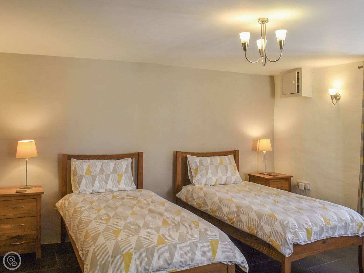It sleeps five. Two bedrooms downstairs, one double and one with three single beds. One bathroom. It's got a 5 Star rating, which means it's well-equipped and finished to a good standard.