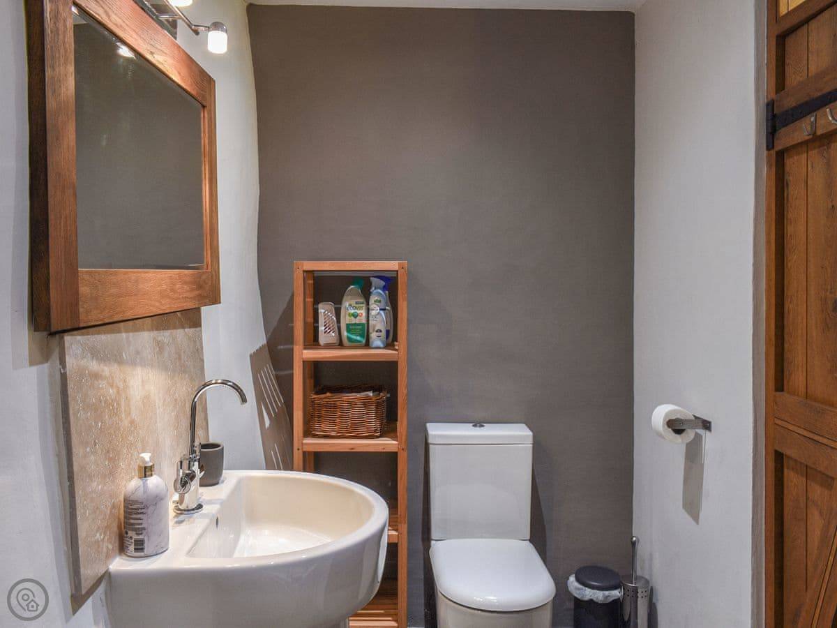 Downstairs is just the bedrooms and the bathroom. The stairs are fine, typical cottage stairs. The entrance and the downstairs rooms are all on one level if wheelchair access is needed to get in.