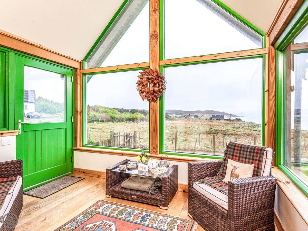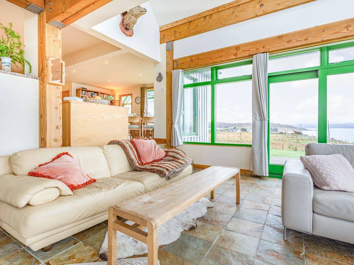You’re in a crofting community. Sheep and cattle wander freely. You might see otters, sea eagles, or dolphins from the house. Boat trips for whale watching go from the local harbour.