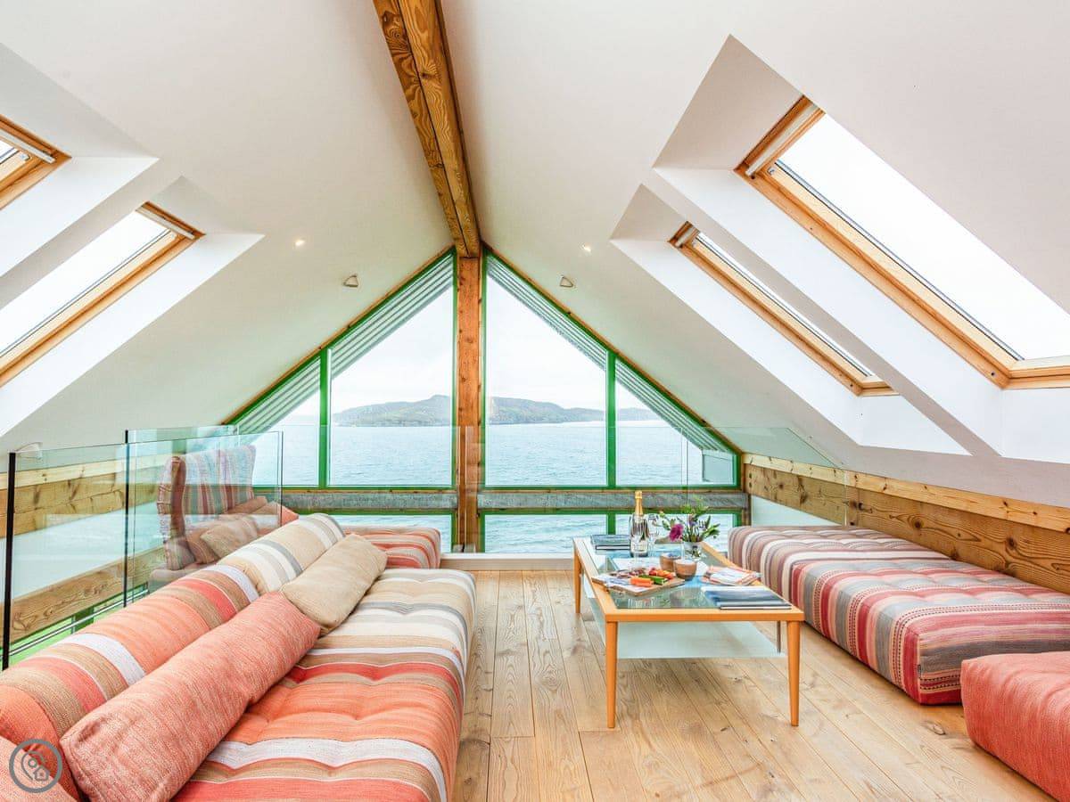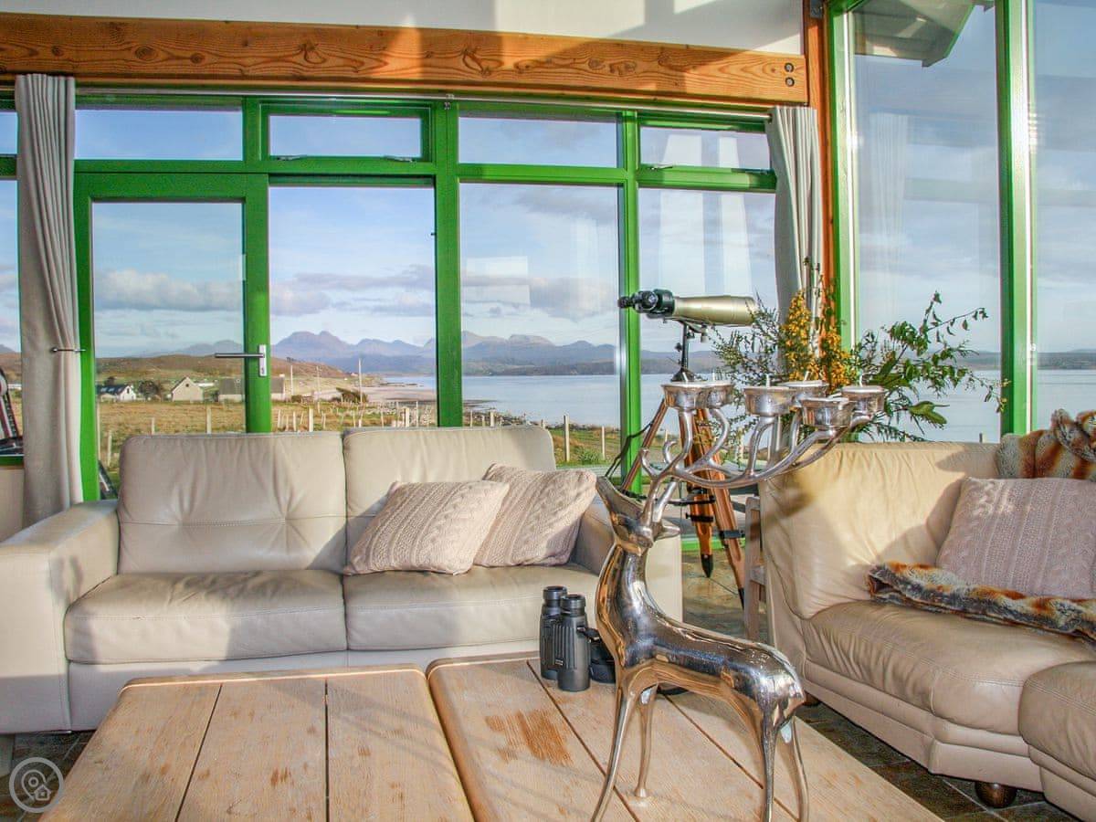 The main thing is the view. There are big windows facing the loch. You can see the Torridon mountains, Skye, and on a clear day, the Outer Hebrides. The weather changes fast here. You can sit inside by the wood burner and watch it all roll past.